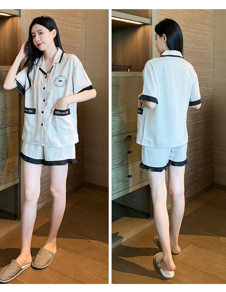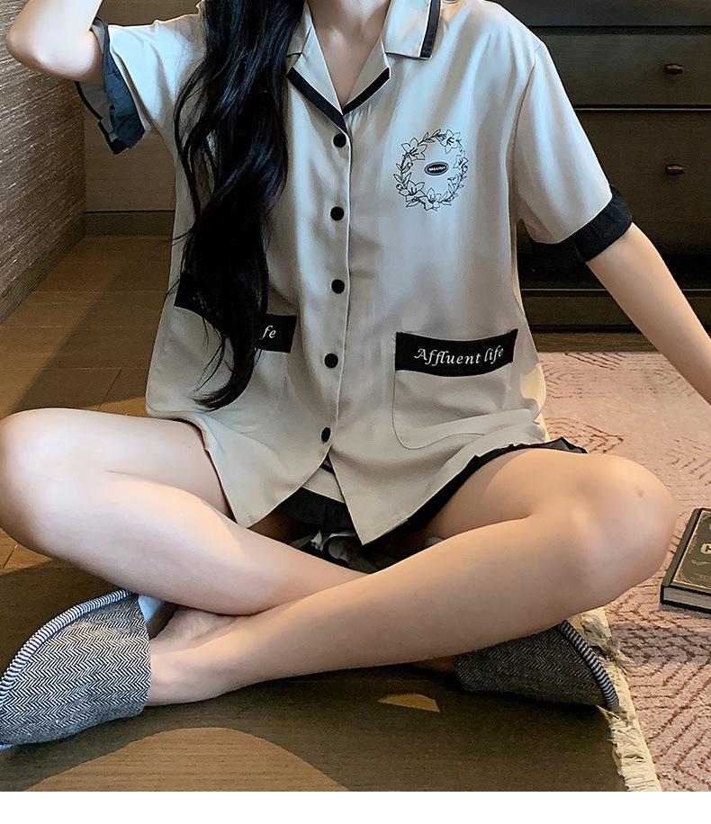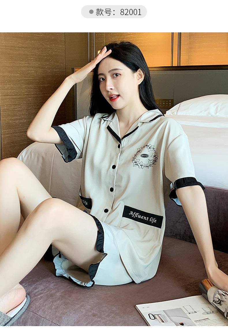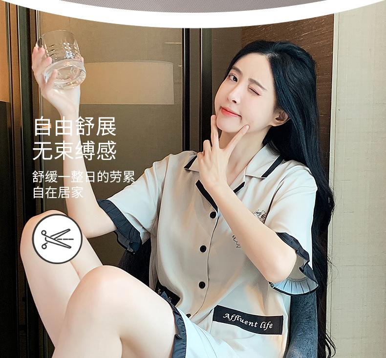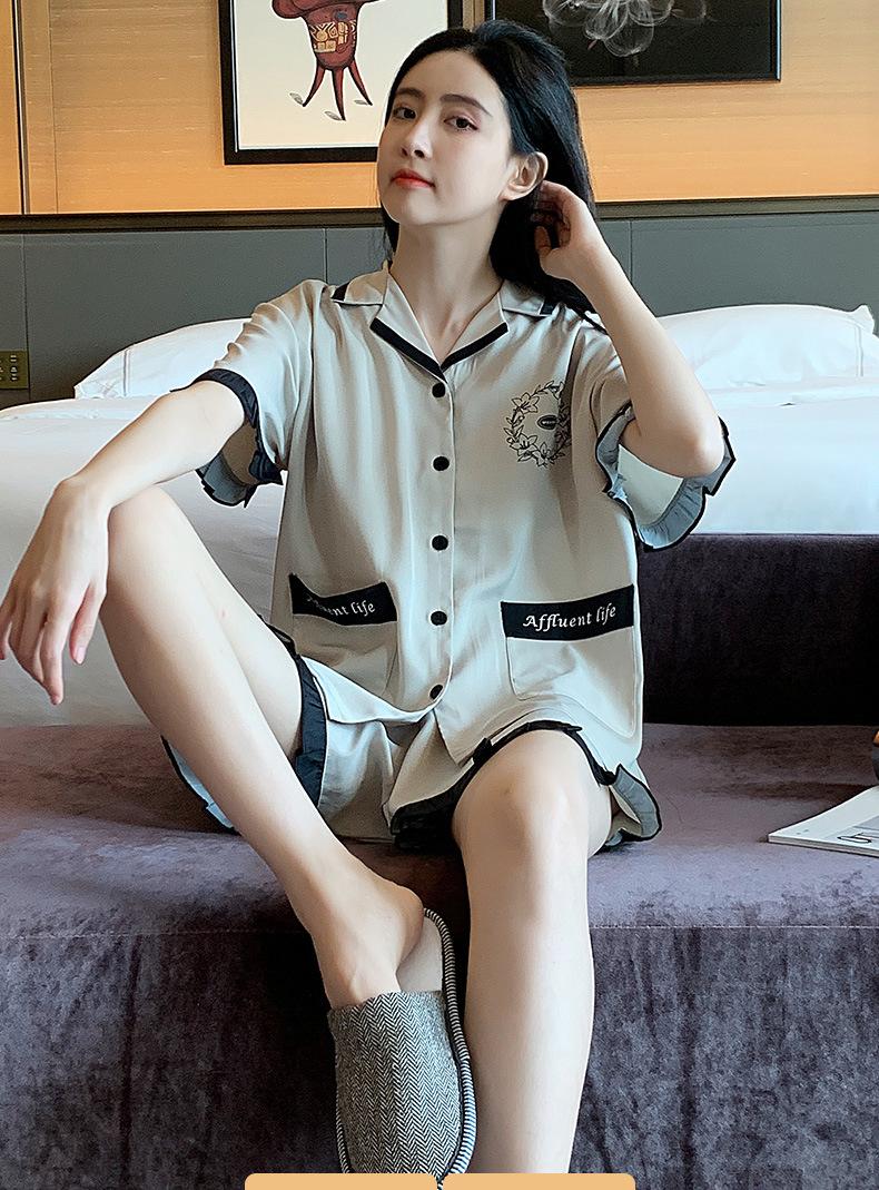 Pijama de Seda de Hielo para Mujer de Verano de Manga Corta Traje Delgado Se Puede Usar Afuera en Verano Suelto y de Alta Gama Celebridad de Internet Ins Ropa para el Hogar