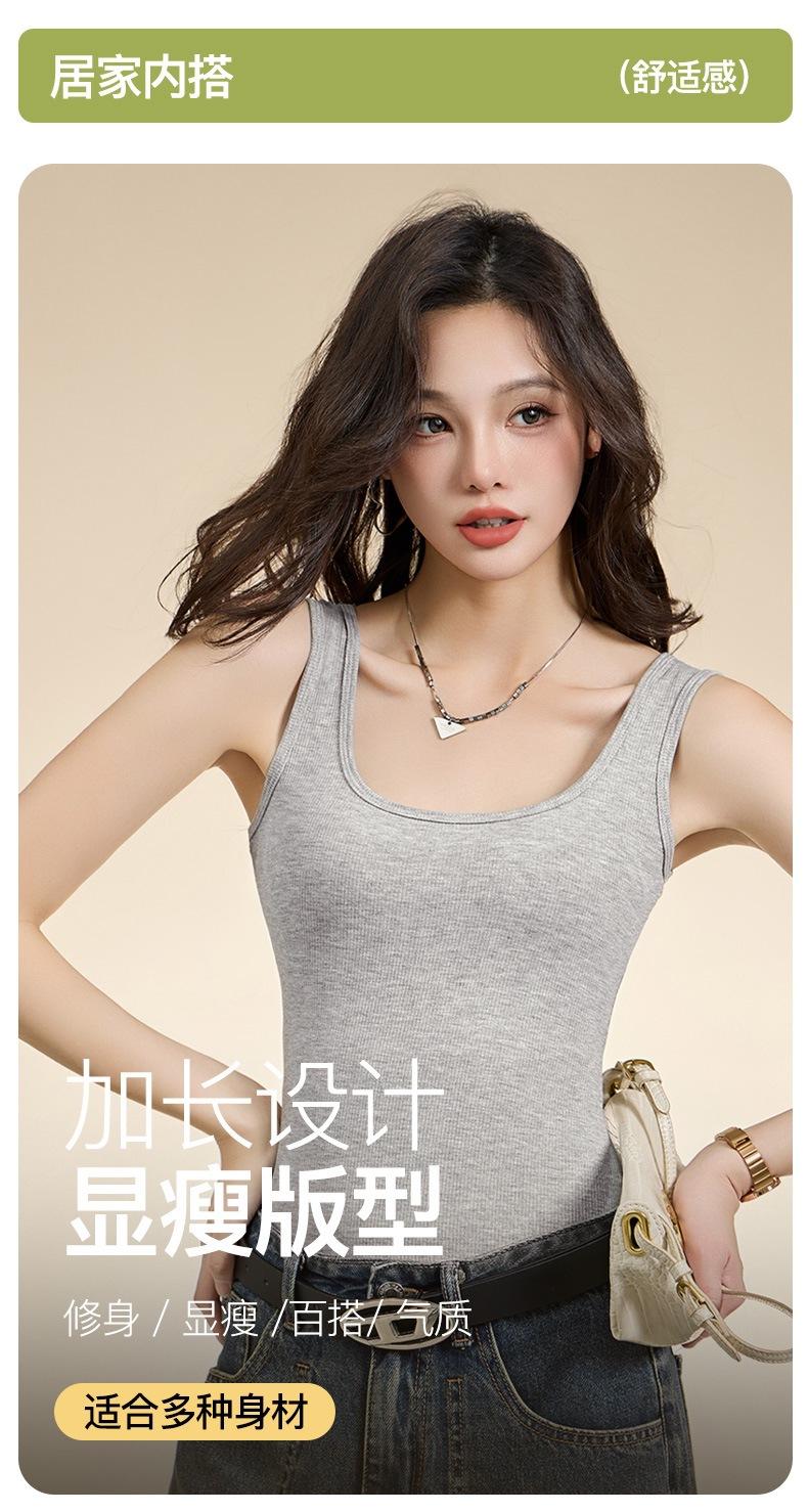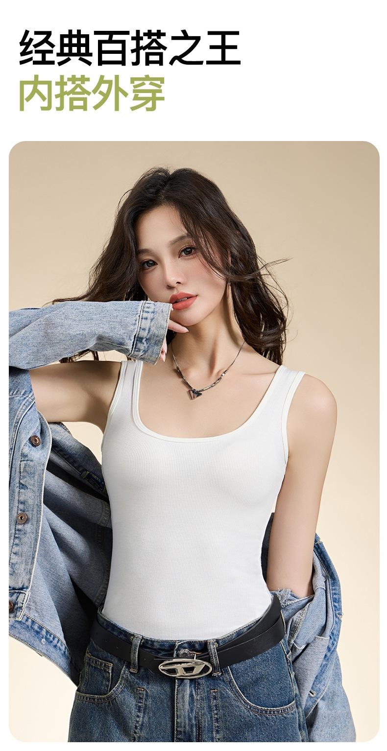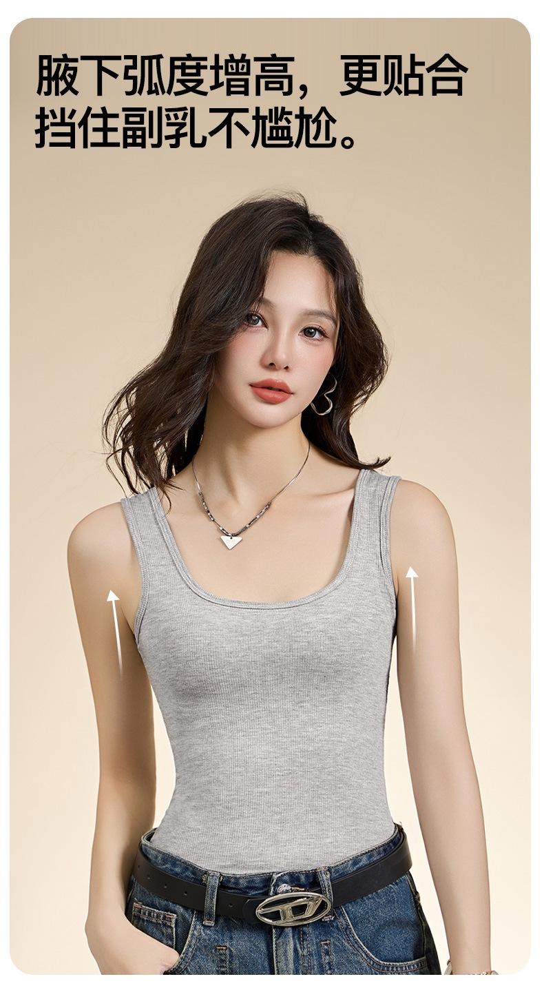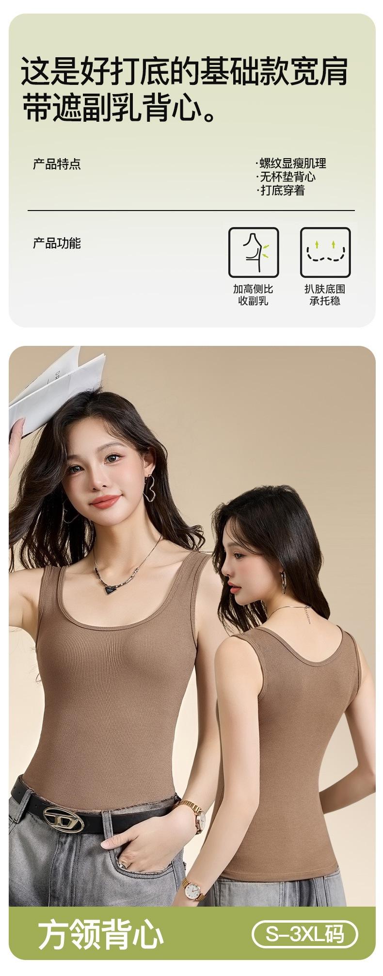 Camisola de Algodón Texturizado con Hilo de Alta Elasticidad Corte Slim Fit Hombro Ancho Bajo para Usar Debajo Hermoso Espalda Camisola Talla Grande Sujetador Top Todo en Uno para Mujer