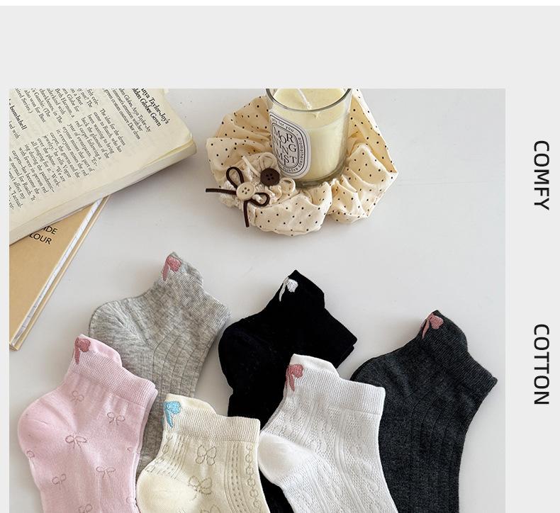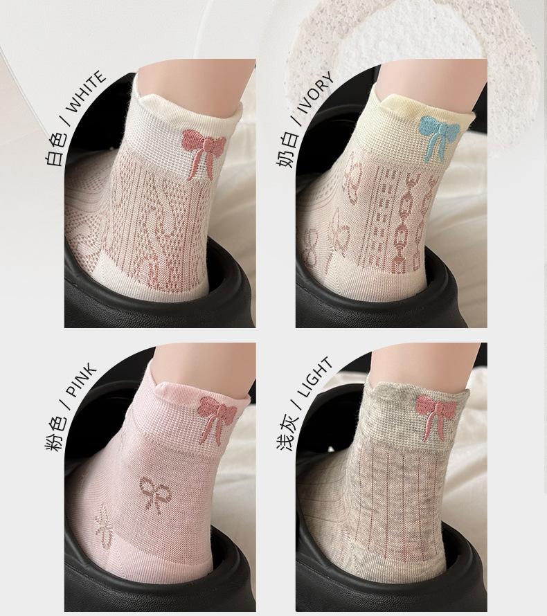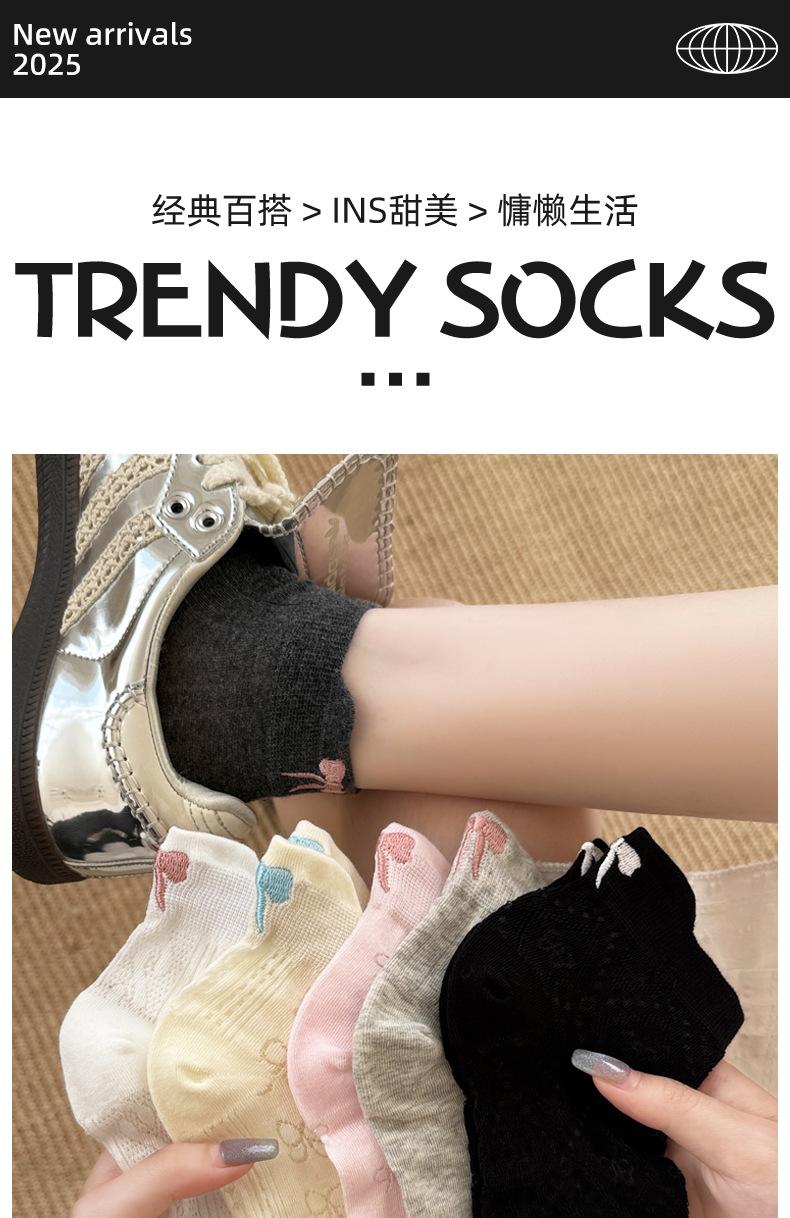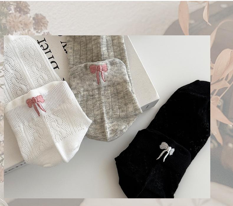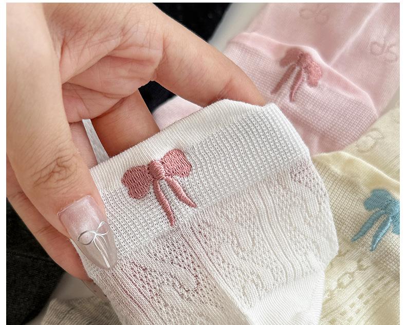 Calcetines Cortos de Algodón de Malla Transpirable para Mujer, Verano, Finos, Lindos, con Lazo Bordado, Versátiles para Estudiante, Estilo Ins, Calcetines de Tobillo