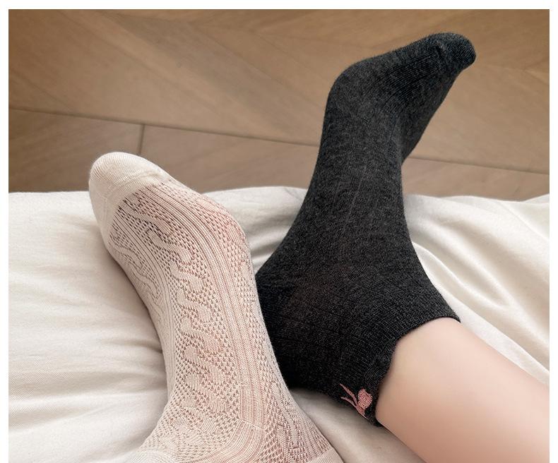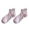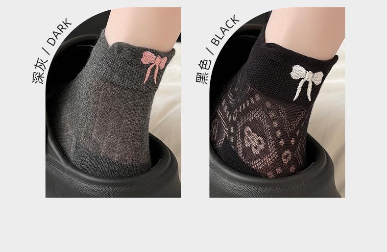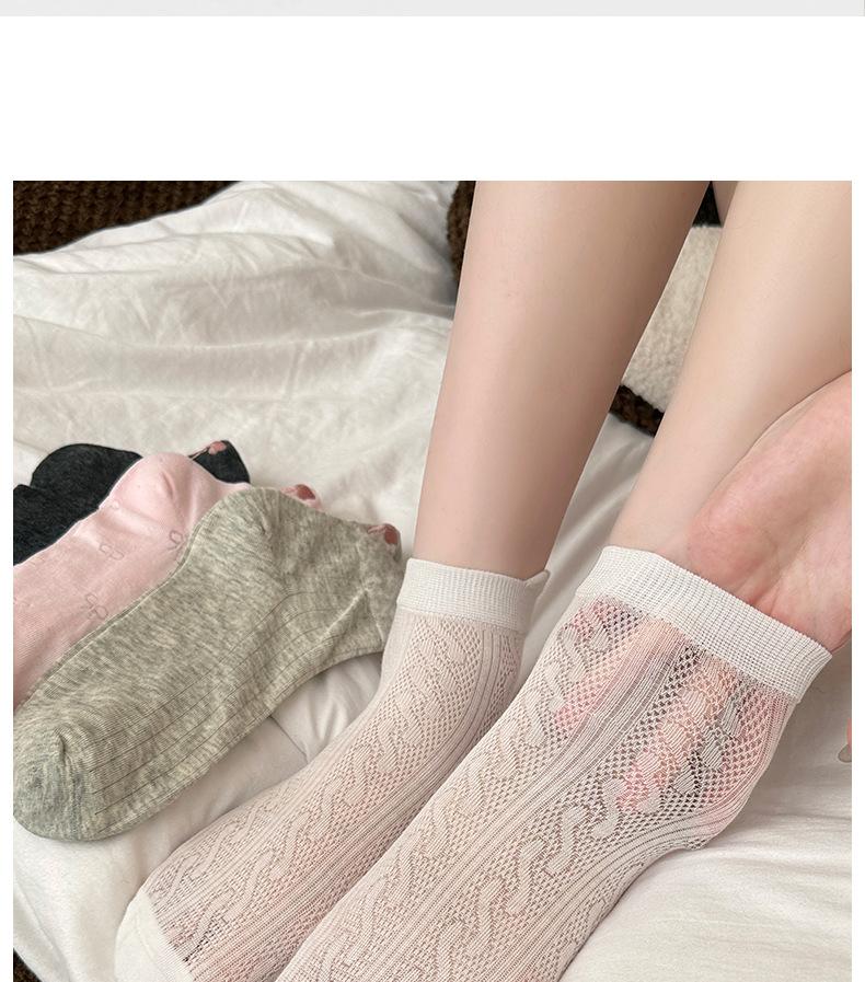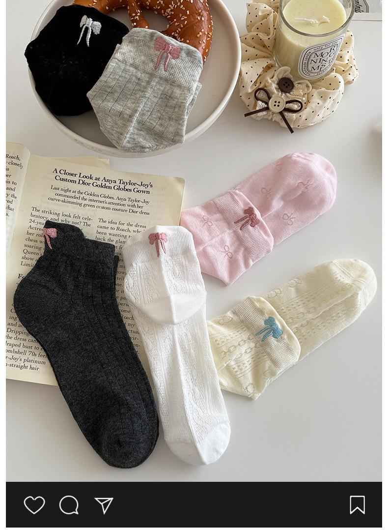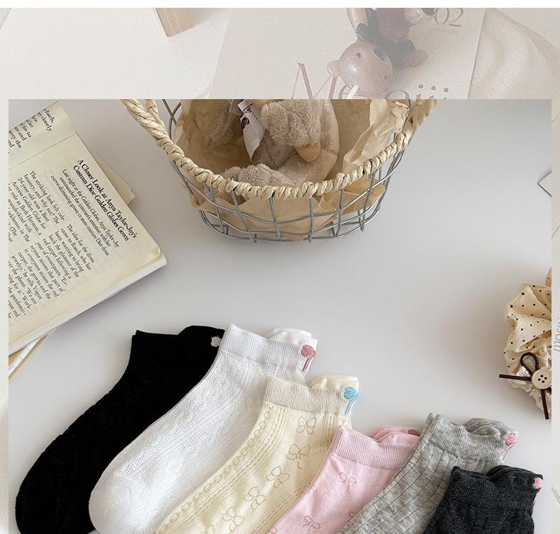 Calcetines Cortos de Algodón de Malla Transpirable para Mujer, Verano, Finos, Lindos, con Lazo Bordado, Versátiles para Estudiante, Estilo Ins, Calcetines de Tobillo