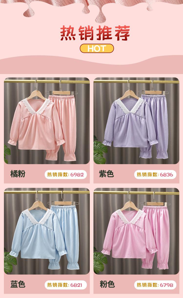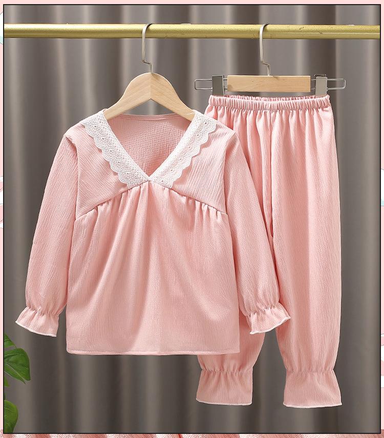 Pijama de verano para niñas, ropa fina para niños con aire acondicionado, traje de ropa para el hogar de manga larga para bebés, ropa exterior