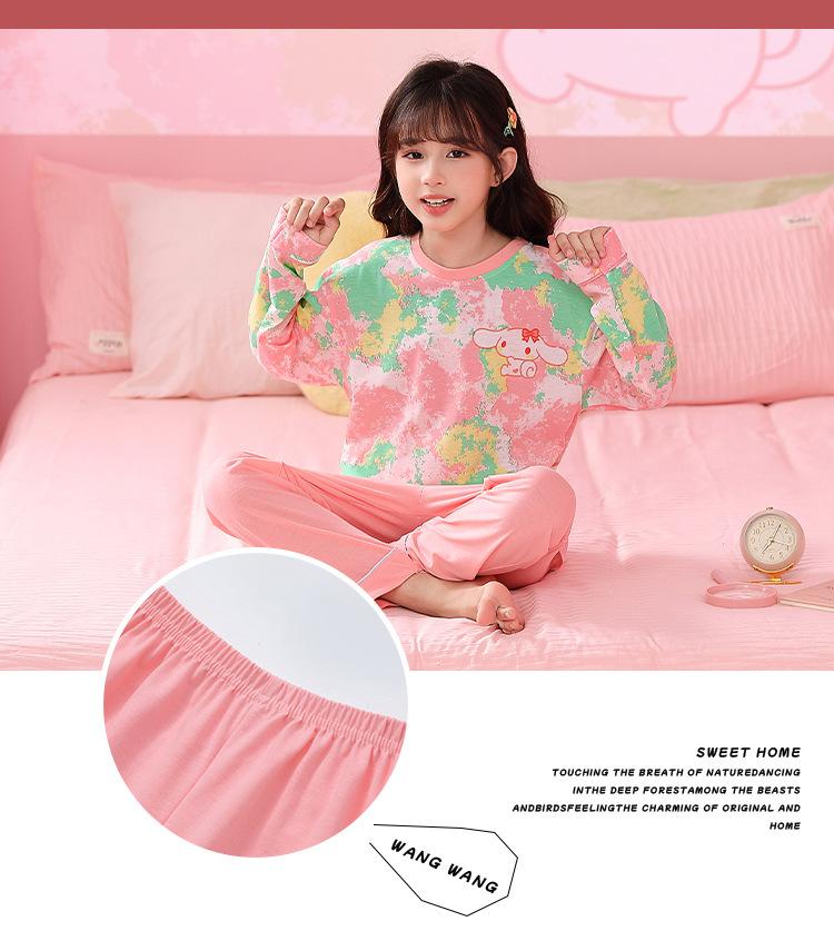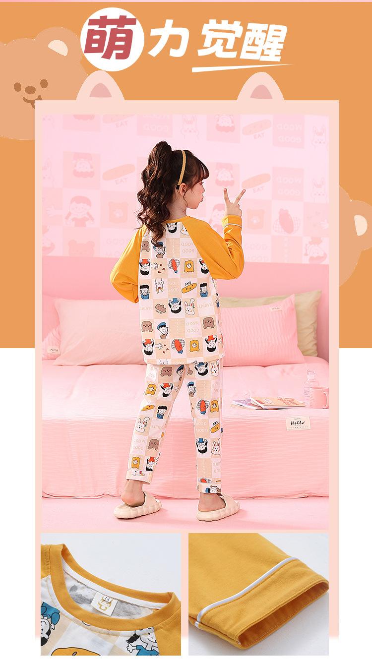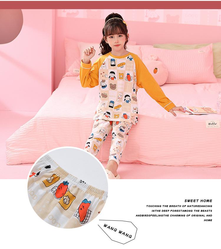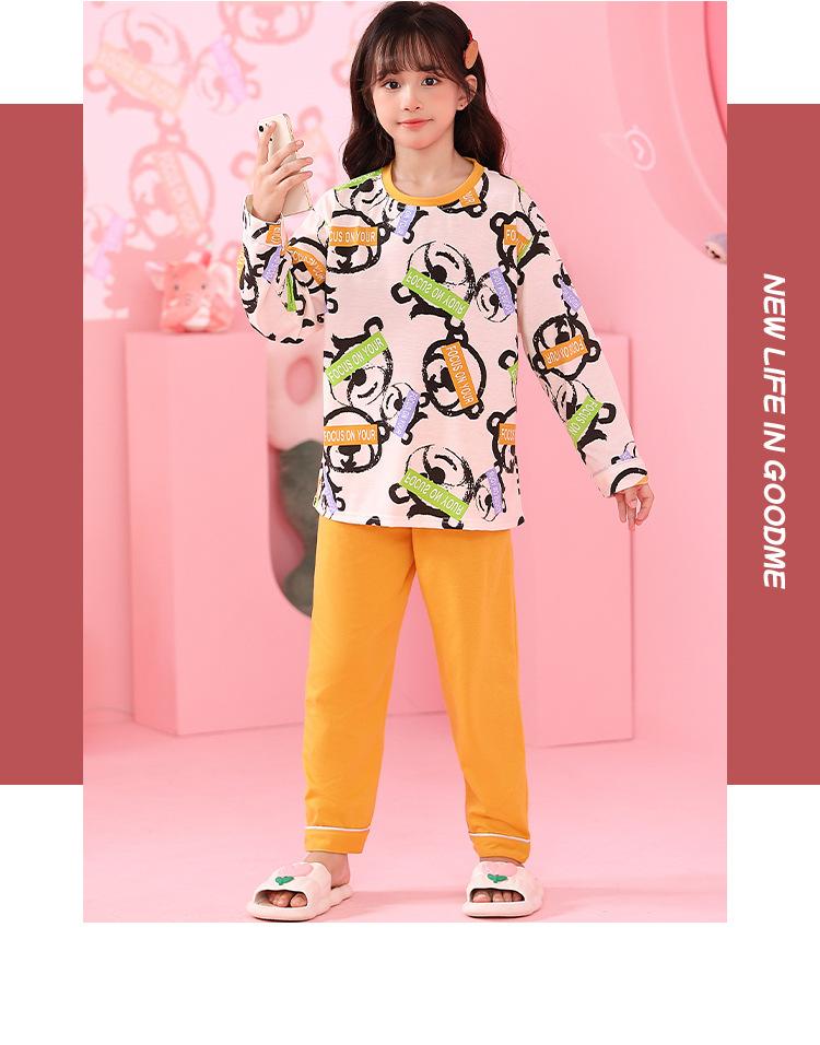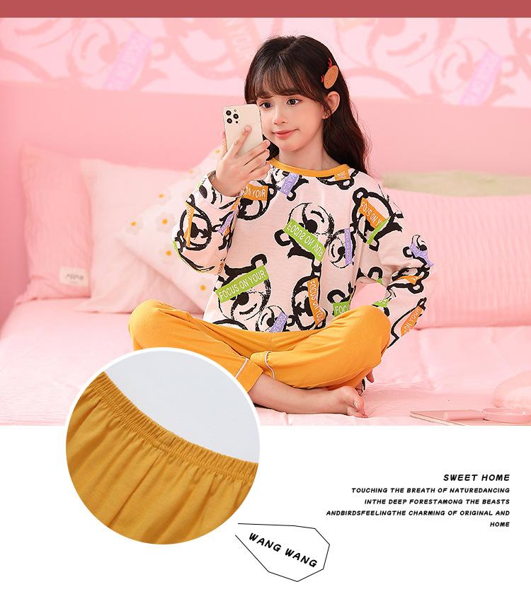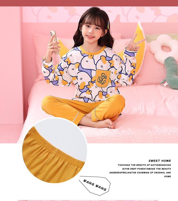 Pijamas para niñas, primavera y otoño, finos, estilo occidental, de algodón peinado, súper lindos, con dibujos animados, para el hogar.