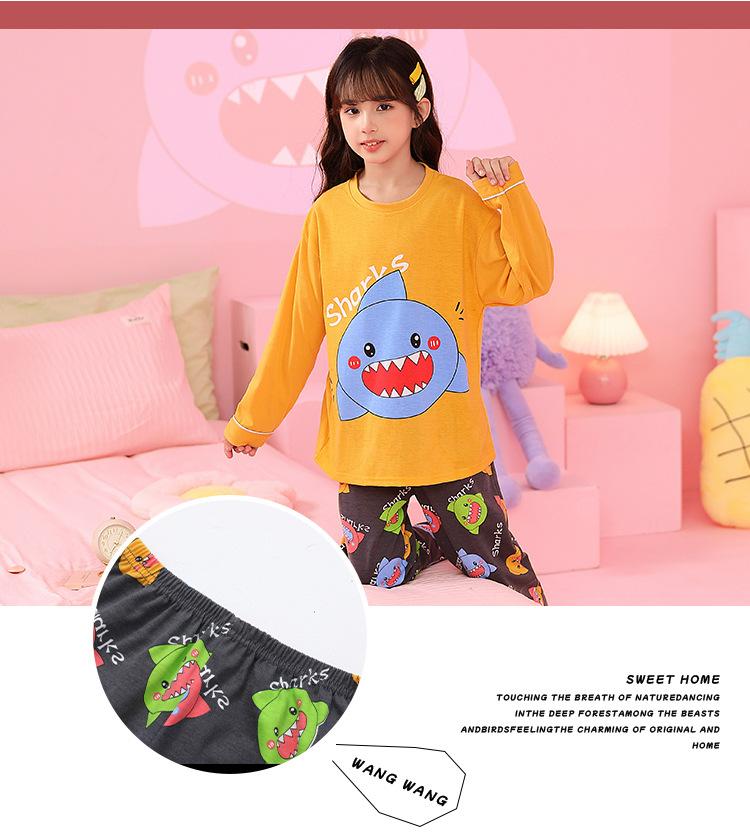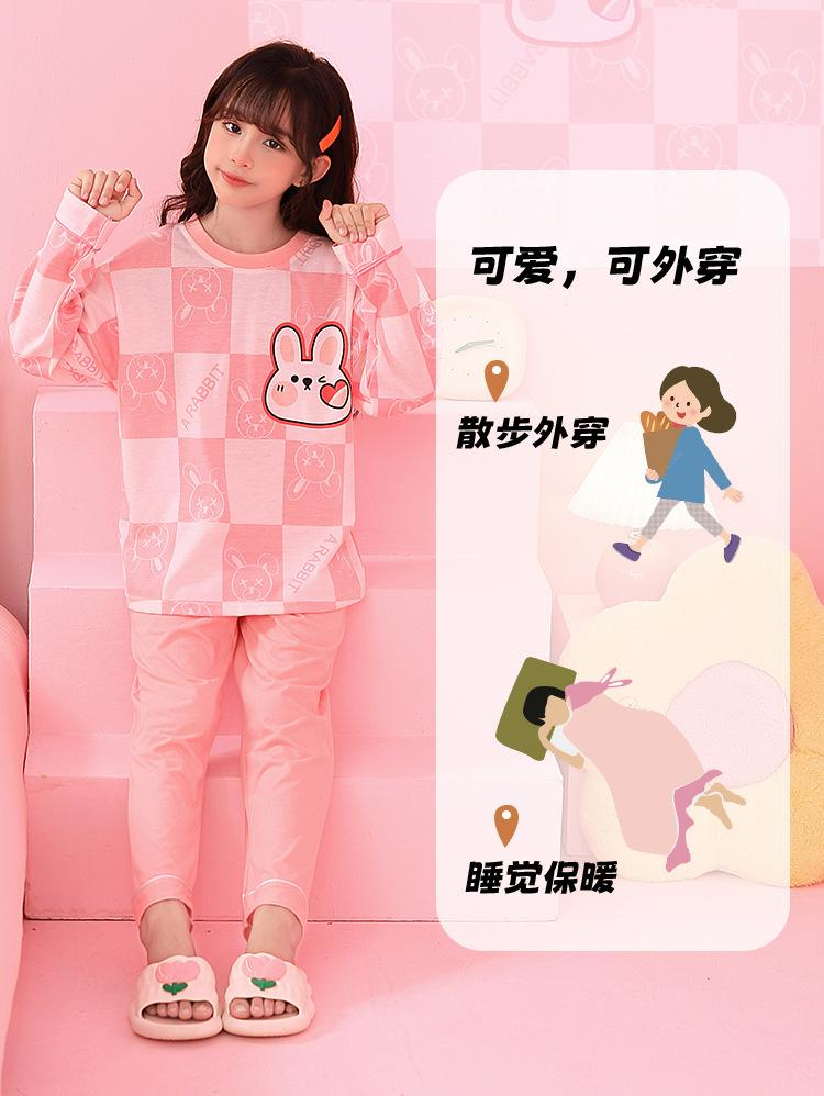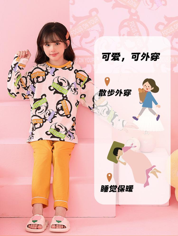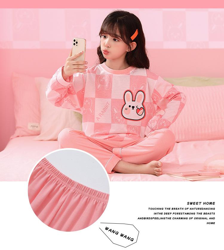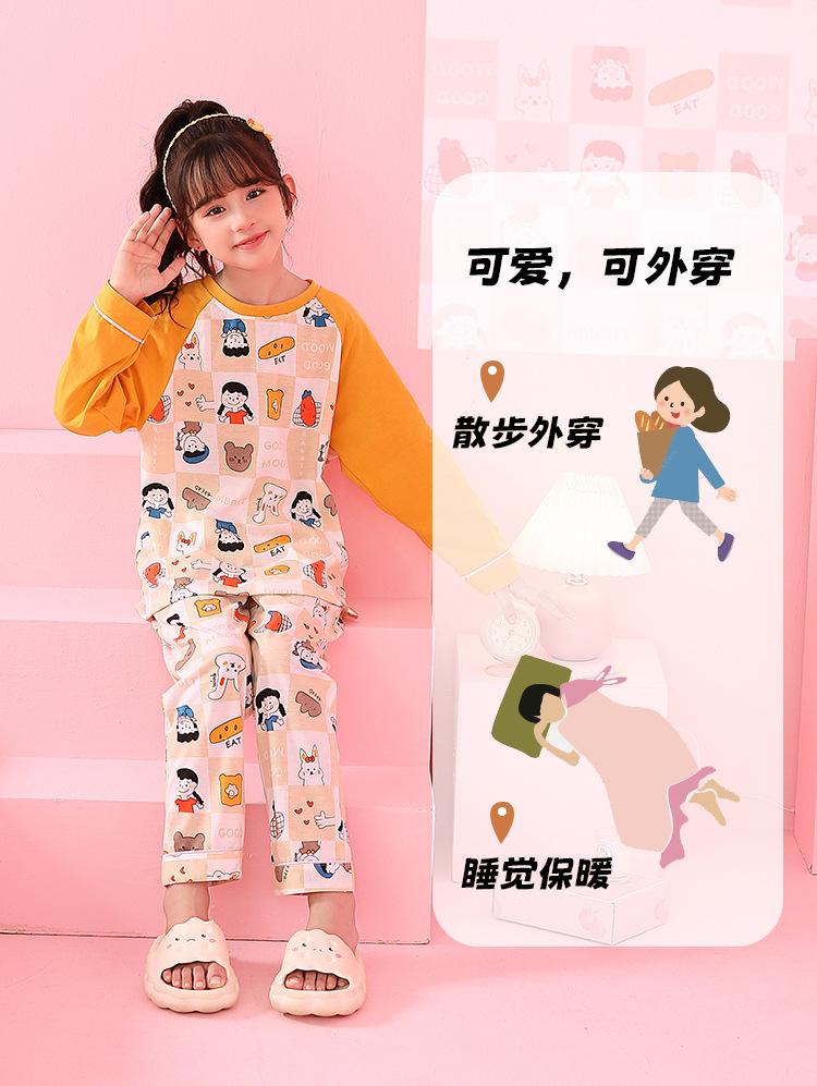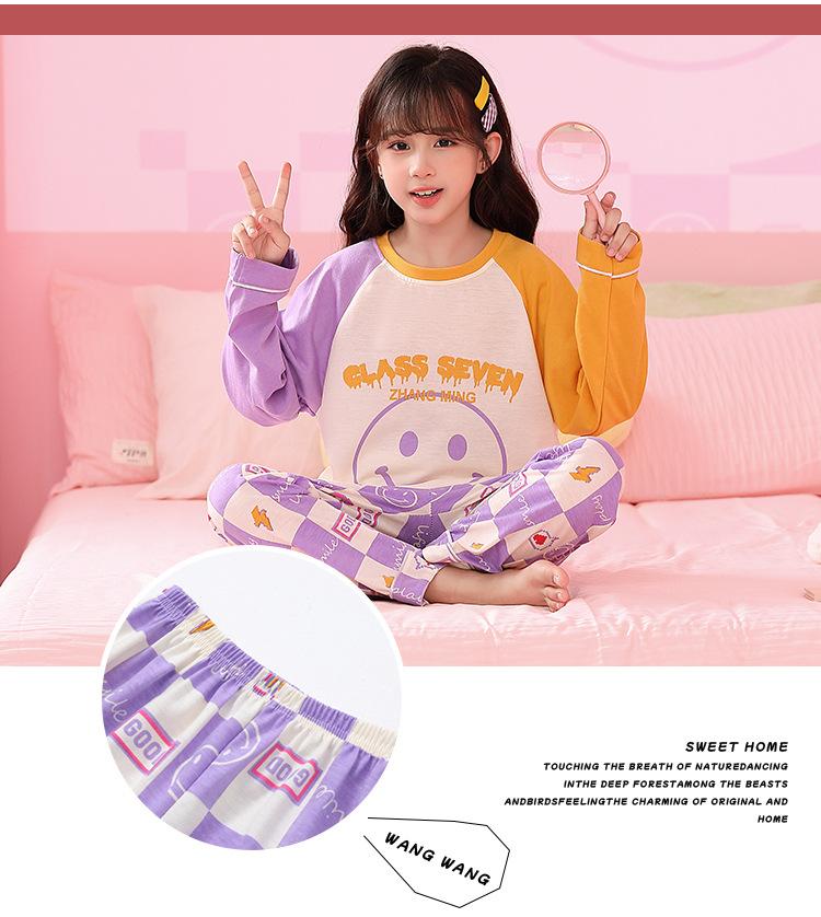 Pijamas para niñas, primavera y otoño, finos, estilo occidental, de algodón peinado, súper lindos, con dibujos animados, para el hogar.