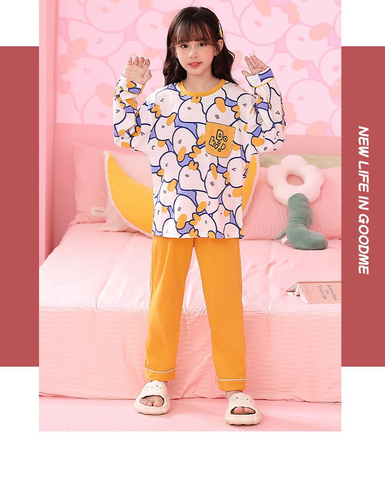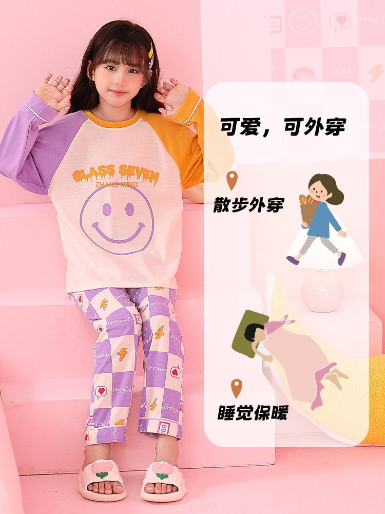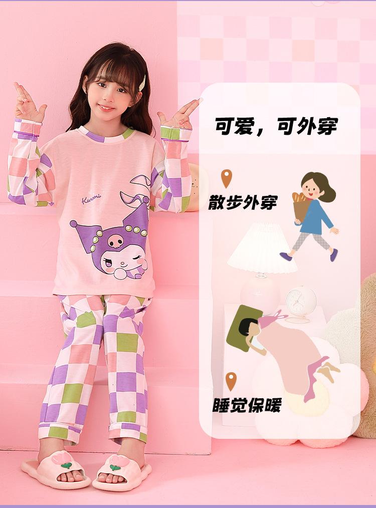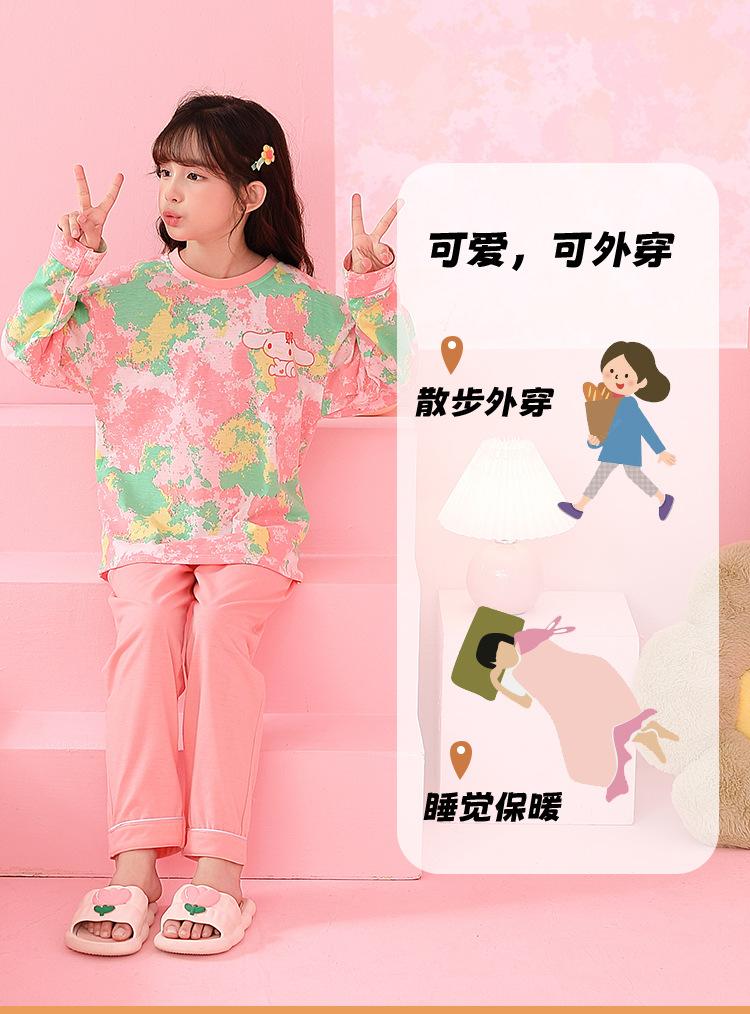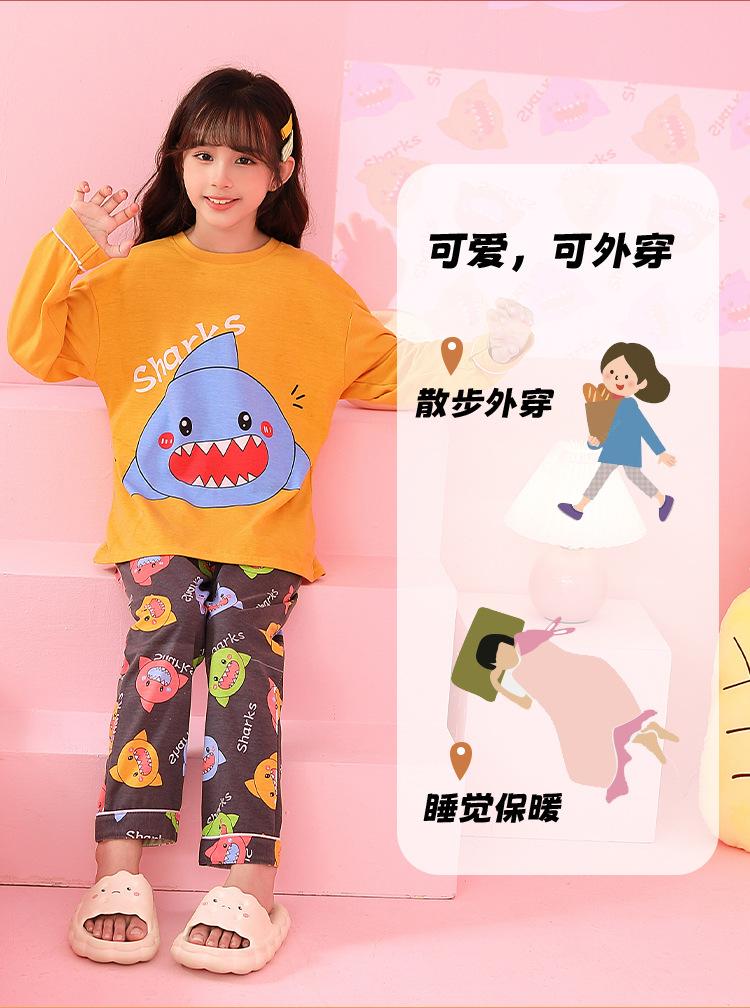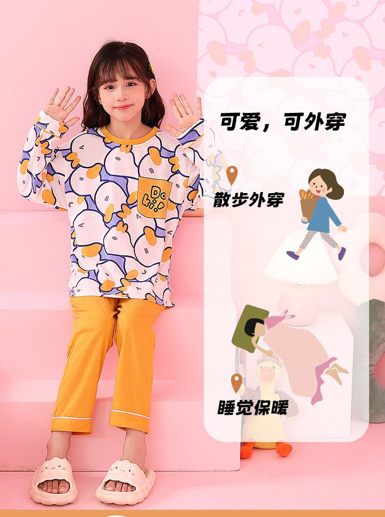 Pijamas para niñas, primavera y otoño, finos, estilo occidental, de algodón peinado, súper lindos, con dibujos animados, para el hogar.