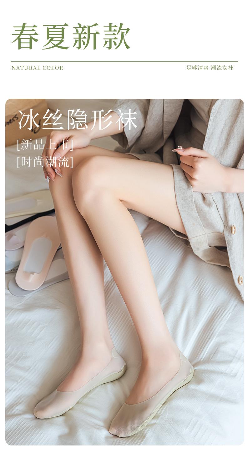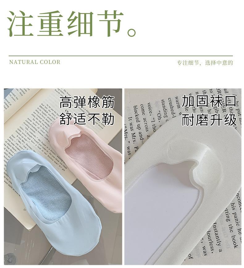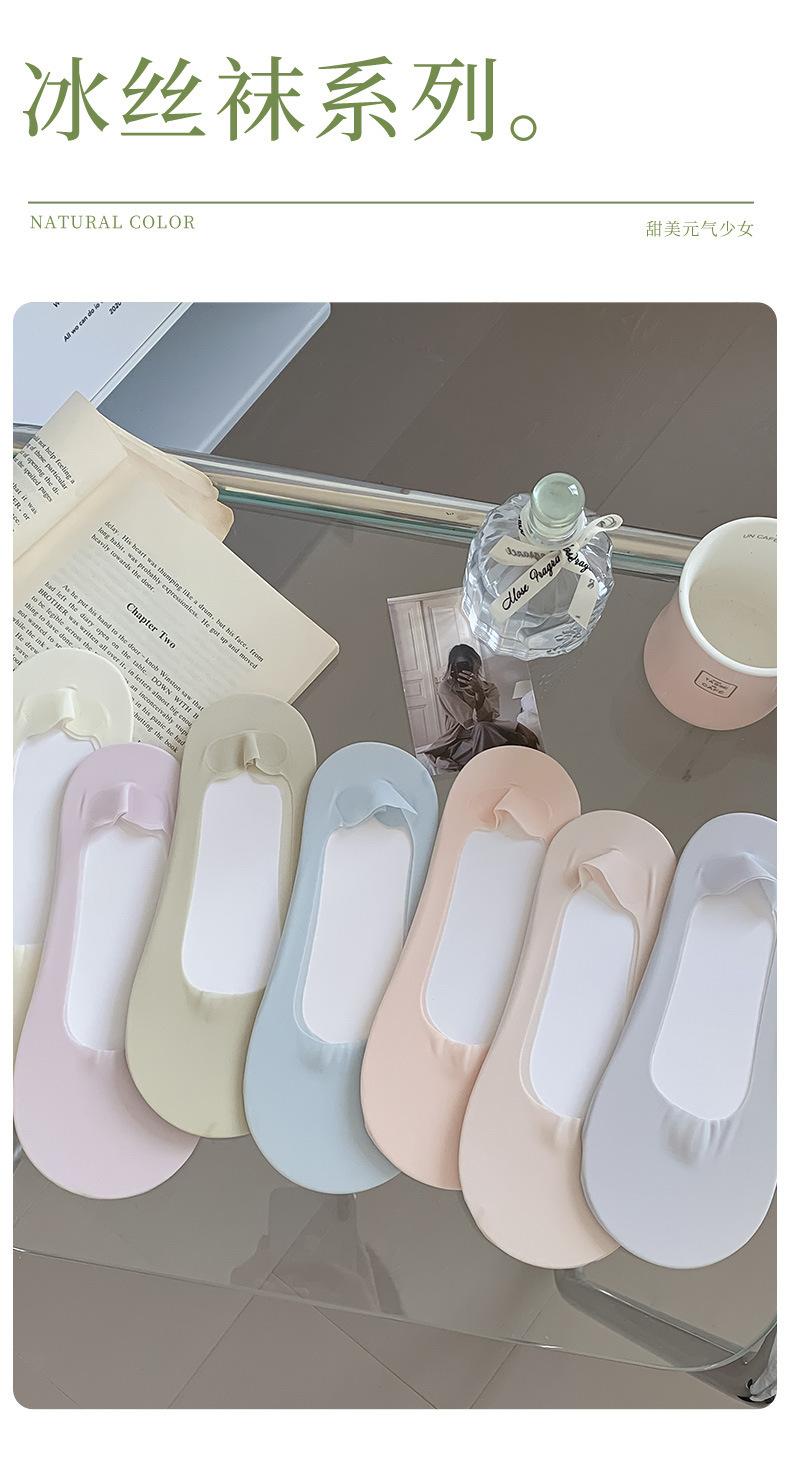 Calcetines náuticos de seda de hielo para mujer, finos e invisibles, de verano, de algodón, transpirables, absorbentes del sudor, de color sólido, informales y frescos.