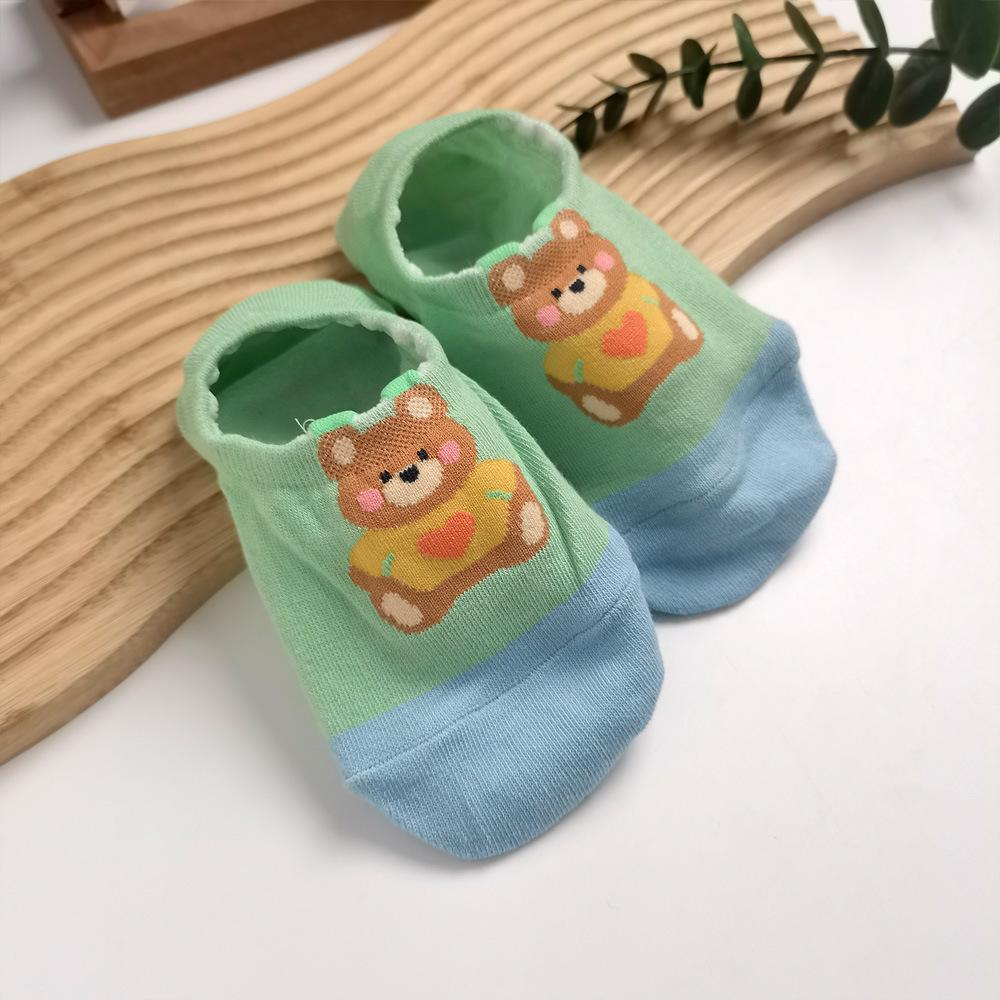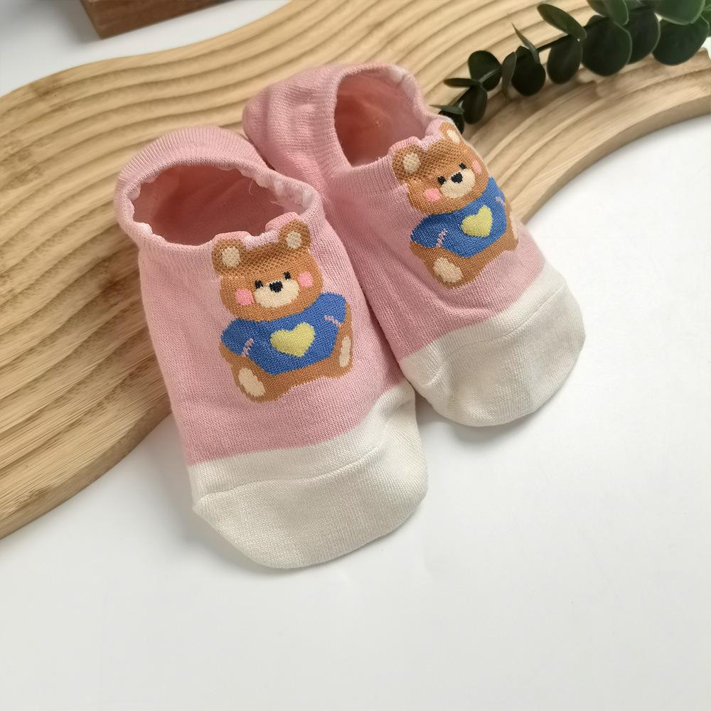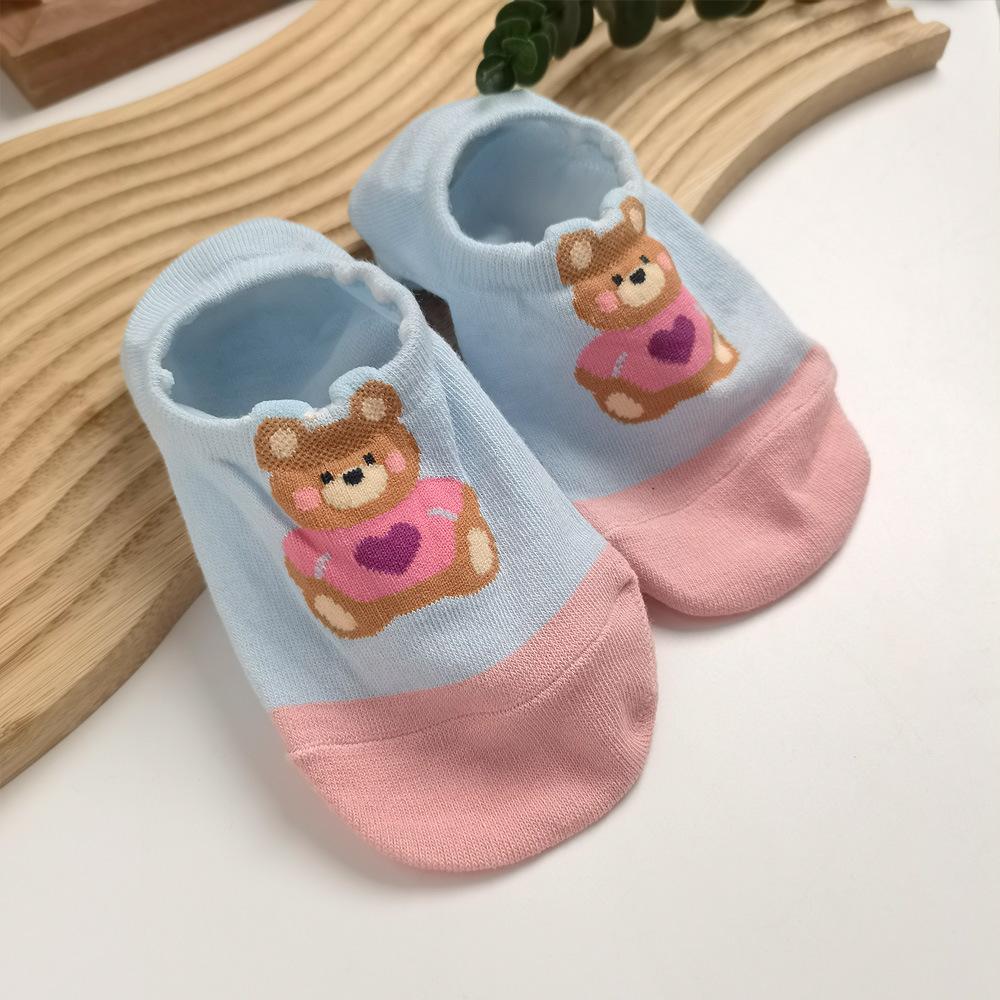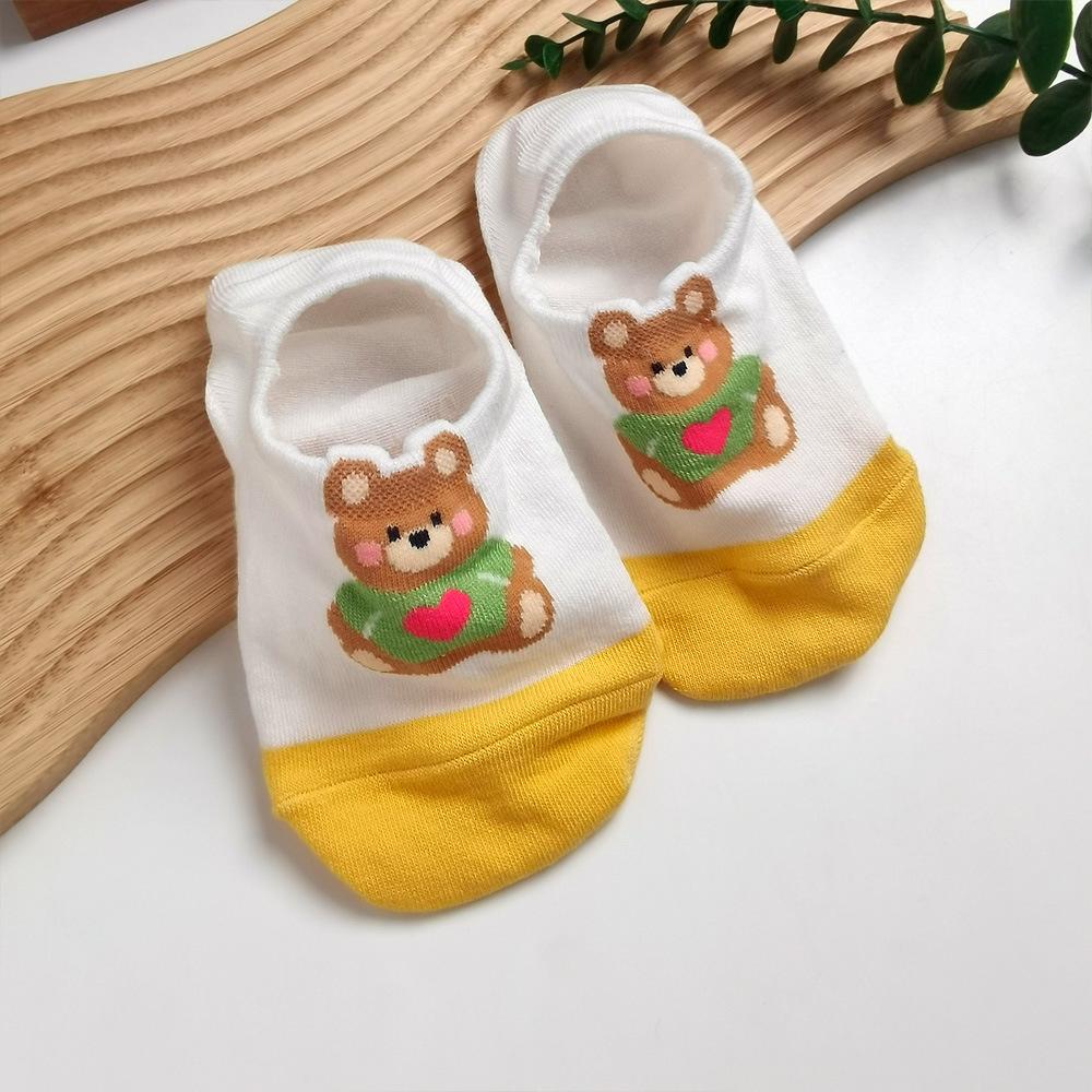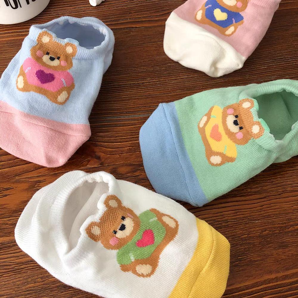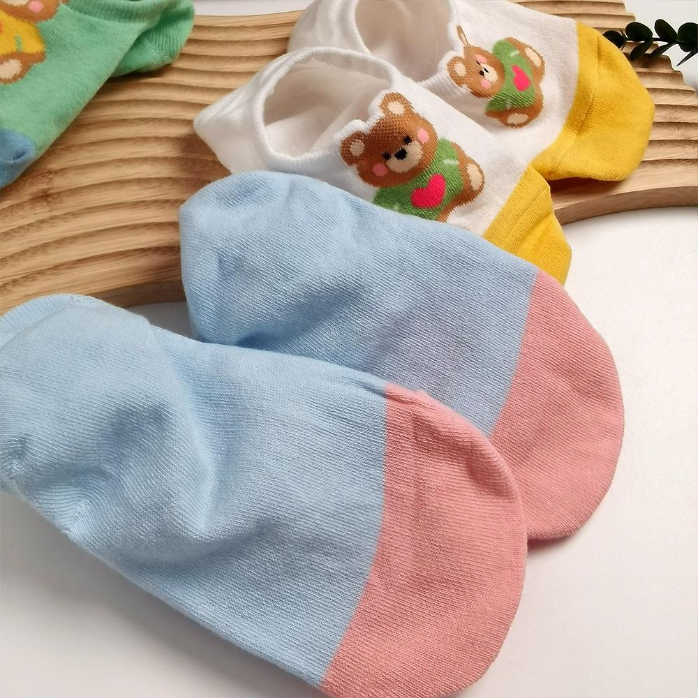Calcetines Coreanos Kikiya de Osito Boca Baja Invisibles Casuales de Algodón para Mujer Anime Dibujos Animados Primavera y Verano Bolsas Independientes