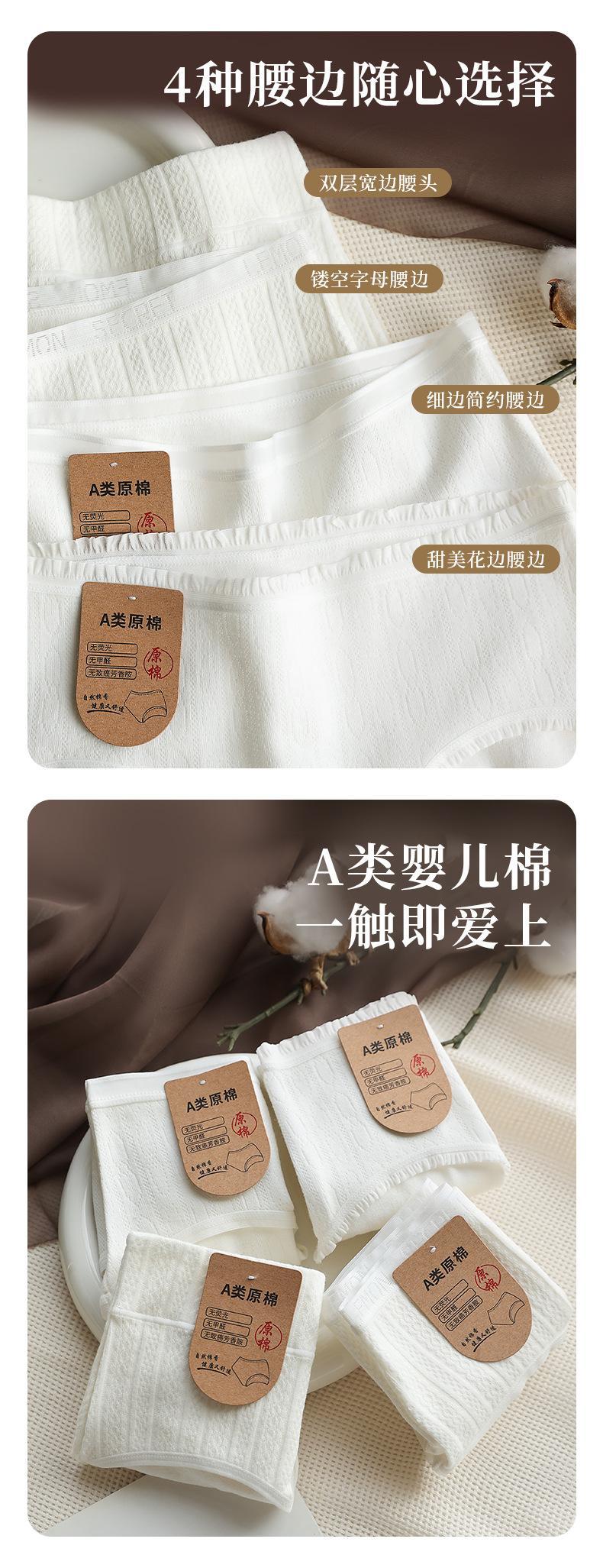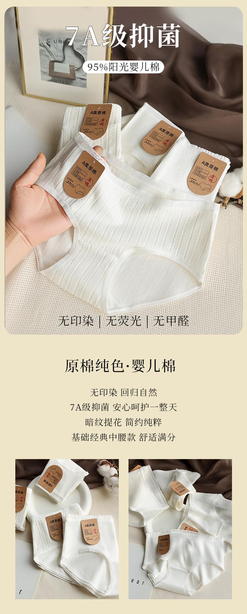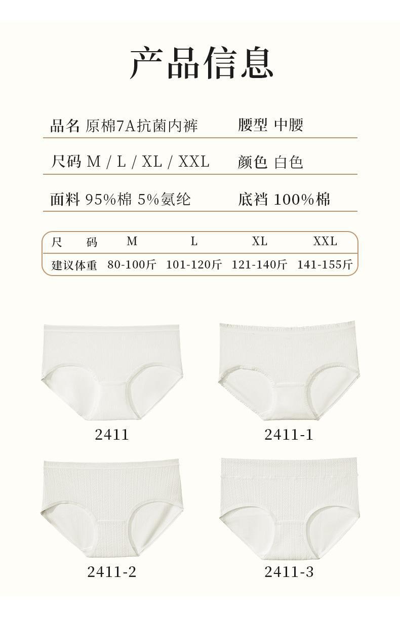 7A Ropa Interior Antibacteriana para Mujer Algodón Puro Transpirable Algodón Crudo Clase A Cintura Media Calzones Blancos para Niña Shorts Sin Costuras