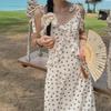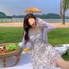 2025 Verano Nuevo Estilo Francés Femenino Vestido de Tirantes con Volantes Cuello para Mujer Falda Floral Hora del Té Falda Larga