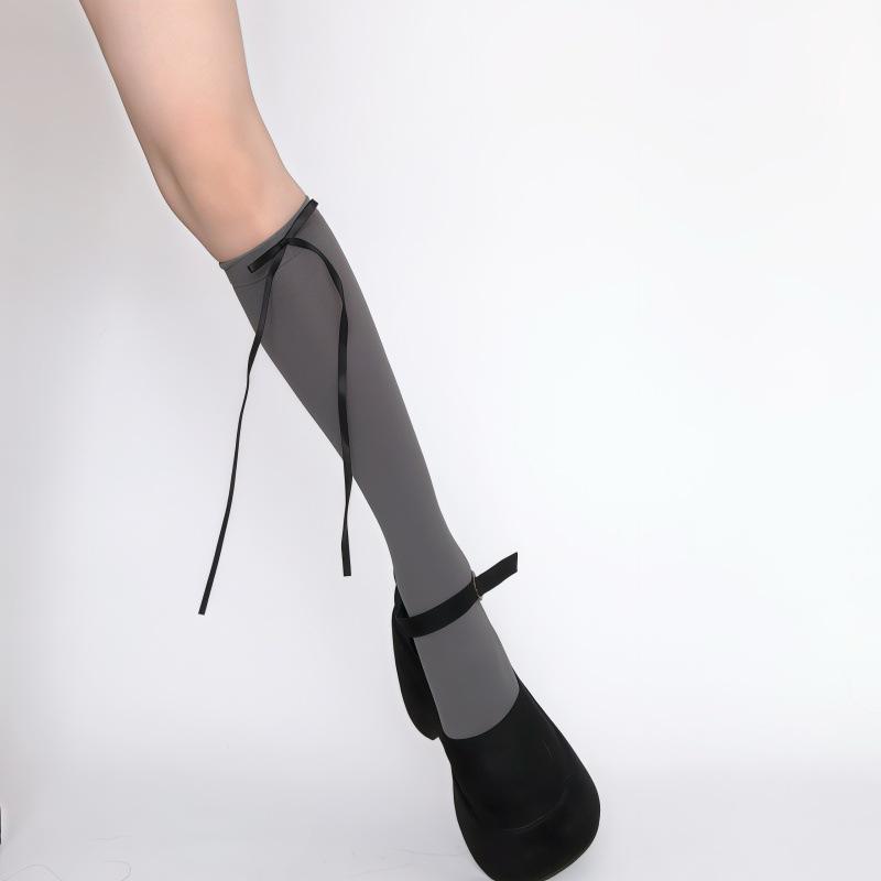 Calcetines grises con lazo para niñas, bonitos y adorables calcetines de falda lolita con lazo JK