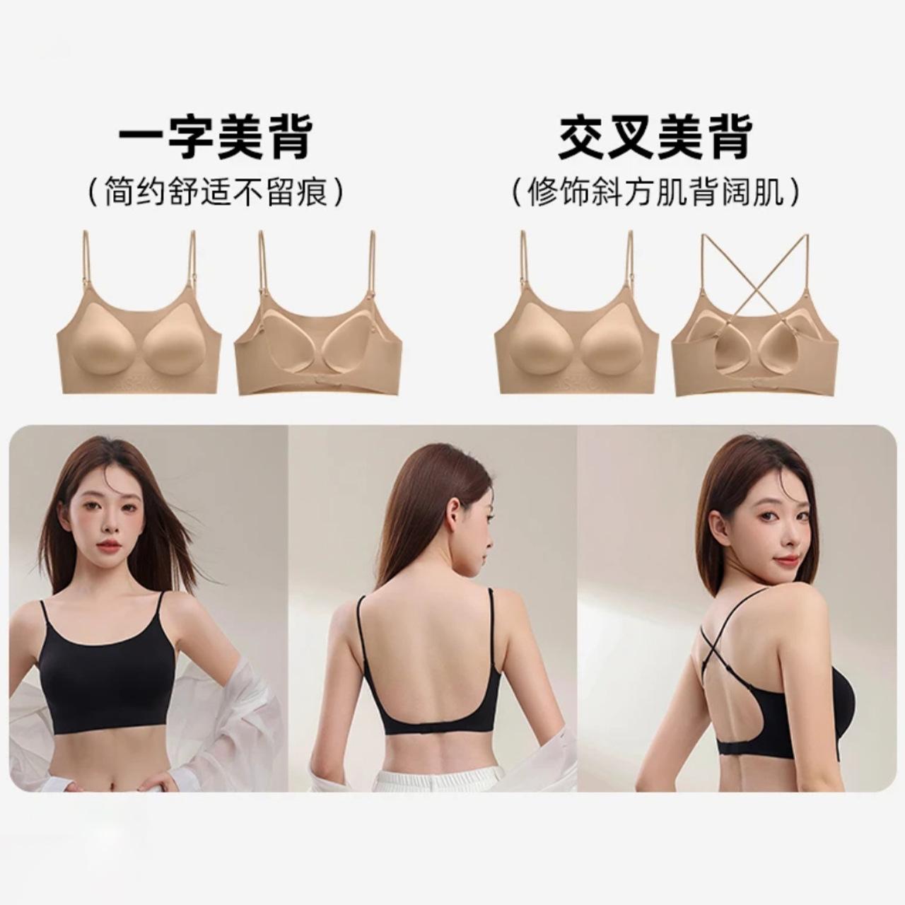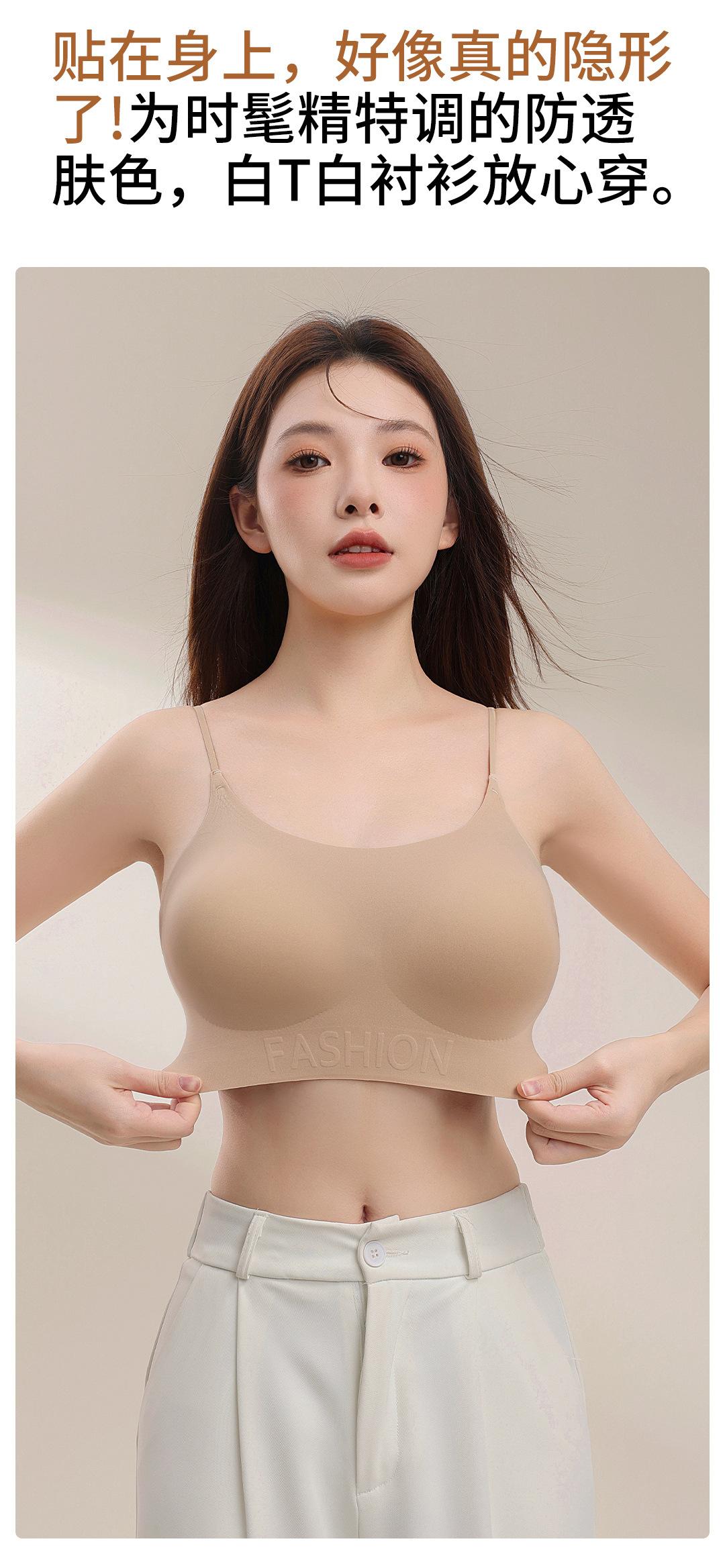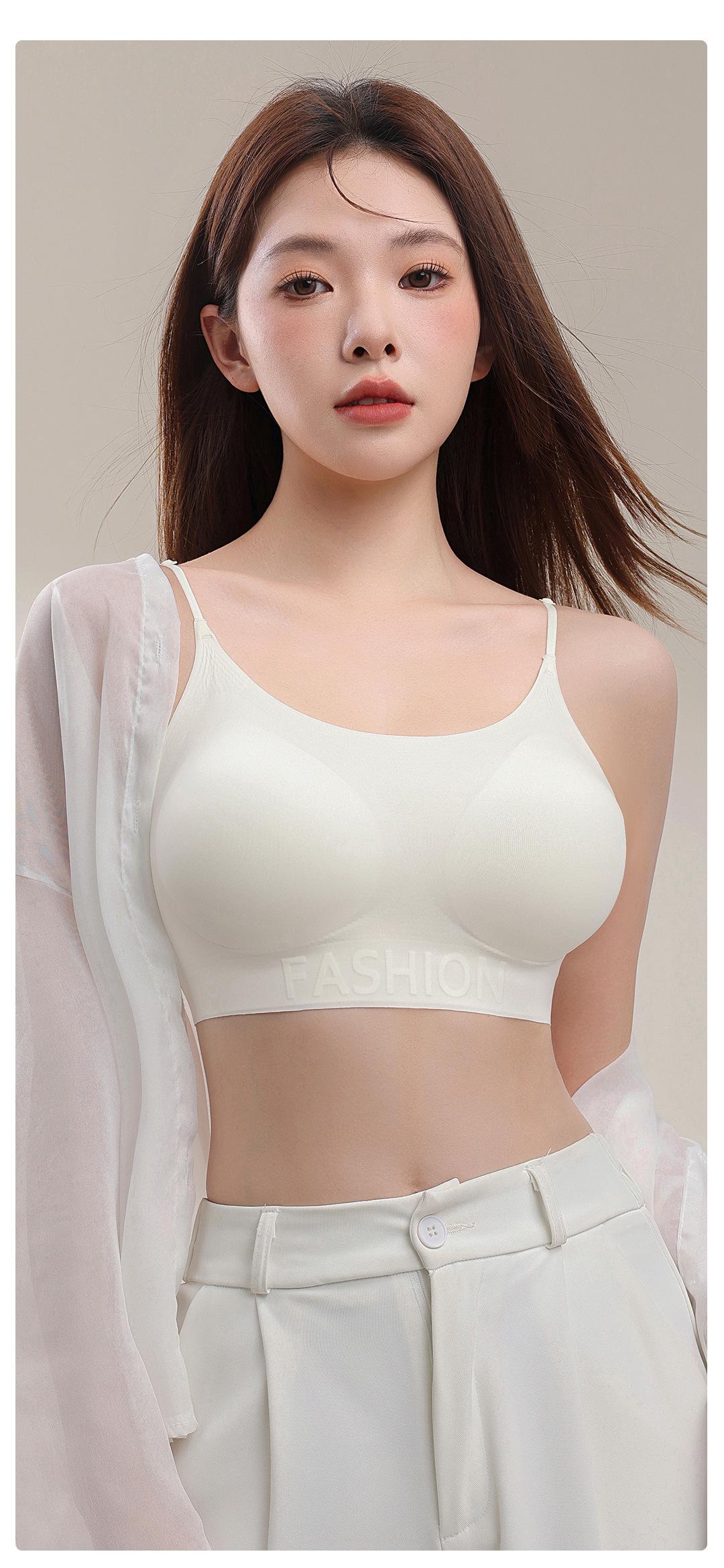 Sostén sin costuras de base líquida, Blanco T, Opaco, Invisible, Cómodo, Espalda hermosa, Pechos pequeños, Tirantes anchos, Íntimos de doble uso para mujer