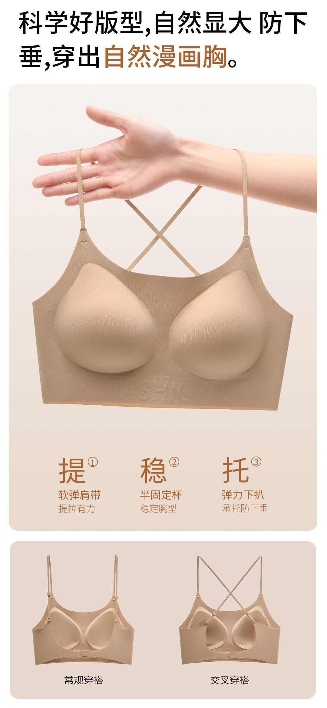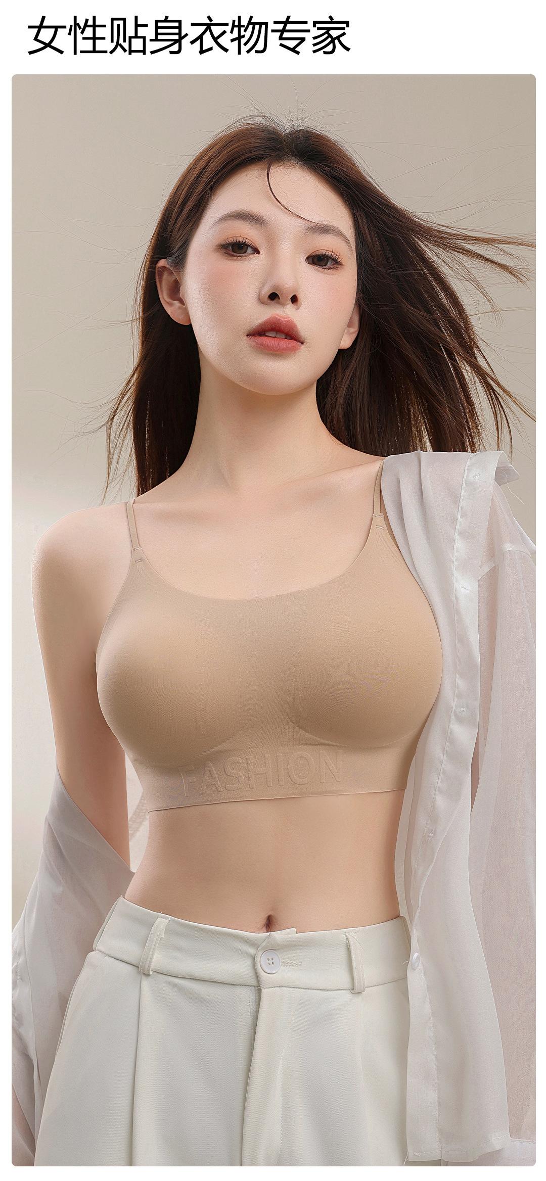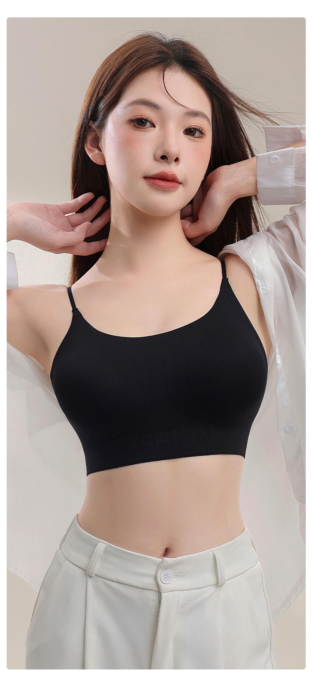Sostén sin costuras de base líquida, Blanco T, Opaco, Invisible, Cómodo, Espalda hermosa, Pechos pequeños, Tirantes anchos, Íntimos de doble uso para mujer