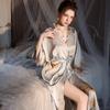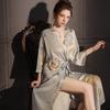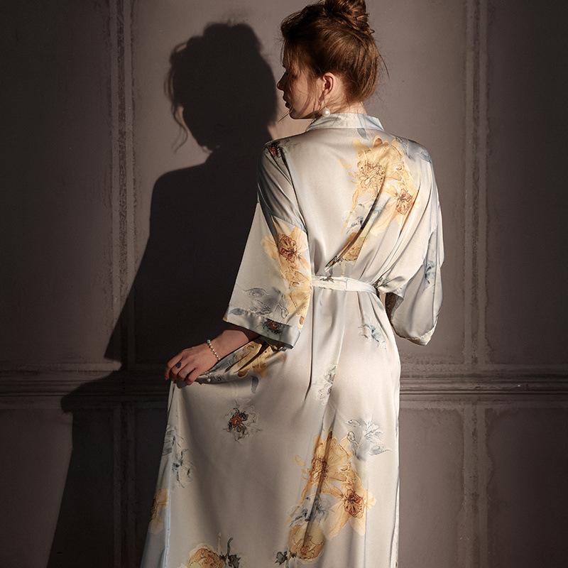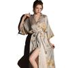 Camisón para Mujer Verano Delgado Seda de Hielo Estilo Chino Estampado Satén Pijama para Mujer Largo Bata de Casa Albornoz