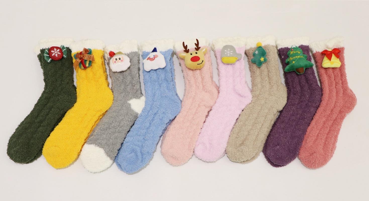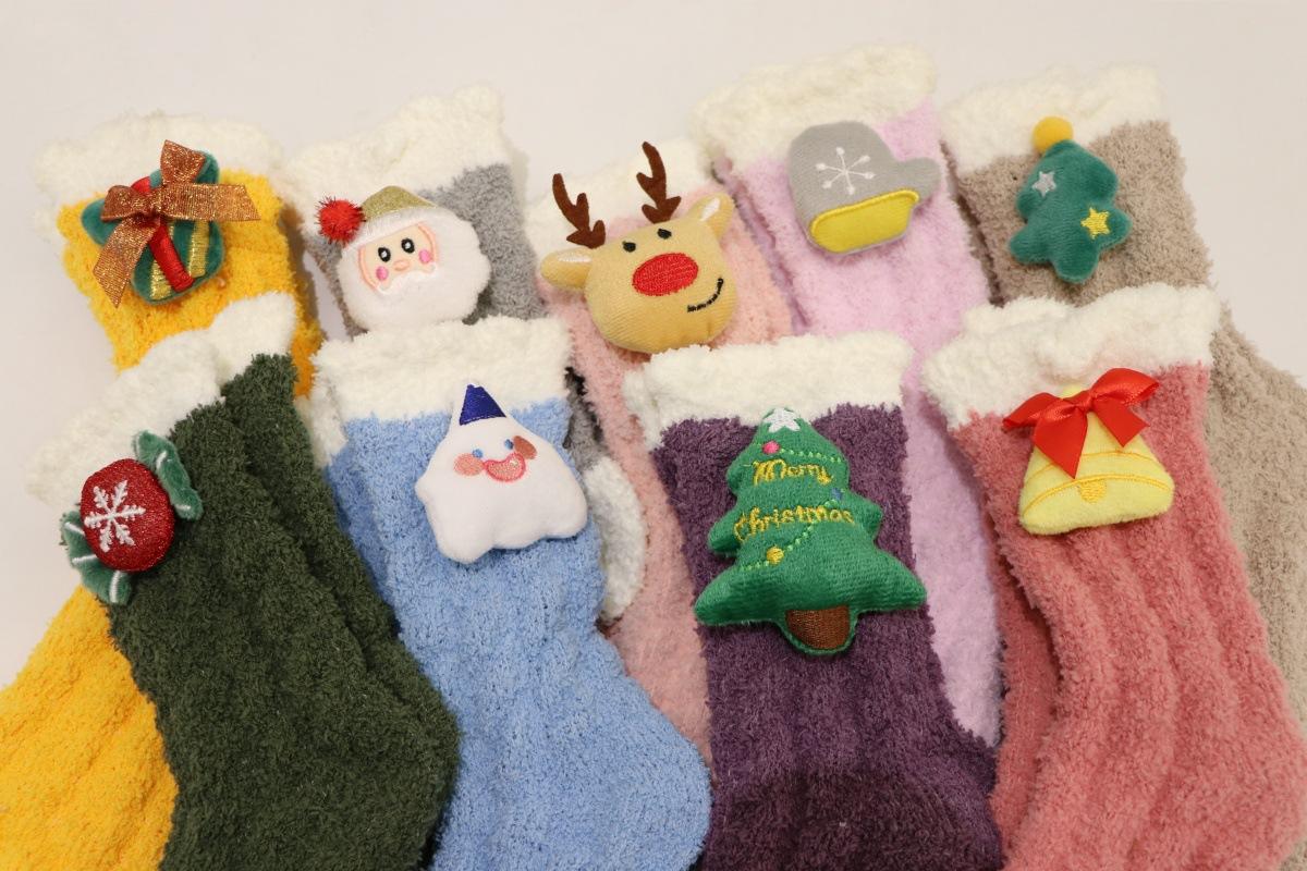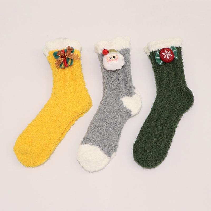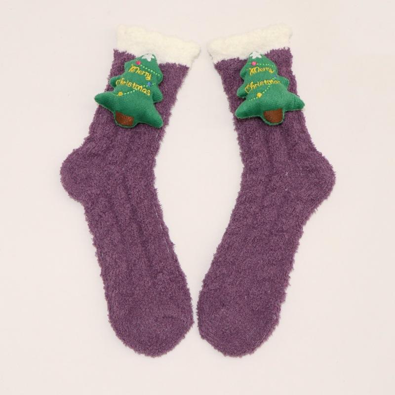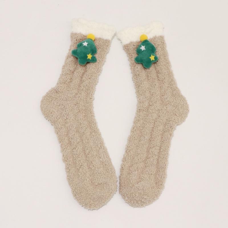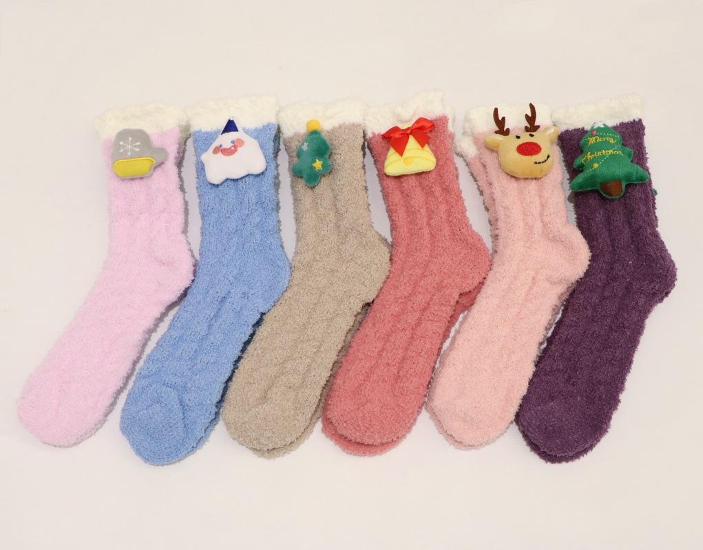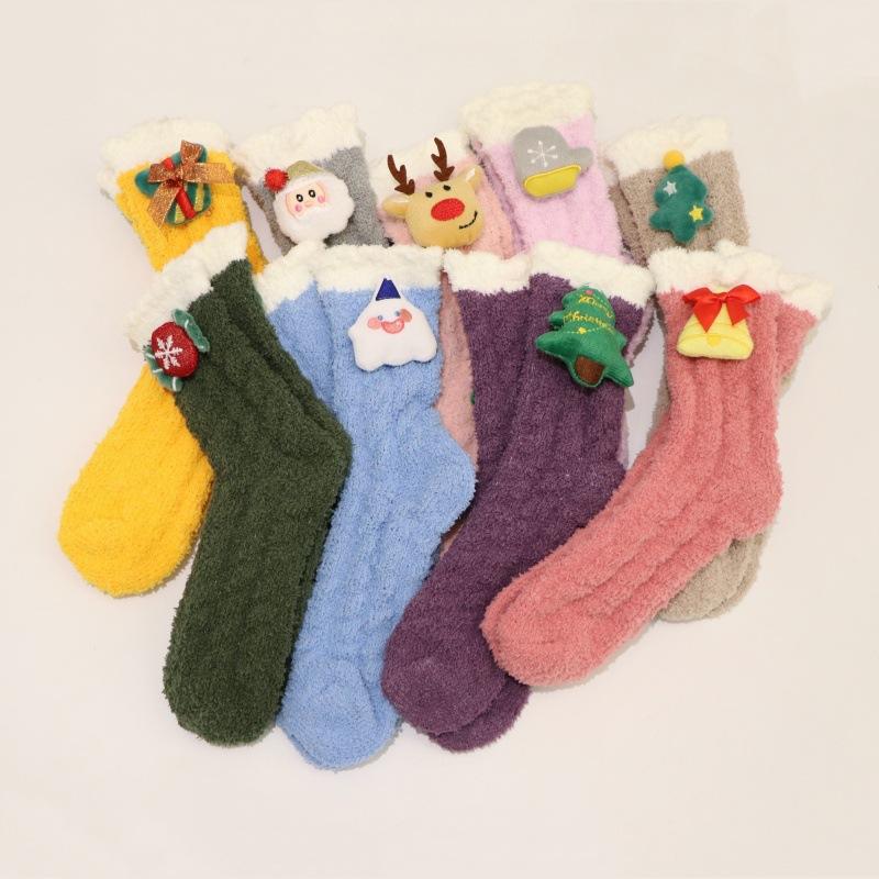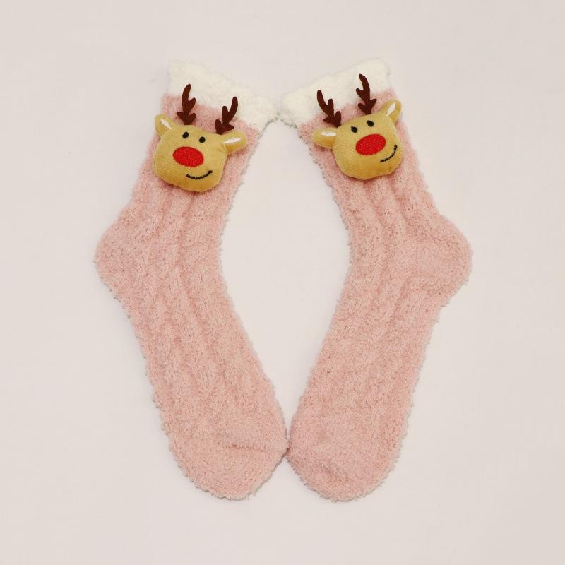 Calcetines de Terciopelo Coral para Mujer para Otoño e Invierno Forrados con Forro Polar y Engrosados Cálidos para Dormir Calcetines de Media Caña Lindo Muñeco de Peluche Calcetines para Piso de Casa