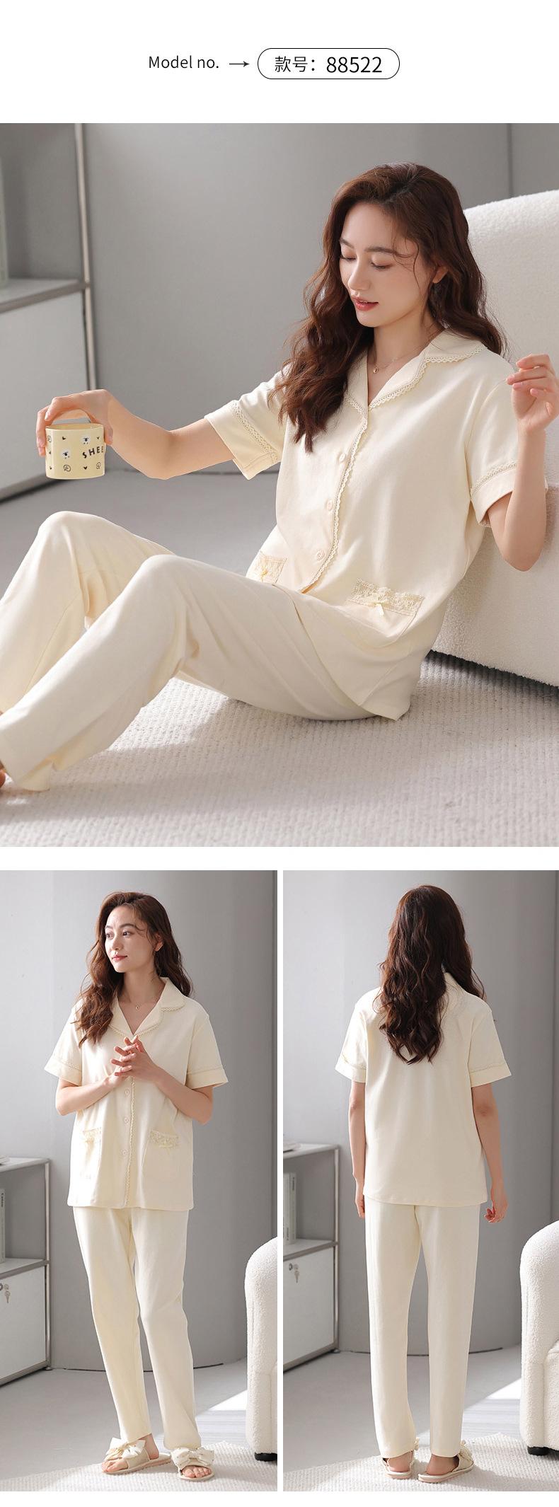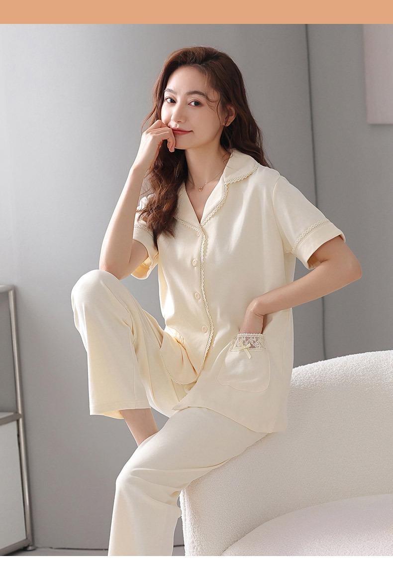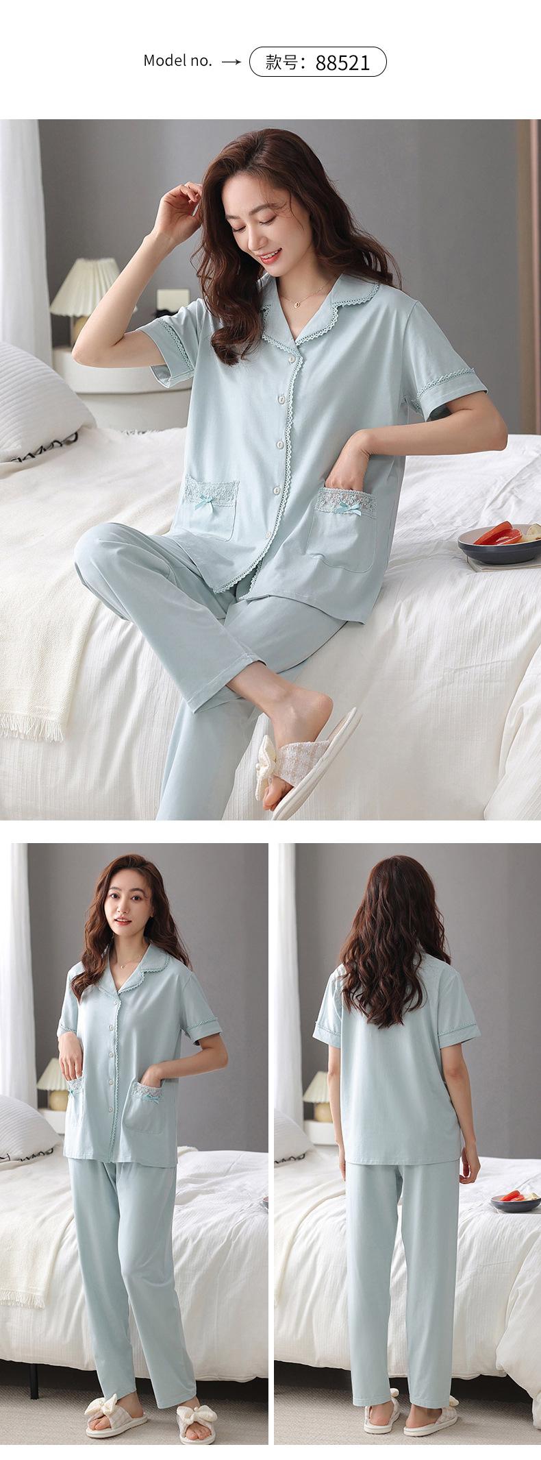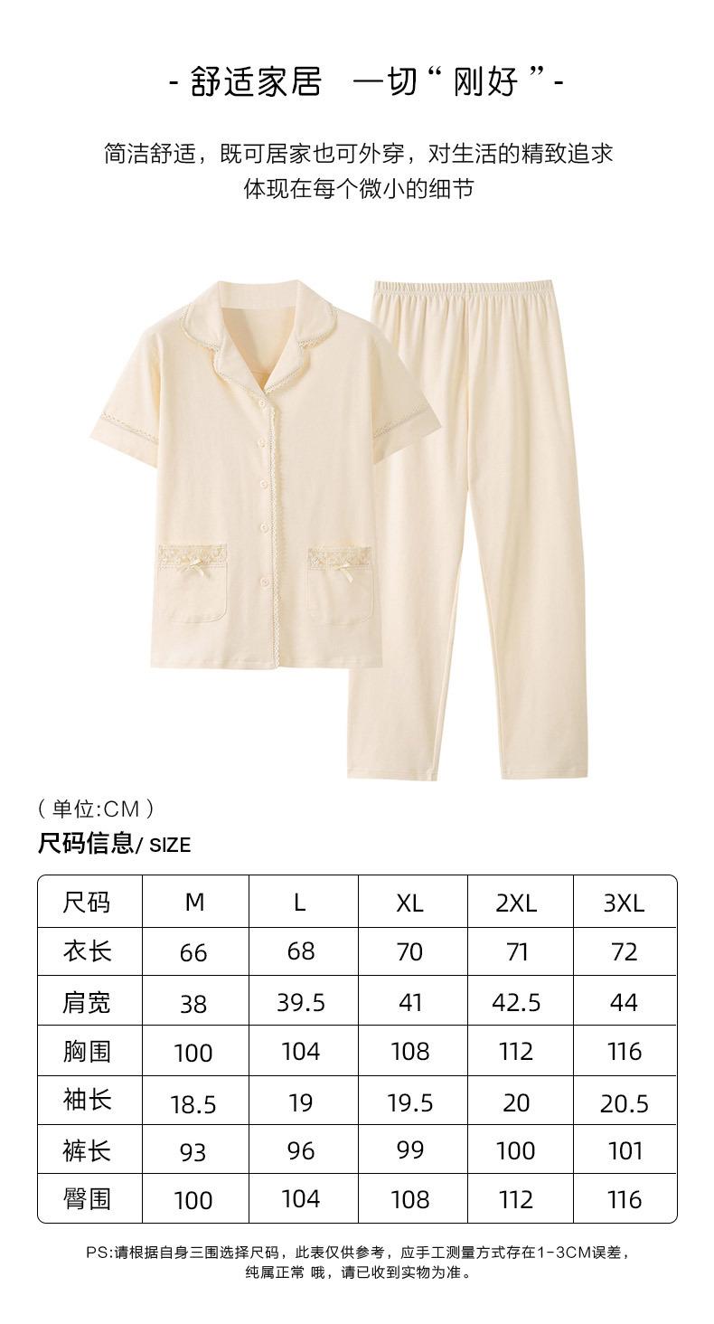 Pijamas para Mujer Verano Pull-Up Algodón Puro Pantalones de Manga Corta Color Puro Ropa para el Hogar Verano Delgada Traje de Talla Grande de Alta Gama
