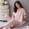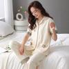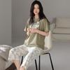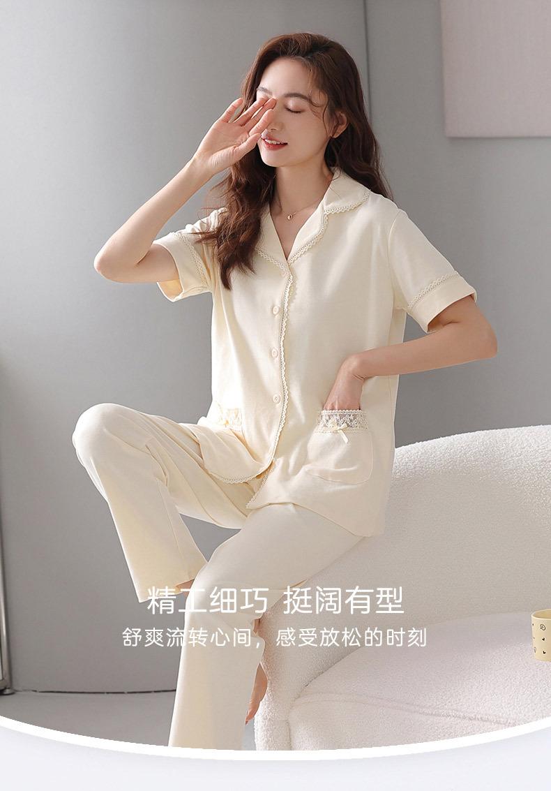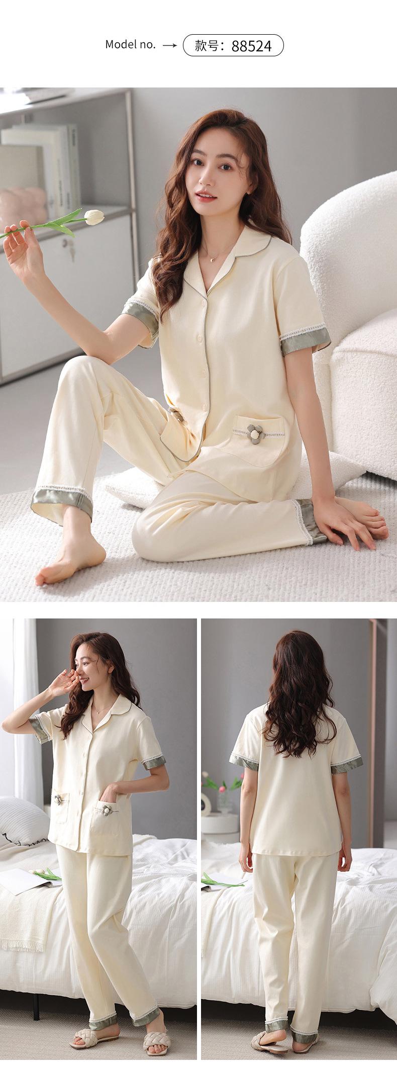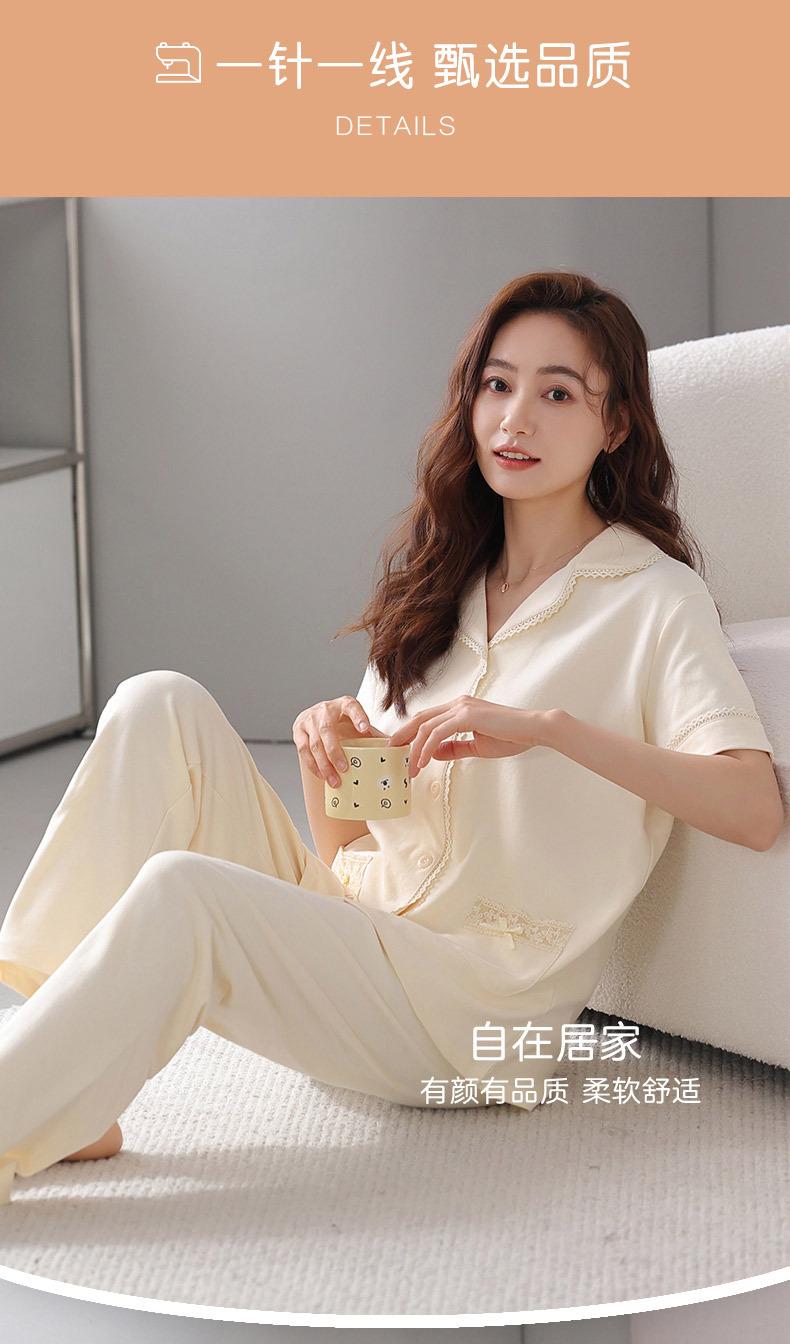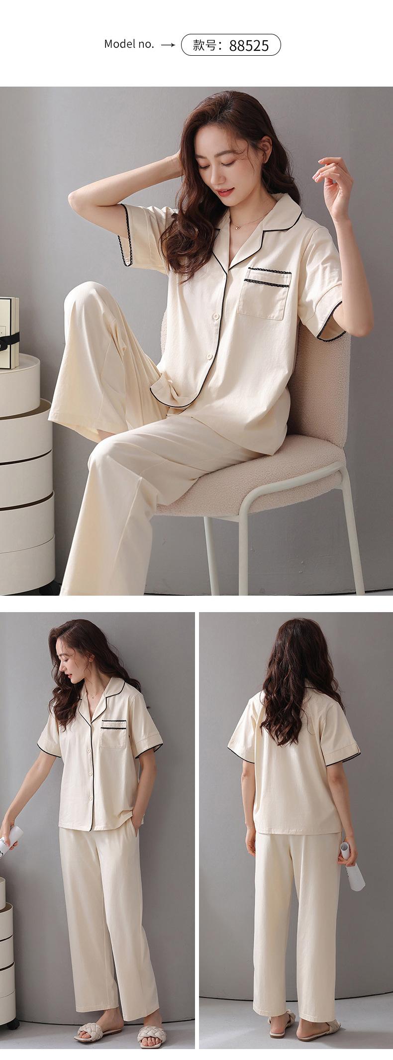 Pijamas para Mujer Verano Pull-Up Algodón Puro Pantalones de Manga Corta Color Puro Ropa para el Hogar Verano Delgada Traje de Talla Grande de Alta Gama