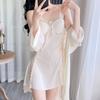 Pijama Sexy de Encaje Estilo Princesa Luz de Luna Blanca para Mujer Seda de Hielo con Almohadillas para el Busto Estilo Palacio Francés Camisón con Tirantes Conjunto de Camisón