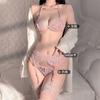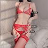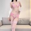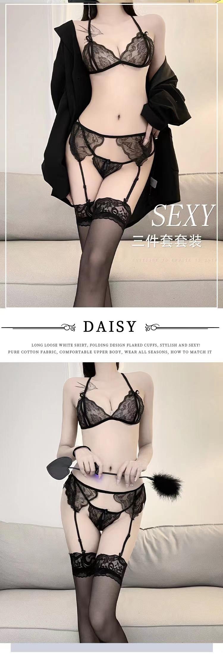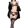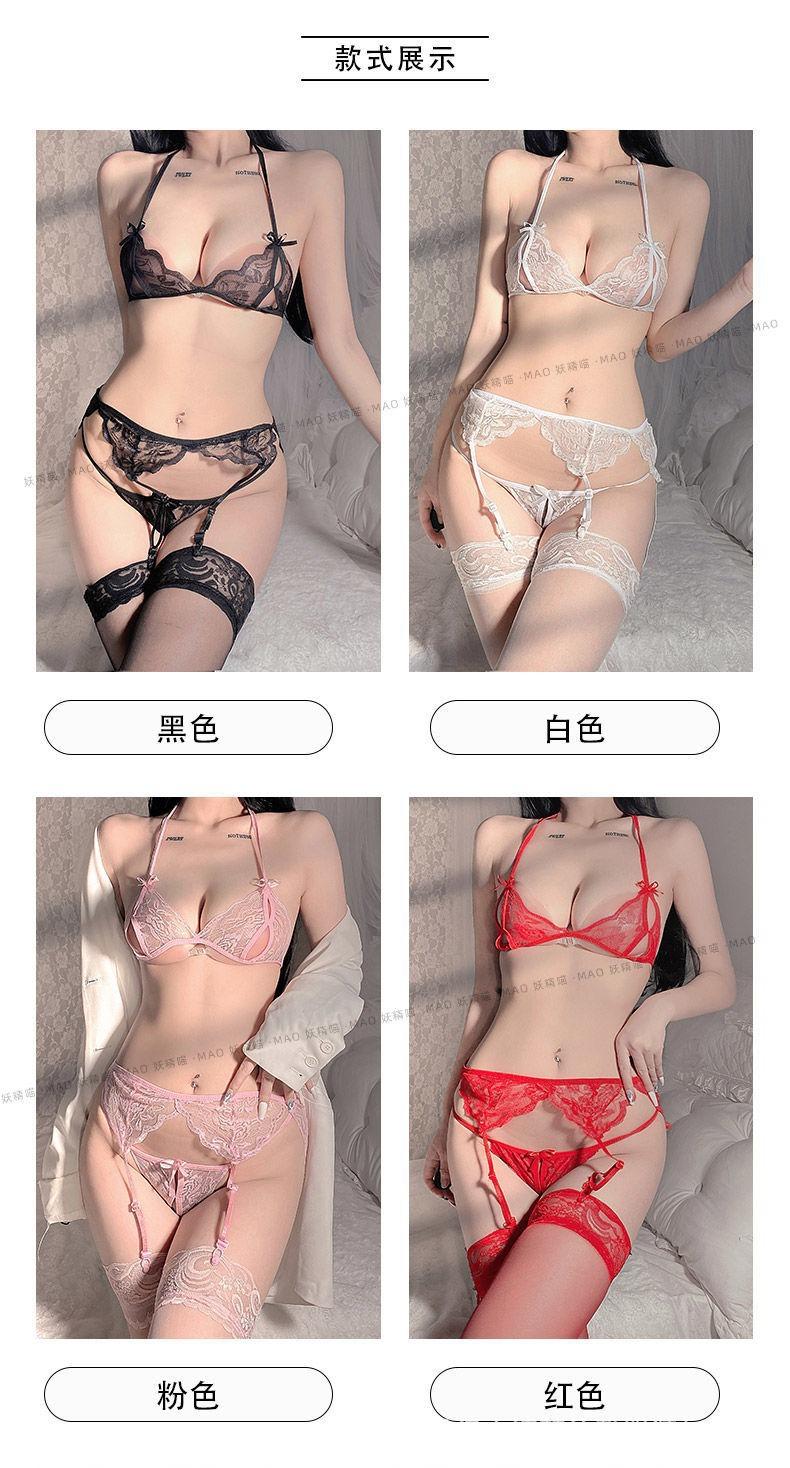 Lencería Sexy para Mujer, Encaje Sexy Tres Puntos Abierto, No Necesita Quitarse Traje de Tentación, Liguero, Medias, Medias de Red Conjunto de Tres Piezas