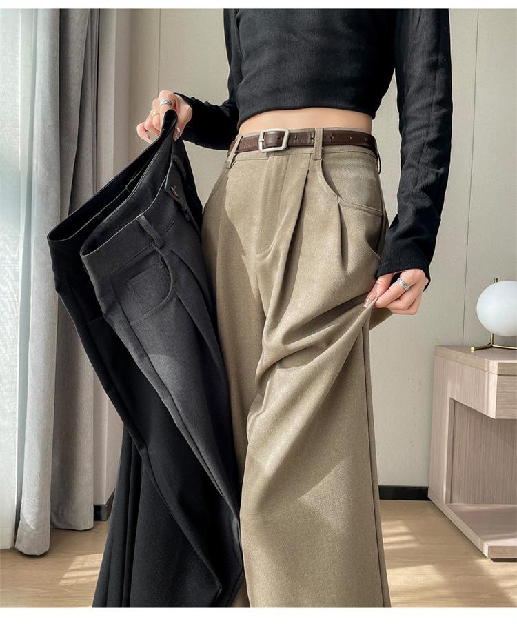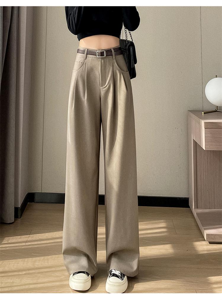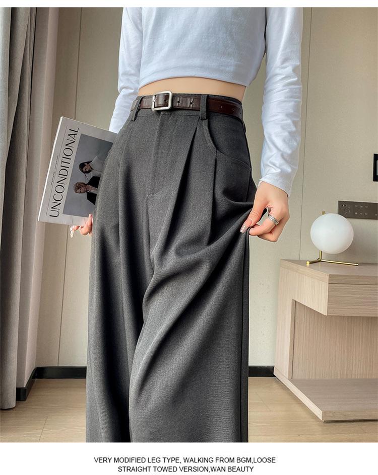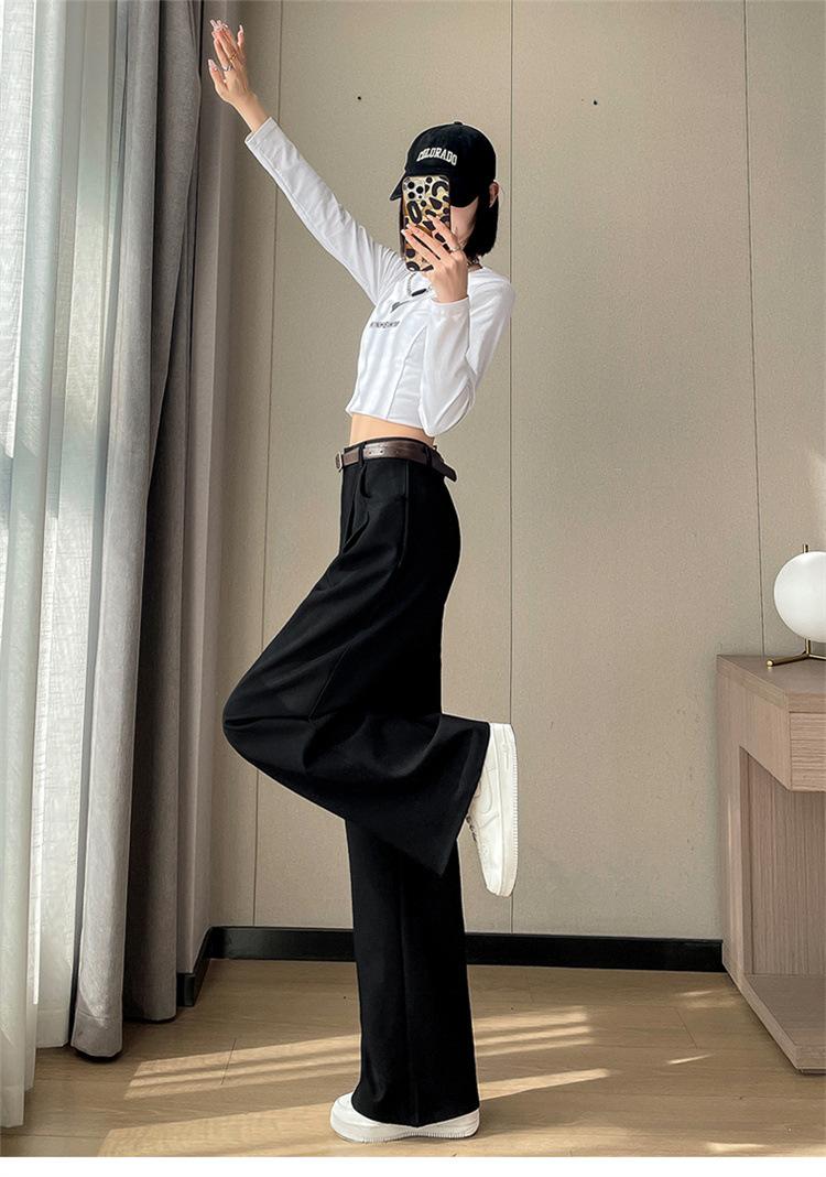 Pantalones de traje nuevos de primavera y verano 2025 de cintura alta versión estrecha pantalones de pierna ancha pantalones rectos casuales pantalones de piso para mujer