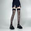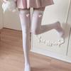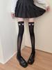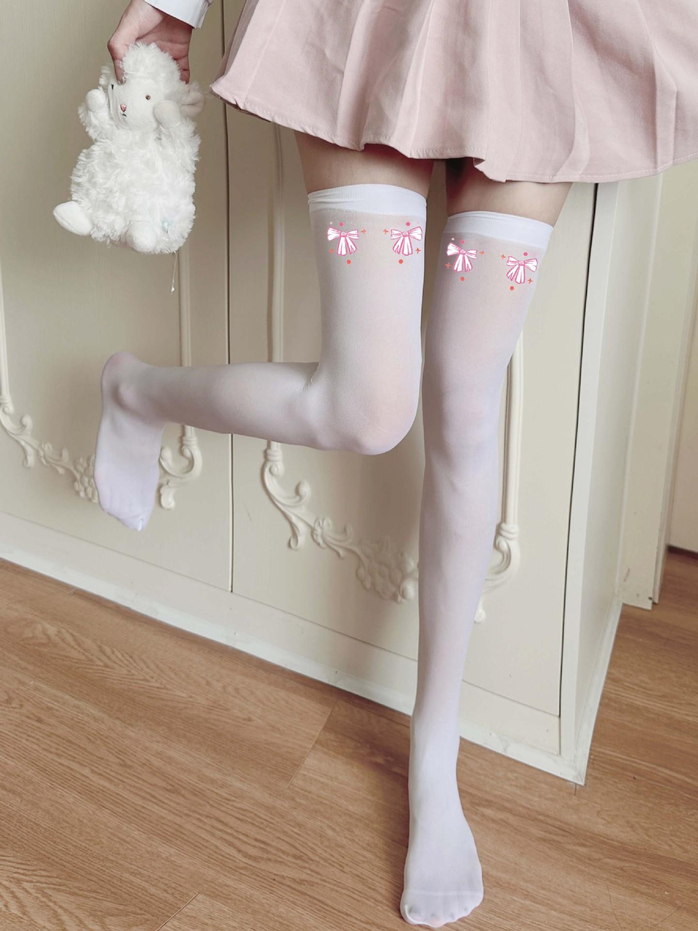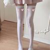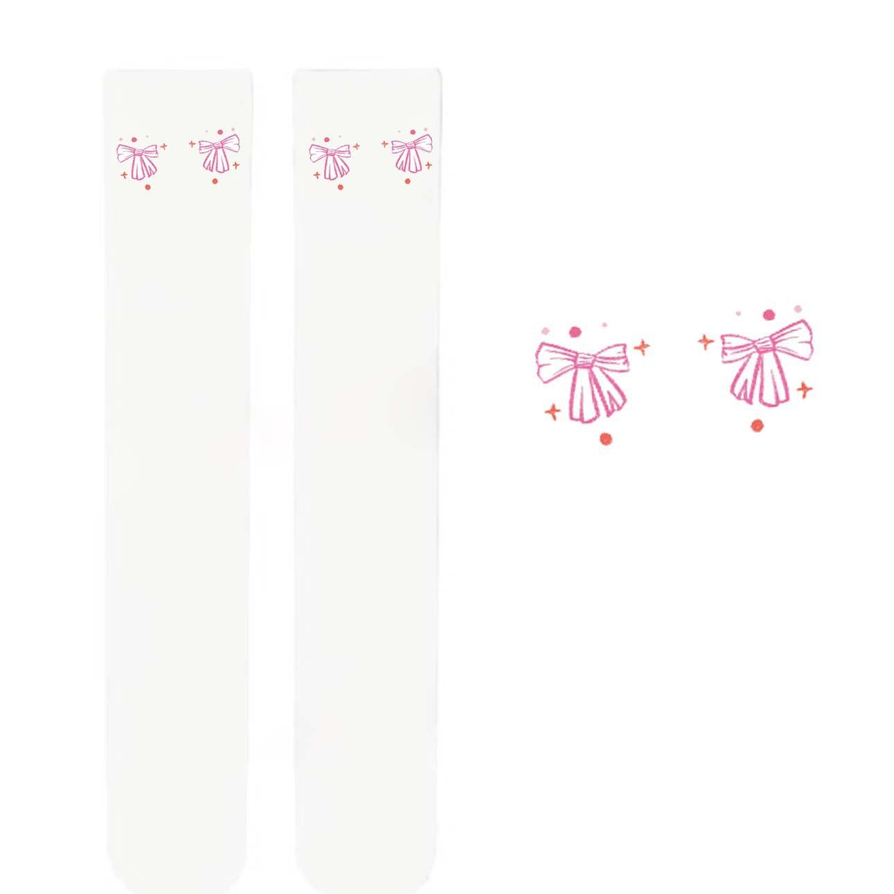 Lindos Calcetines Altos hasta la Rodilla de Verano para Mujer, Medias Blancas Delgadas, Calcetines Altos Negros hasta el Muslo con Lazo Estampado