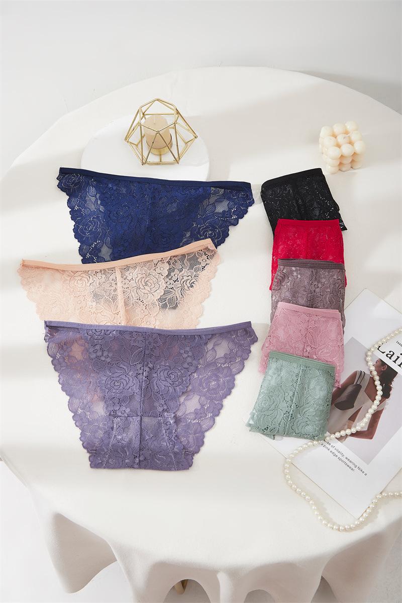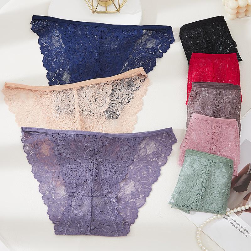 [Personalizado] Ropa Interior Sexy Francesa de Encaje Degradado, Cintura Baja, Alta Elasticidad, Cómoda, Transpirable, Tanga sin Costuras para Mujer