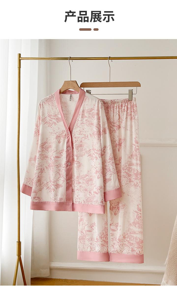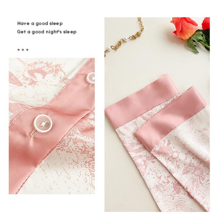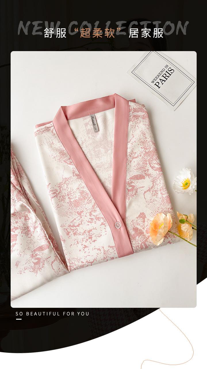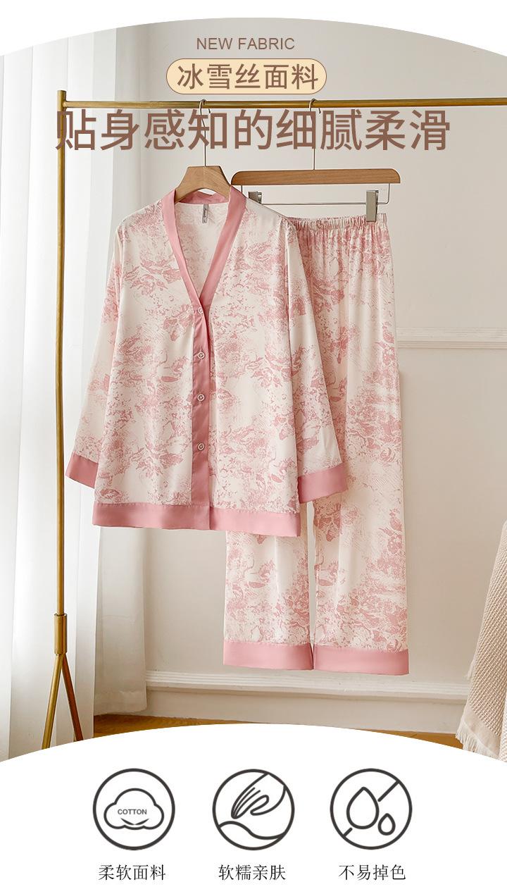 Pijama Nuevo de Primavera y Otoño 2024 de Seda de Hielo para Mujer de Alta Calidad Color Rosa Tinta Ropa para el Hogar Traje Desgastable de Seda Simulada