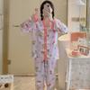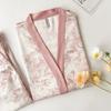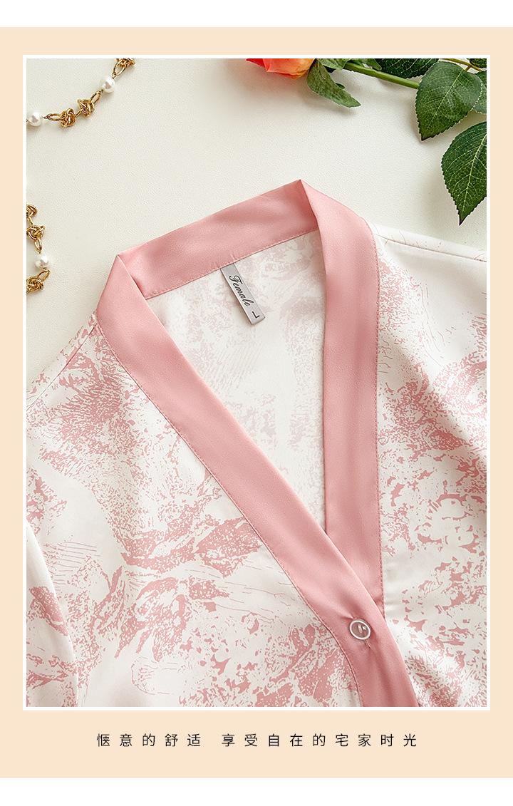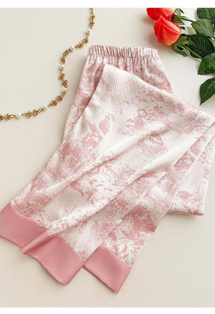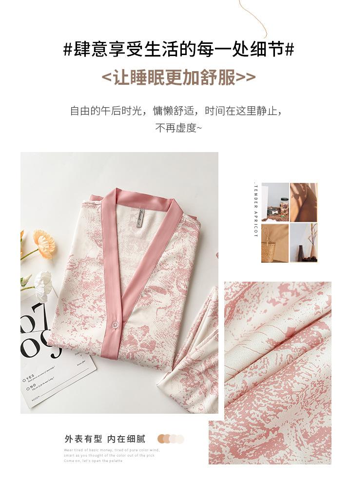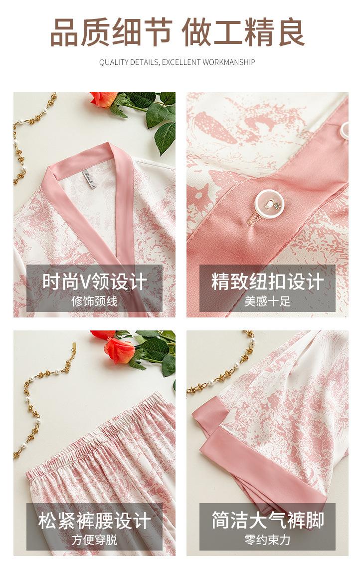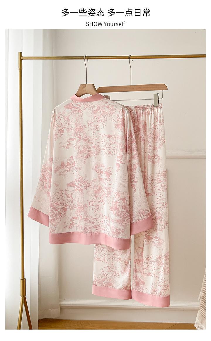 Pijama Nuevo de Primavera y Otoño 2024 de Seda de Hielo para Mujer de Alta Calidad Color Rosa Tinta Ropa para el Hogar Traje Desgastable de Seda Simulada
