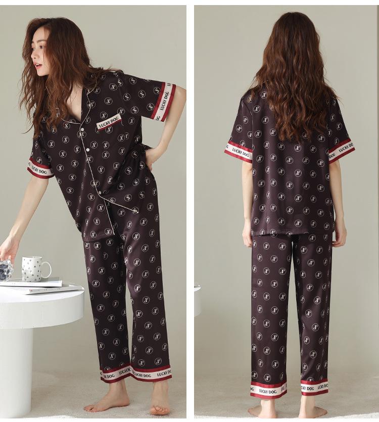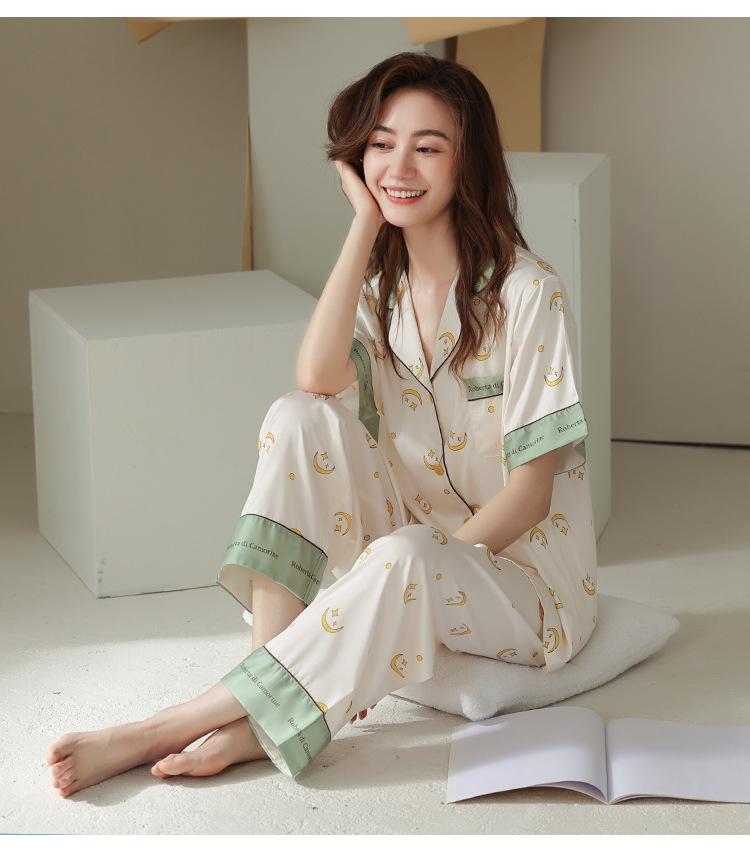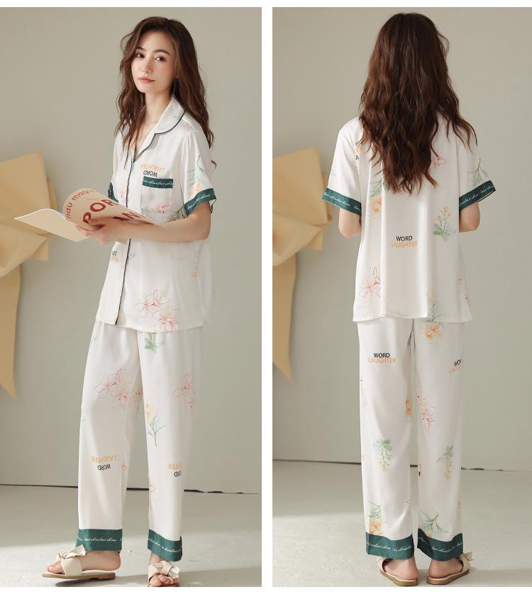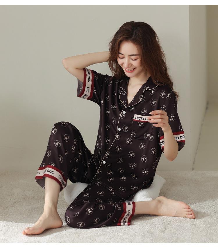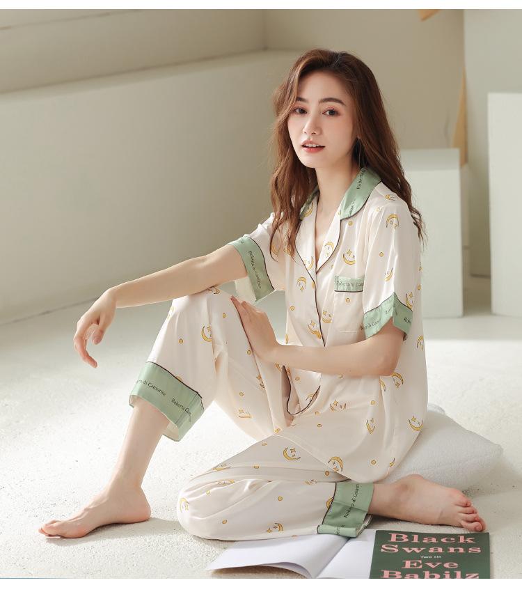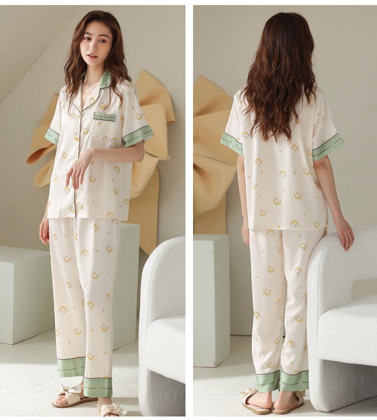 Pijama de Seda de Hielo para Mujer Verano Manga Corta de Alta Gama Lujoso Conjunto de Pijama Verano Delgado Seda Ropa de Casa para Mujer