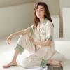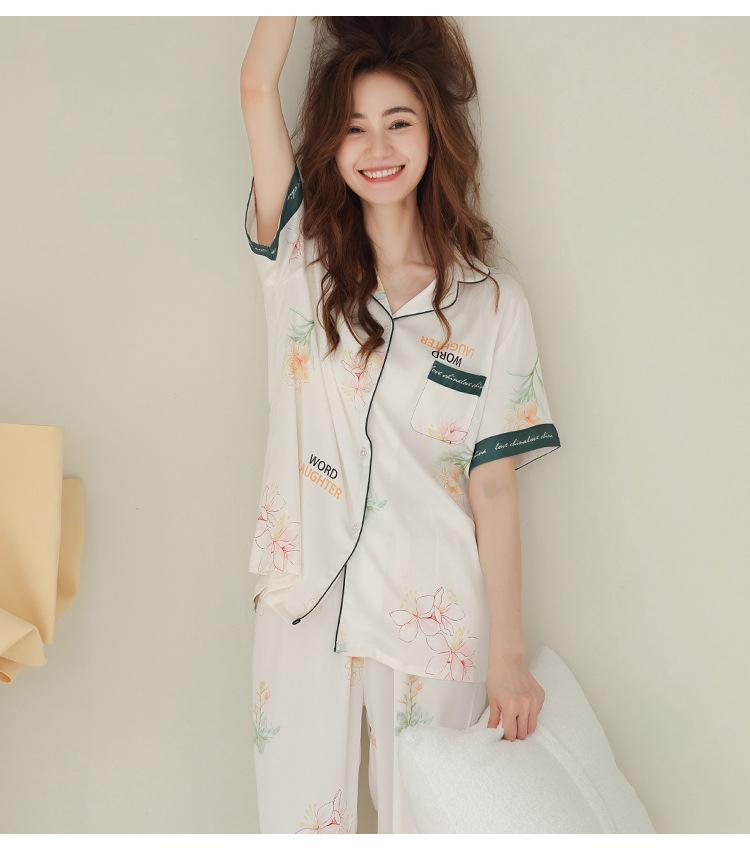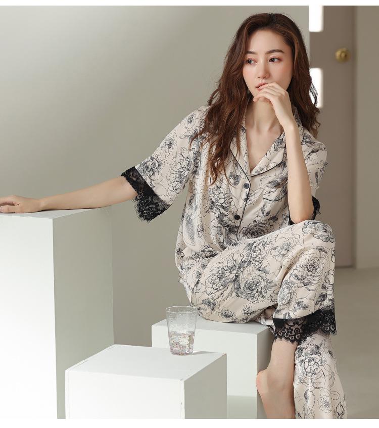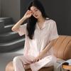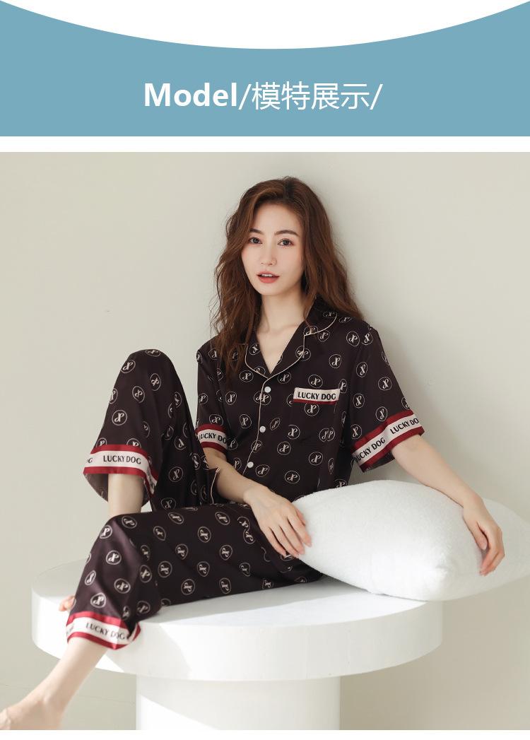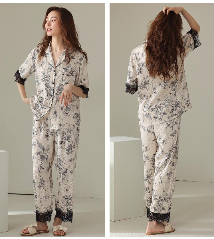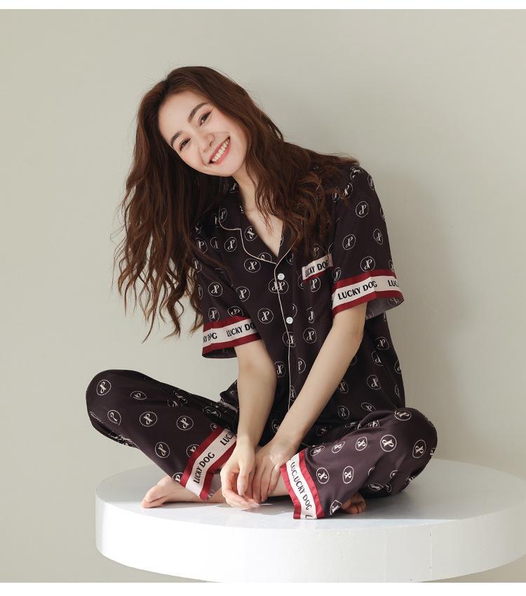 Pijama de Seda de Hielo para Mujer Verano Manga Corta de Alta Gama Lujoso Conjunto de Pijama Verano Delgado Seda Ropa de Casa para Mujer