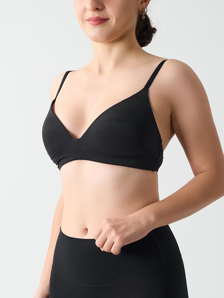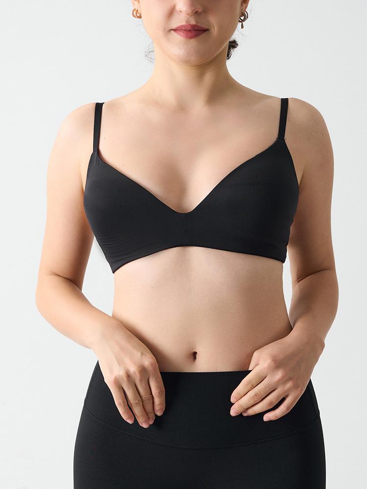 Sujetador Sujetador con Almohadillas para el Busto, Sin Aros, Cuello en V Profundo, Ajuste Push-Up, Color Puro, Sin Marcas, Amigable con la Piel, Tirantes Ajustables, Ropa Interior para Mujer