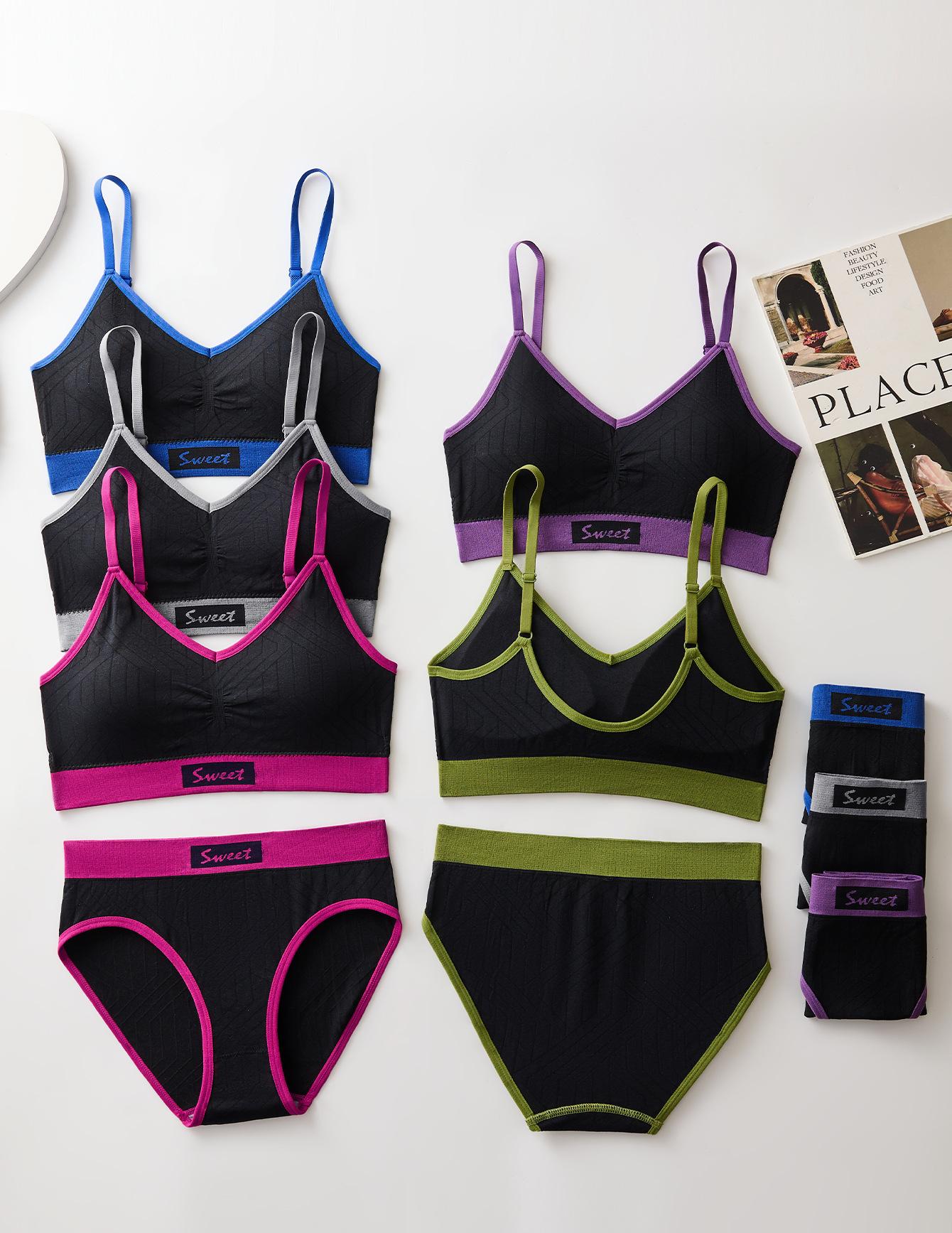 Chaleco de Yoga Fitness Europeo y Americano Traje de Baño Transfronterizo Cintura Media Secado Rápido Shorts Deportivos Color Contrastante Tirantes Ropa Interior Conjunto de Sujetador