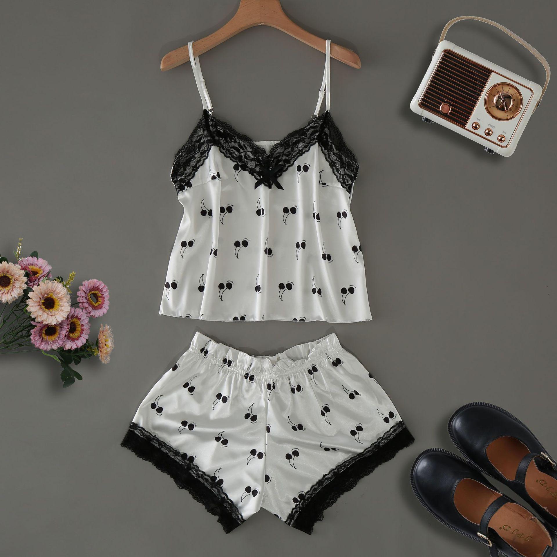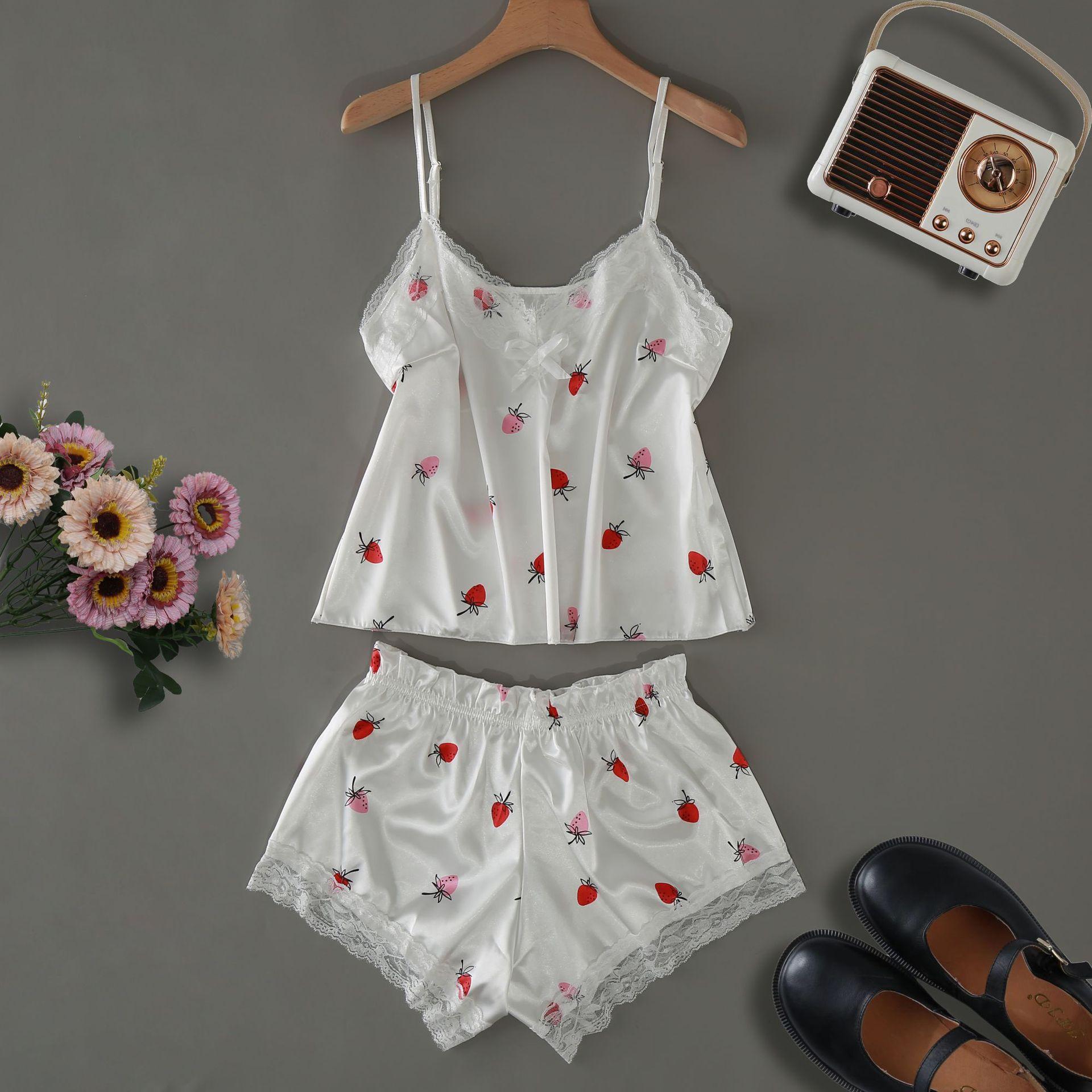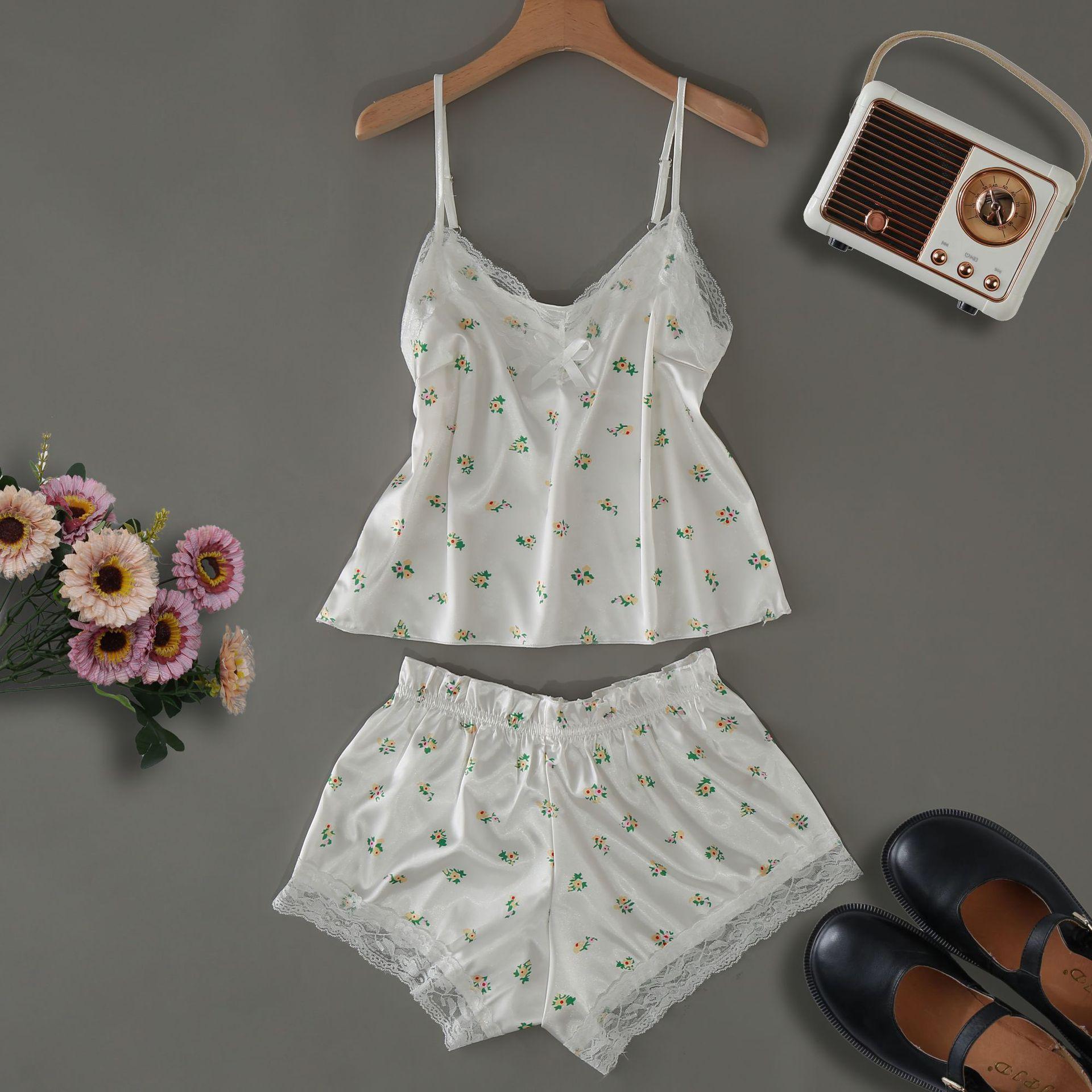 Pijama Nuevo de Verano de Seda de Hielo para Mujer Sexy Lindo Estilo Princesa Tirantes Shorts Delgado Dulce Conjunto de Dos Piezas