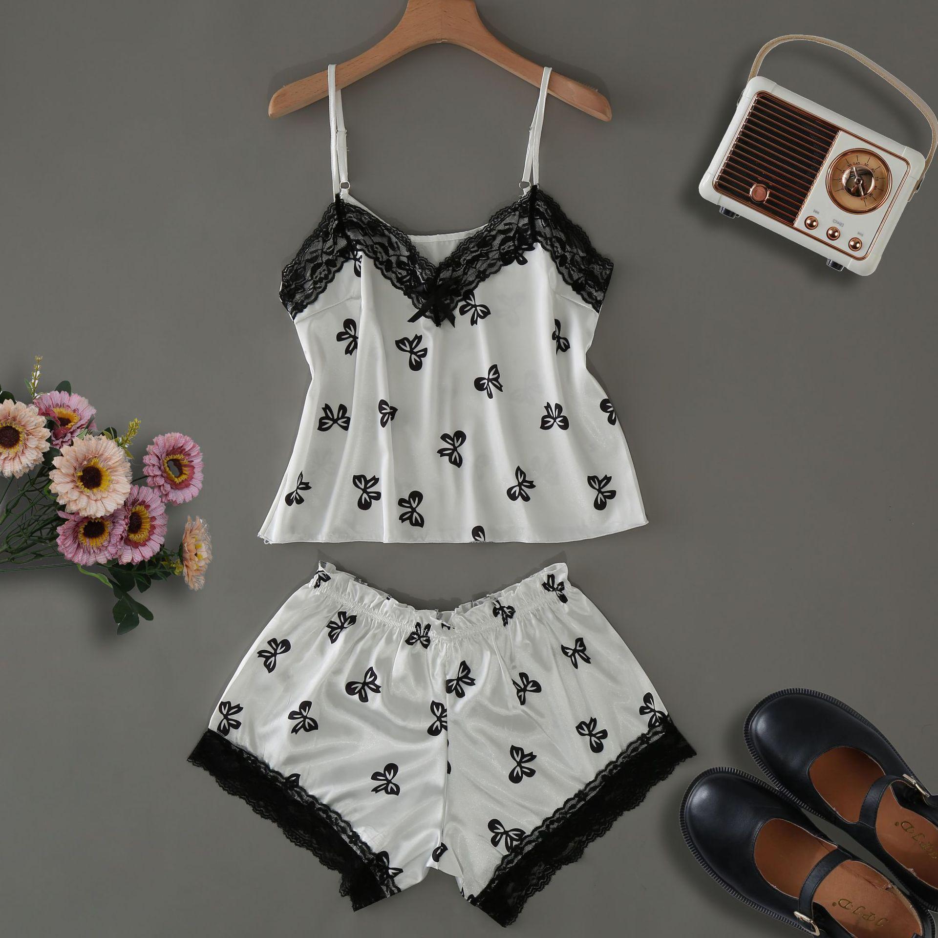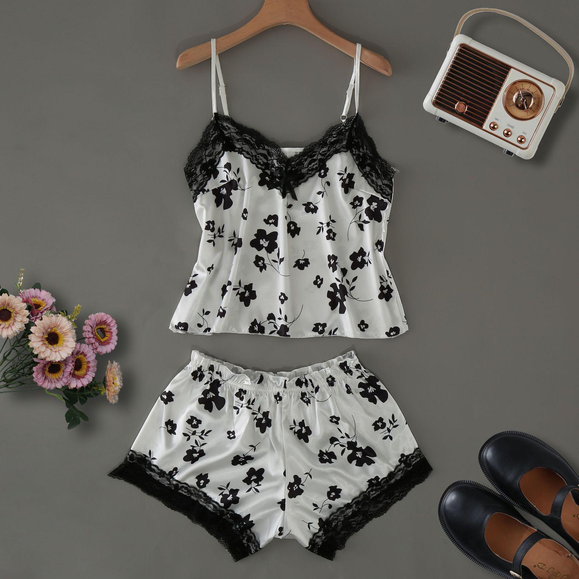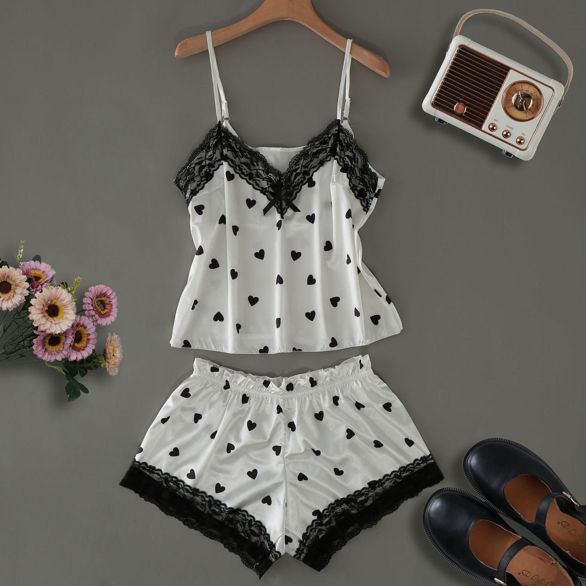 Pijama Nuevo de Verano de Seda de Hielo para Mujer Sexy Lindo Estilo Princesa Tirantes Shorts Delgado Dulce Conjunto de Dos Piezas