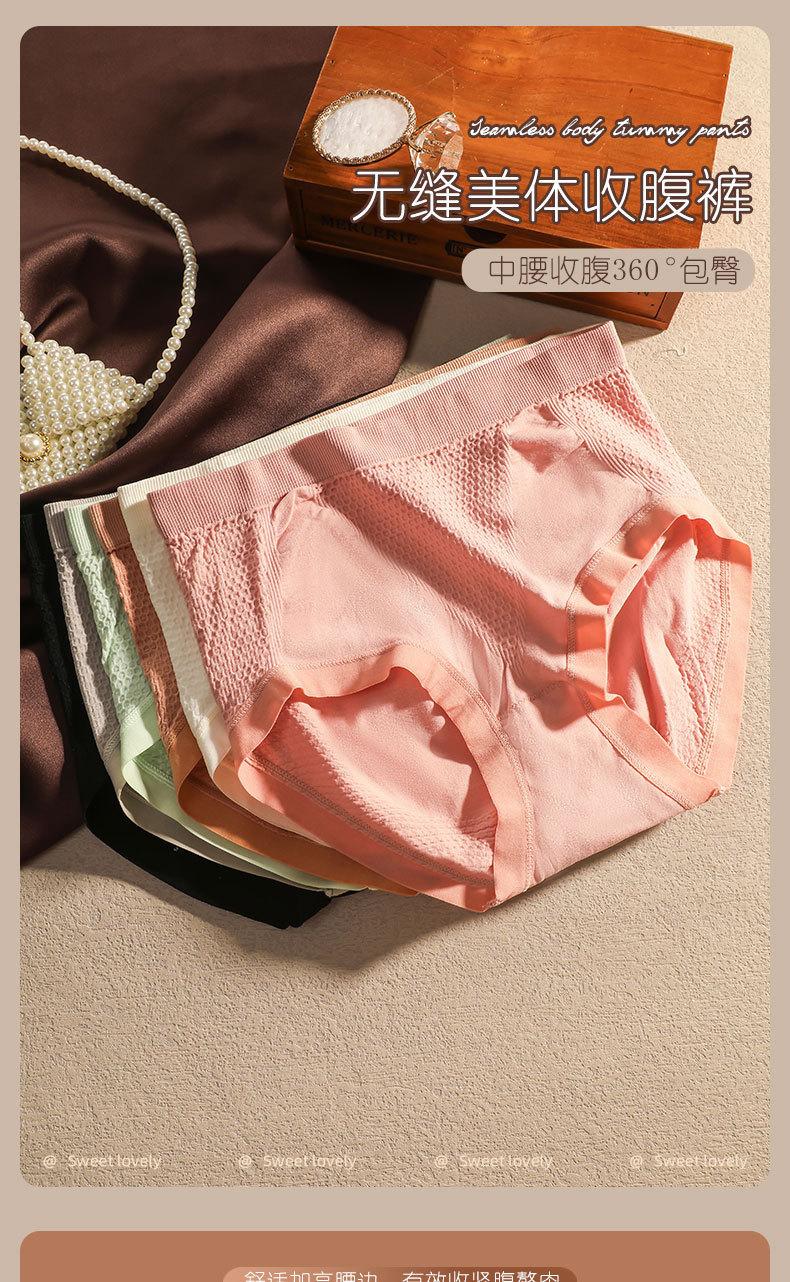 Ropa interior de mujer sin costuras de talle medio-alto estilo japonés para levantar cadera, con fondo de algodón, nido de abeja para contraer el abdomen, entrepierna antibacteriana, talla grande, ropa interior para niña