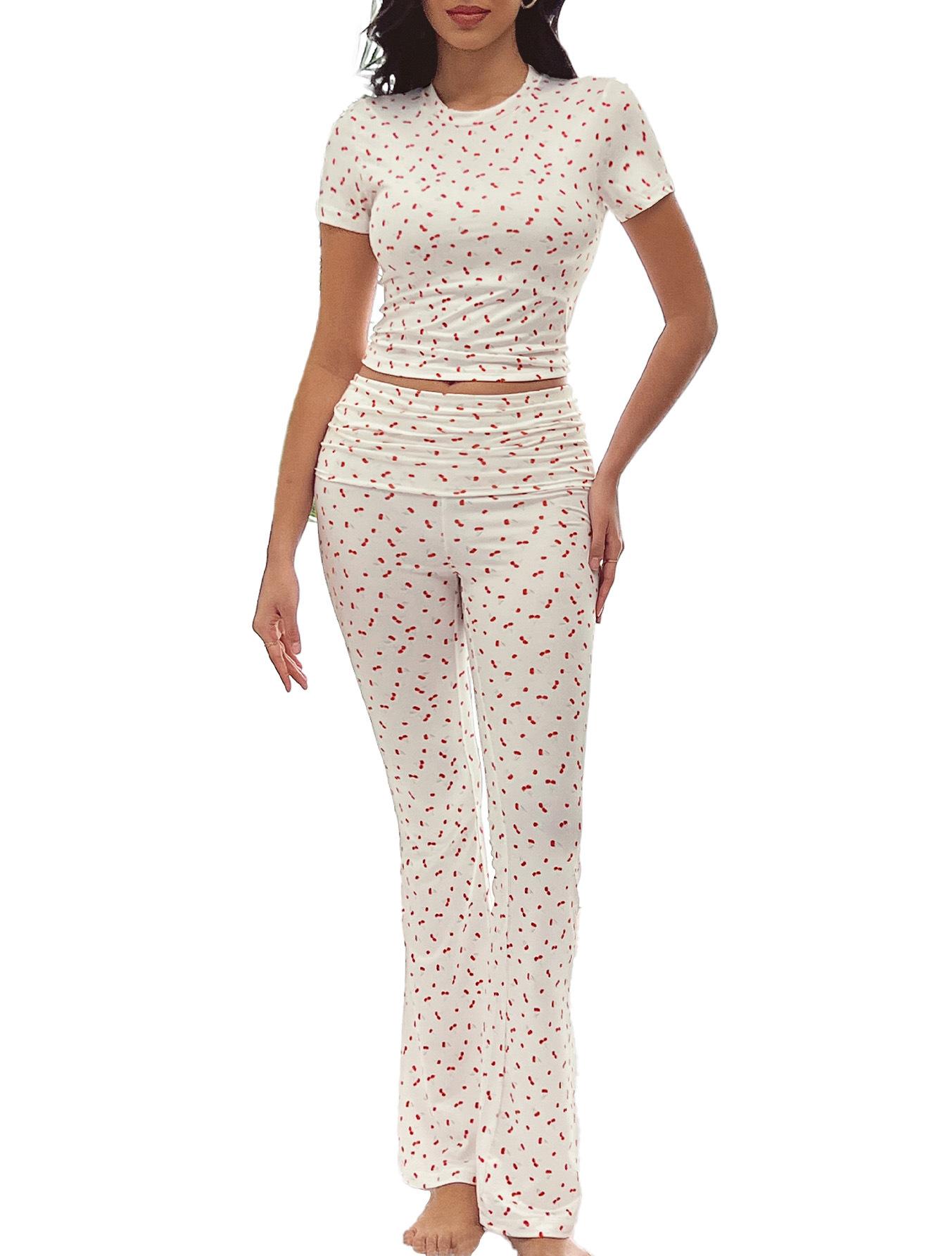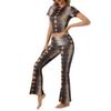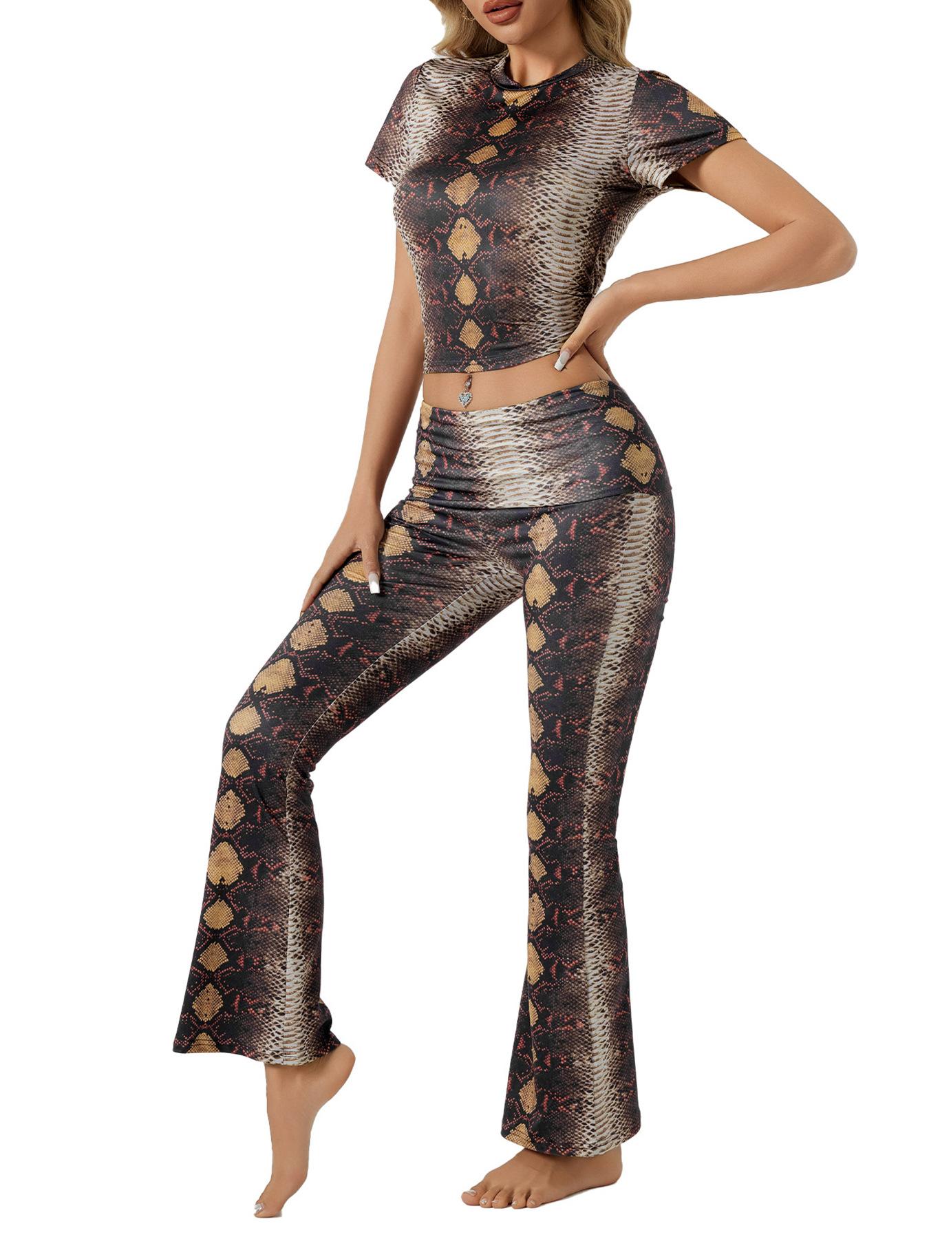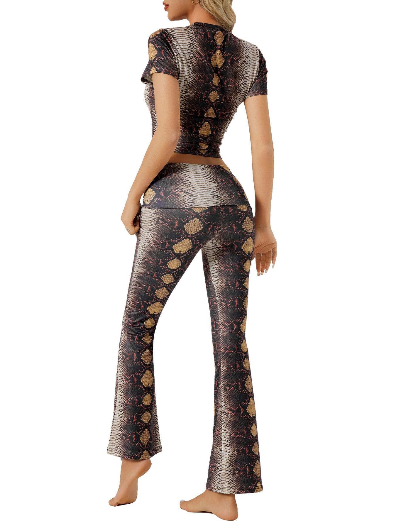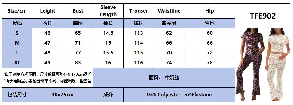 Traje de Pantalón Cómodo para Mujer Nuevo Transfronterizo Europeo y Americano Estampado de Leopardo Casual Deportivo Ajustado Ropa de Casa