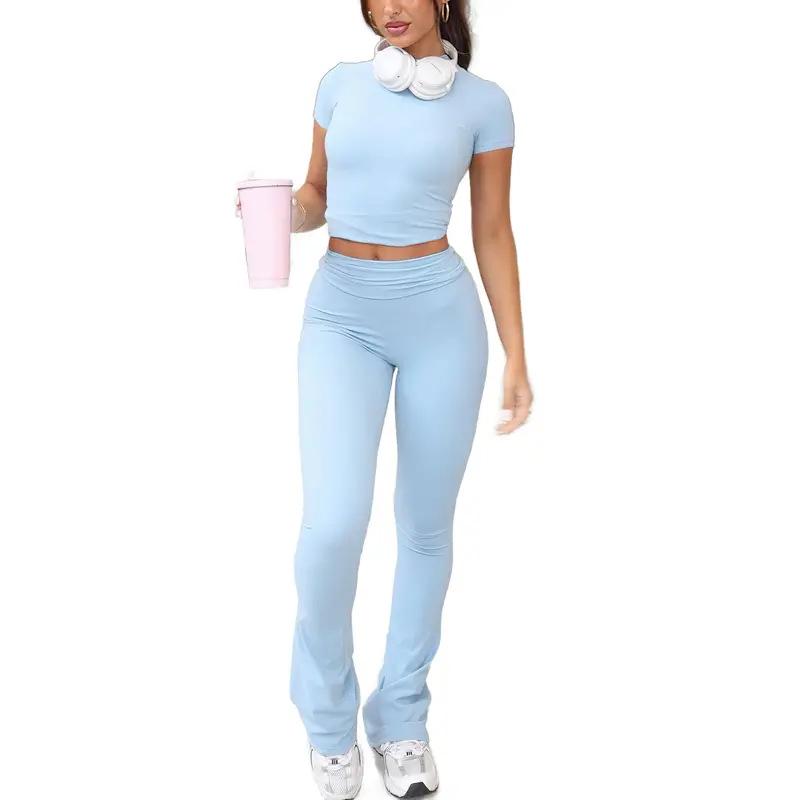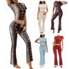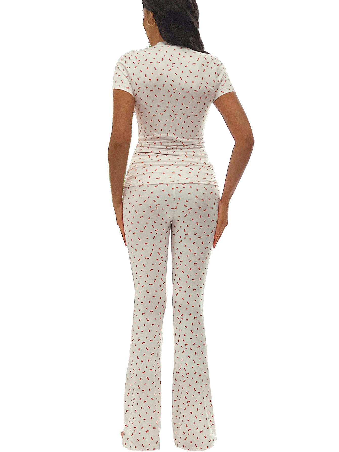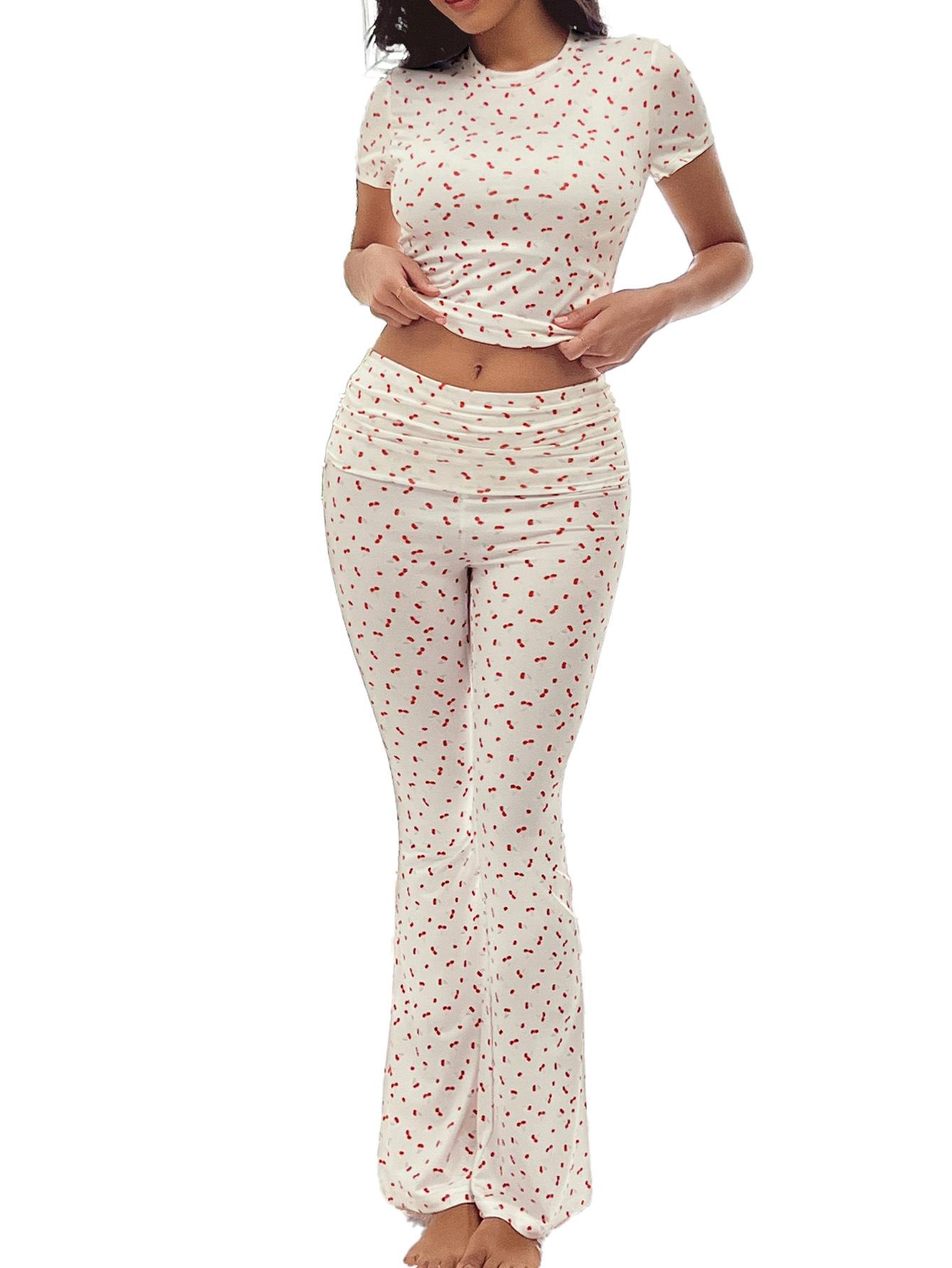 Traje de Pantalón Cómodo para Mujer Nuevo Transfronterizo Europeo y Americano Estampado de Leopardo Casual Deportivo Ajustado Ropa de Casa