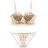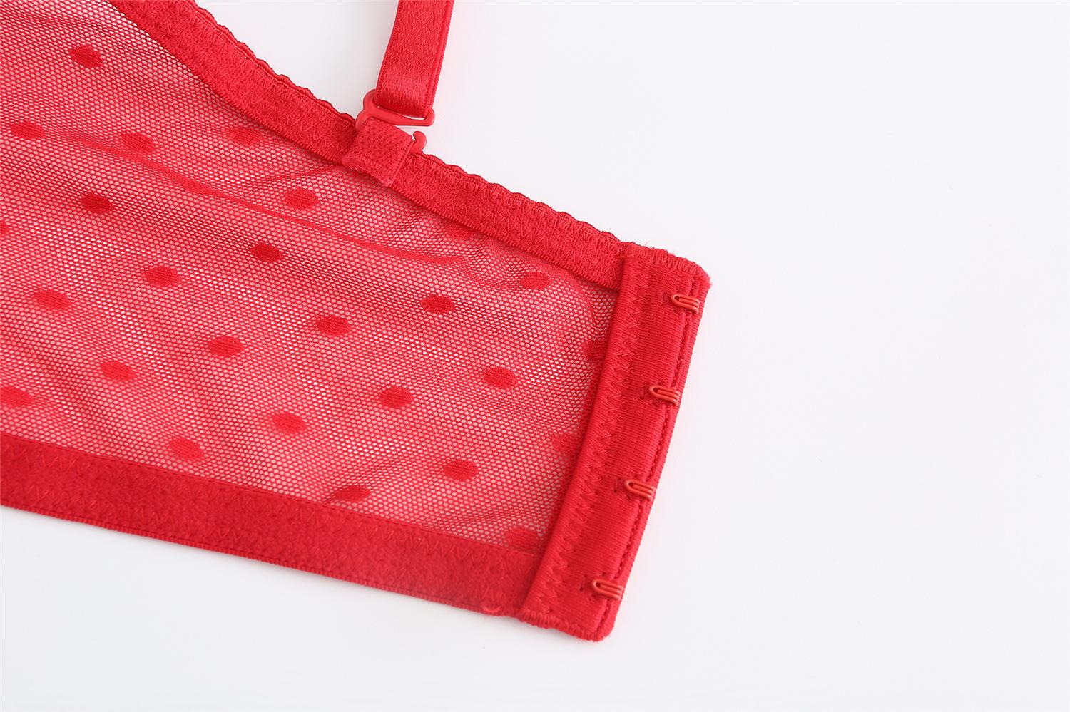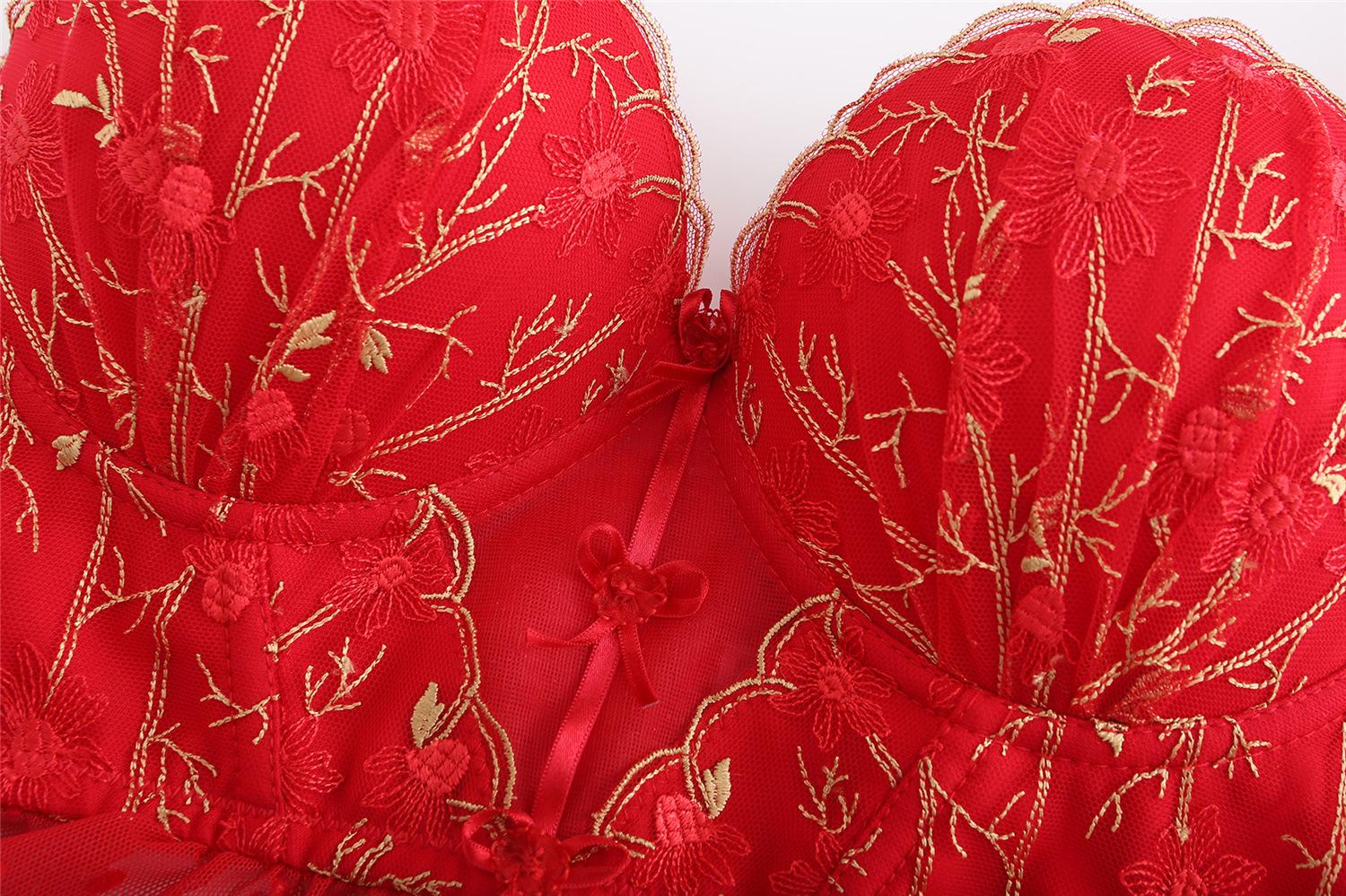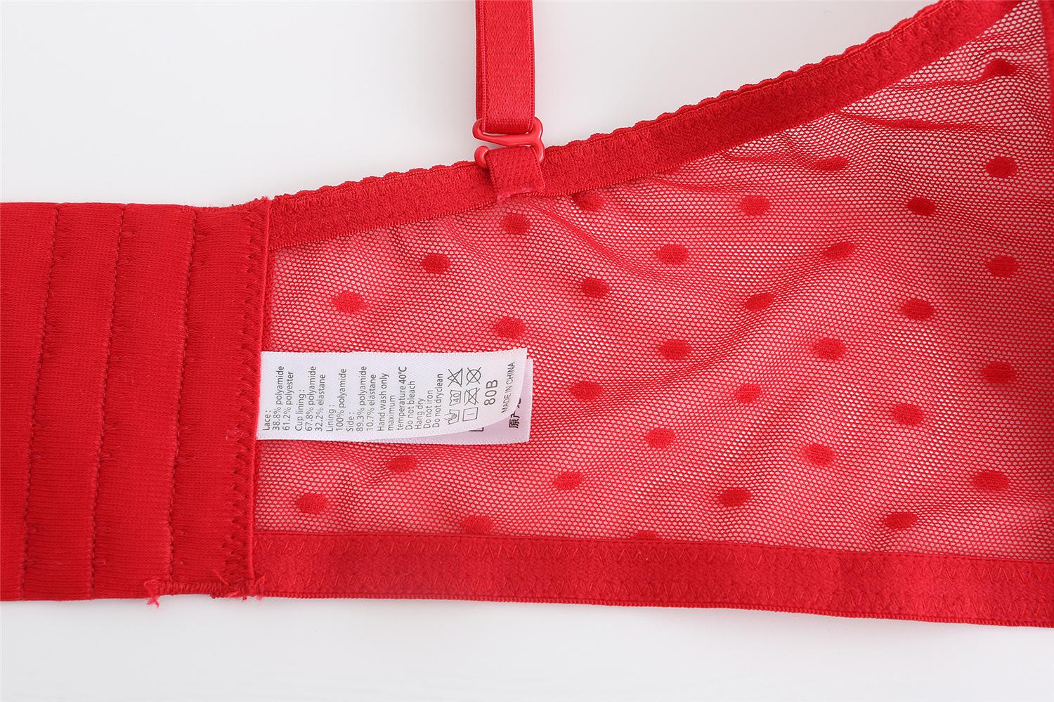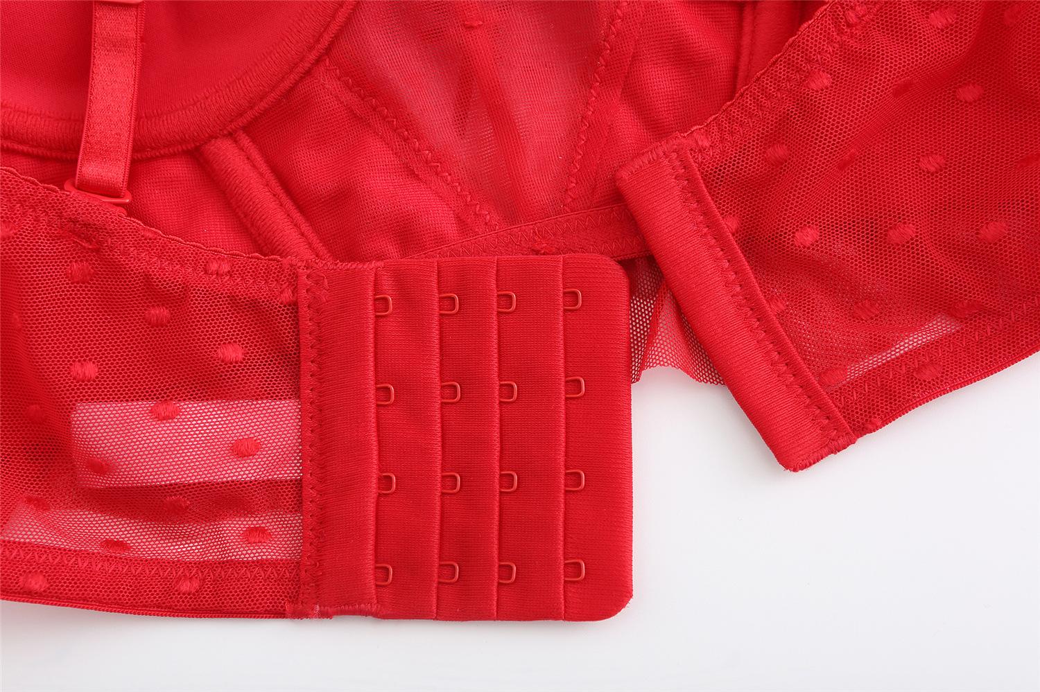 Traje de Ropa Interior Rojo Estilo Francés Boda Vida Año Encaje Pecho Pequeño Push-up Sujetador Sujetador Anti-flacidez para Mujer