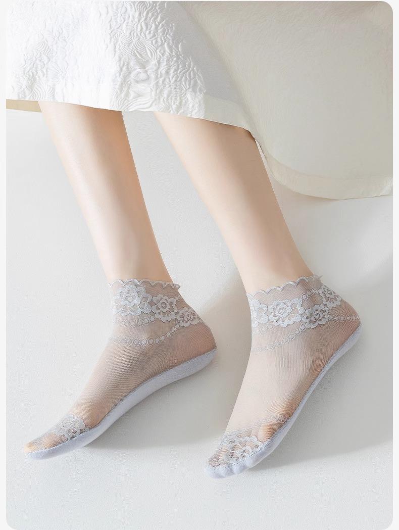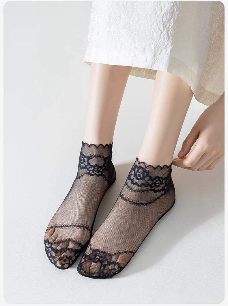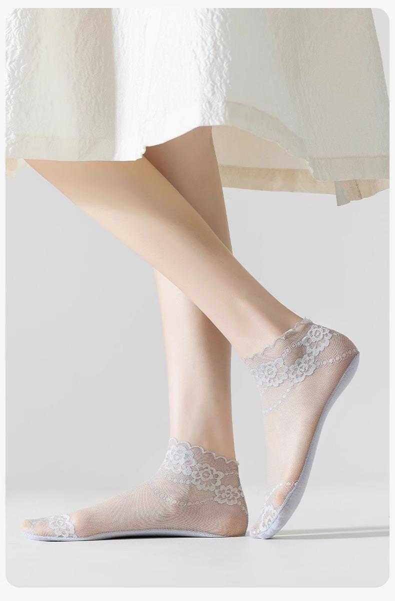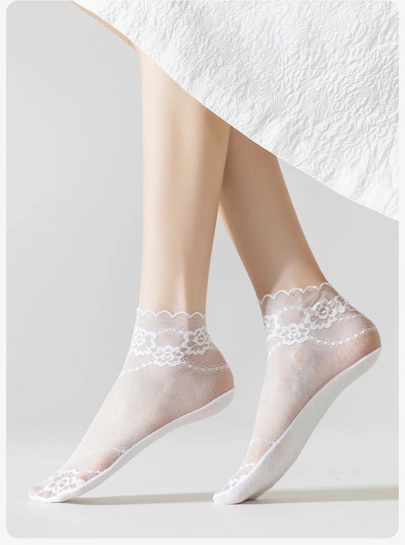Calcetines de Encaje Calcetines de Mujer Transpirables Delgados Calcetines de Barco de Mujer Antideslizantes que No se Caen Calcetines Cortos de Encaje para Mujer Medias de Estudiante