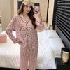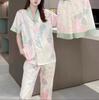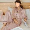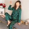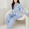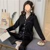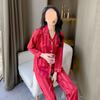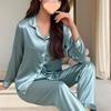 Pijama Traje de Mujer Delgado Aire Acondicionado Ropa para el Hogar Seda de Hielo Imitación Seda Primavera y Otoño Manga Larga Pantalón Conjunto de Dos Piezas para Exterior