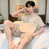 Pijama para Hombre Verano Algodón Puro Manga Corta Pantalón Corto Traje Algodón Puro Suelto Casual Dibujos Animados Se Puede Usar Afuera Ropa para el Hogar para Adolescentes