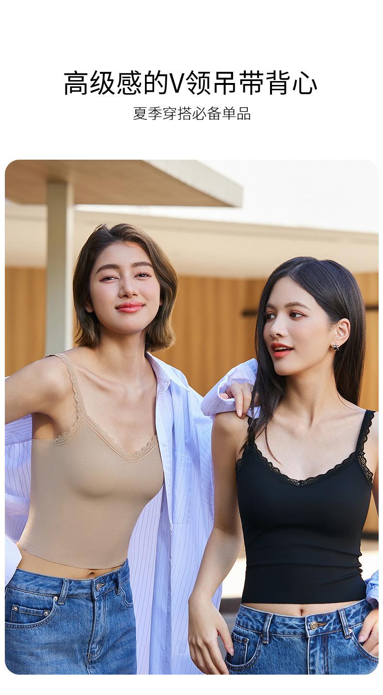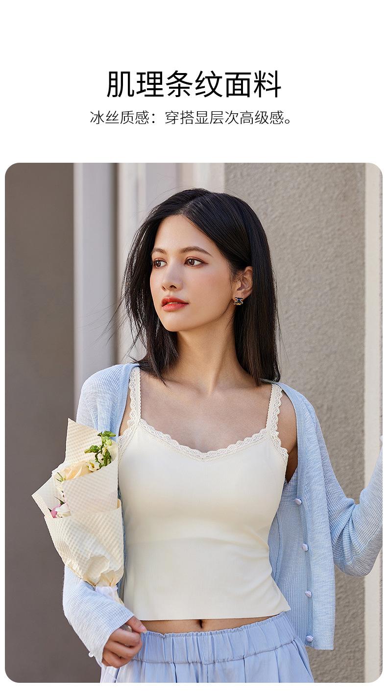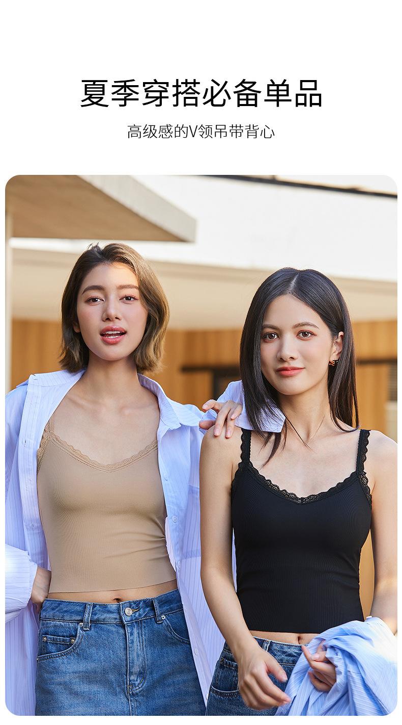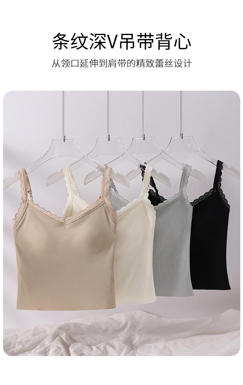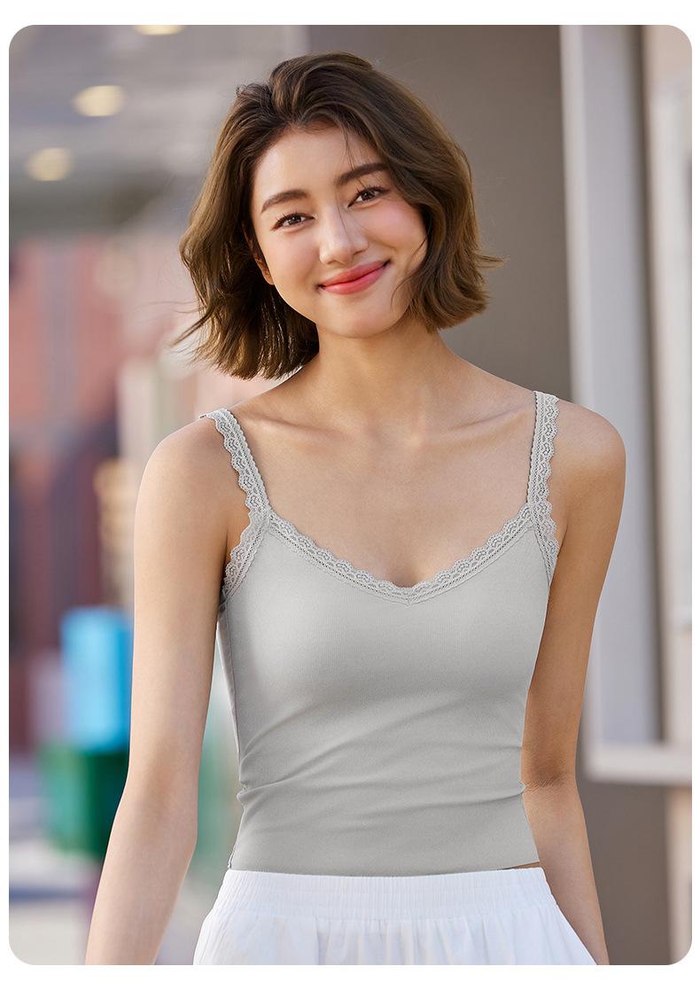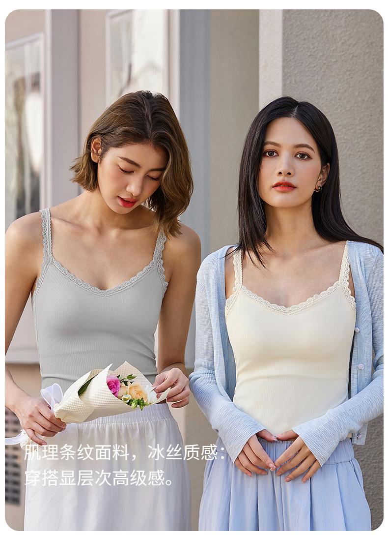 Primavera y Verano Nuevo Estilo Coreano Chaleco Rayado para Mujer Pequeño Tirante con Almohadilla de Soporte Integrada Ropa Interior Base Interna para Espalda Bonita