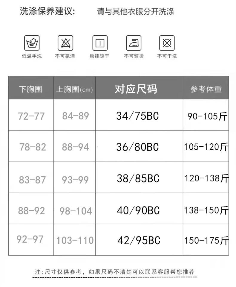 34/75BC, 36/80BC, 38/85BC, 40/90BC, 42/95BC