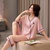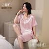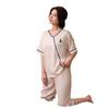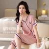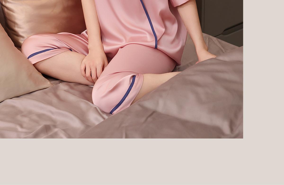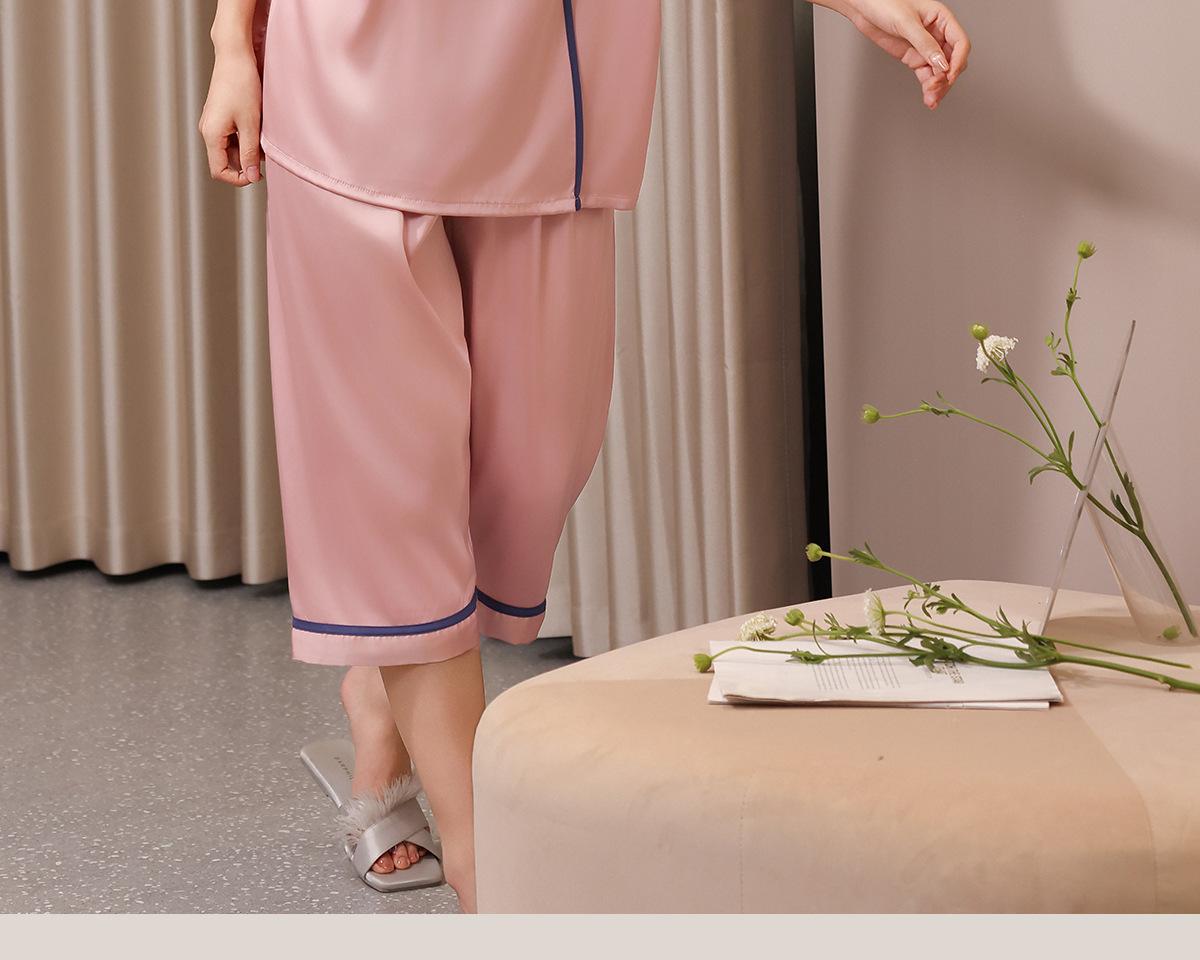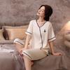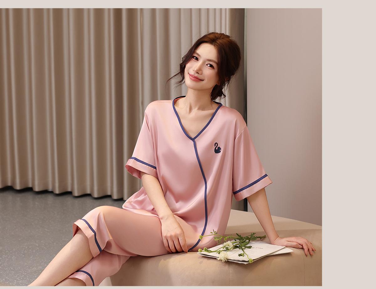 [Seda de Hielo y Nieve] Pijama de Estilo Nuevo con Almohadilla en el Pecho para Mujer Verano Delgado Seda de Hielo Manga Corta Pantalón Capri Deseo Puro Ropa para el Hogar