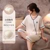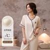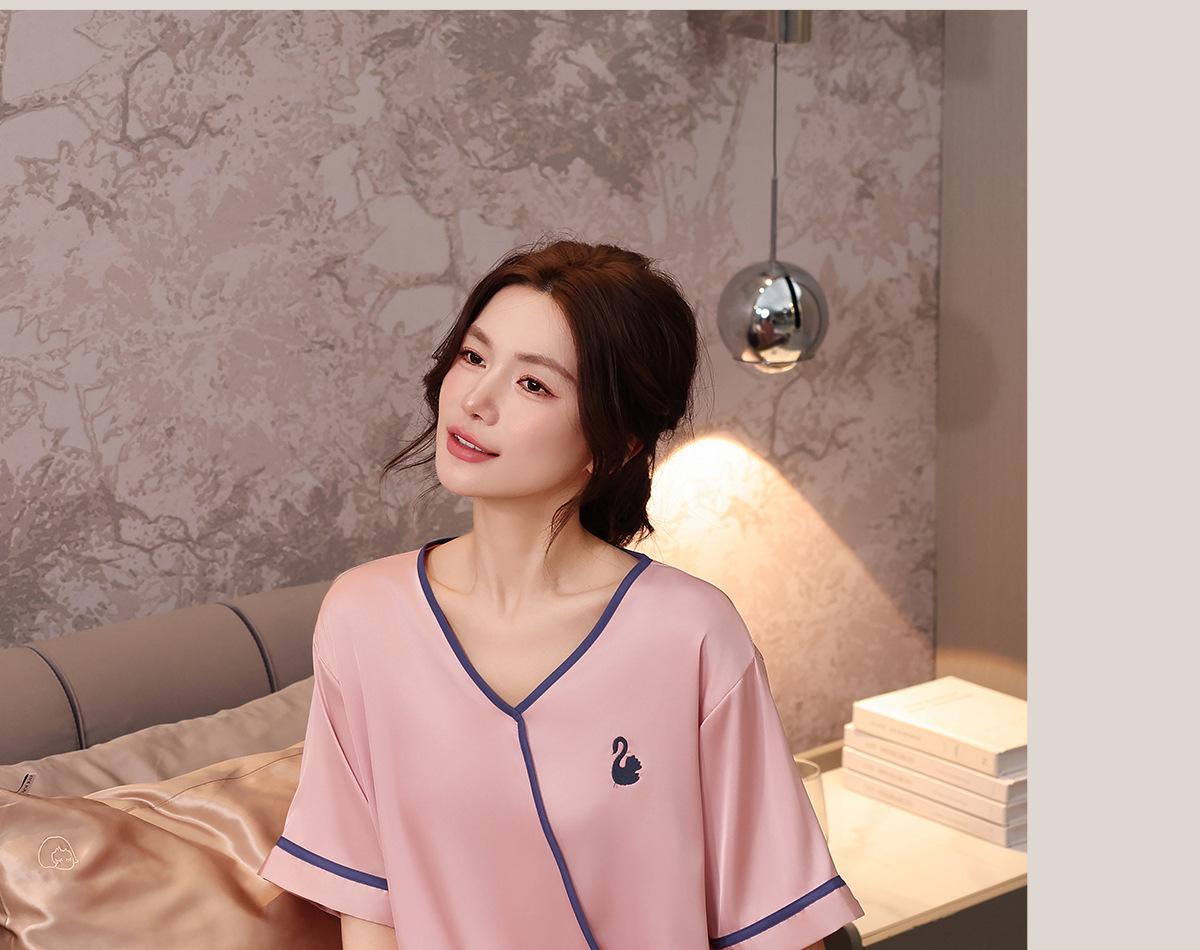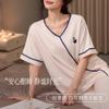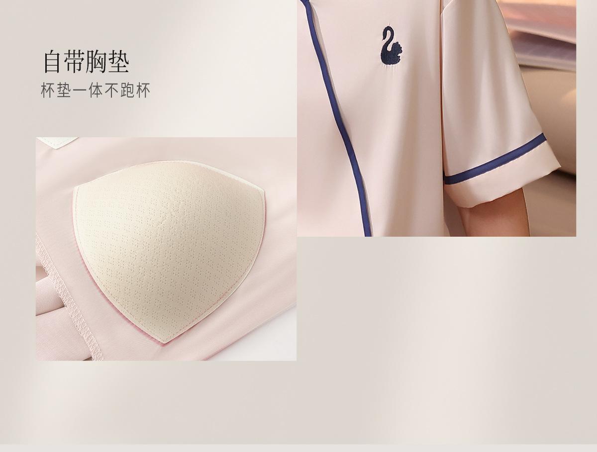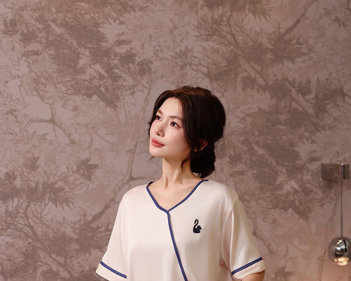 [Seda de Hielo y Nieve] Pijama de Estilo Nuevo con Almohadilla en el Pecho para Mujer Verano Delgado Seda de Hielo Manga Corta Pantalón Capri Deseo Puro Ropa para el Hogar