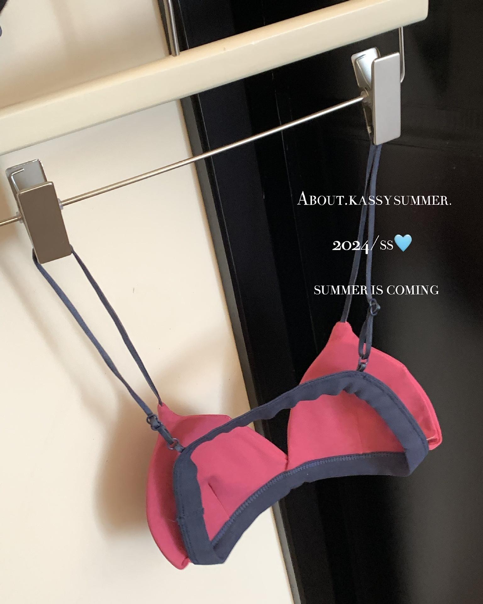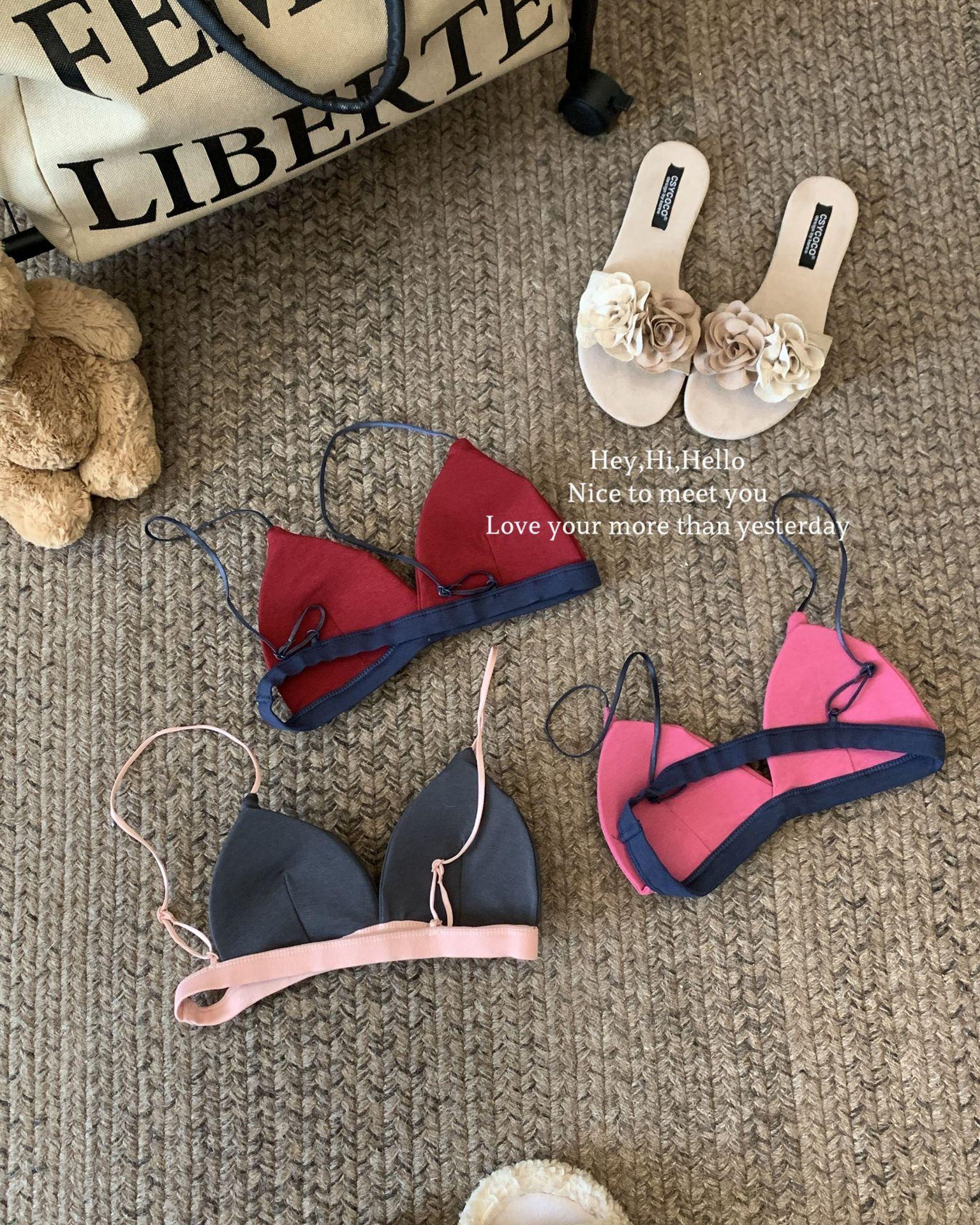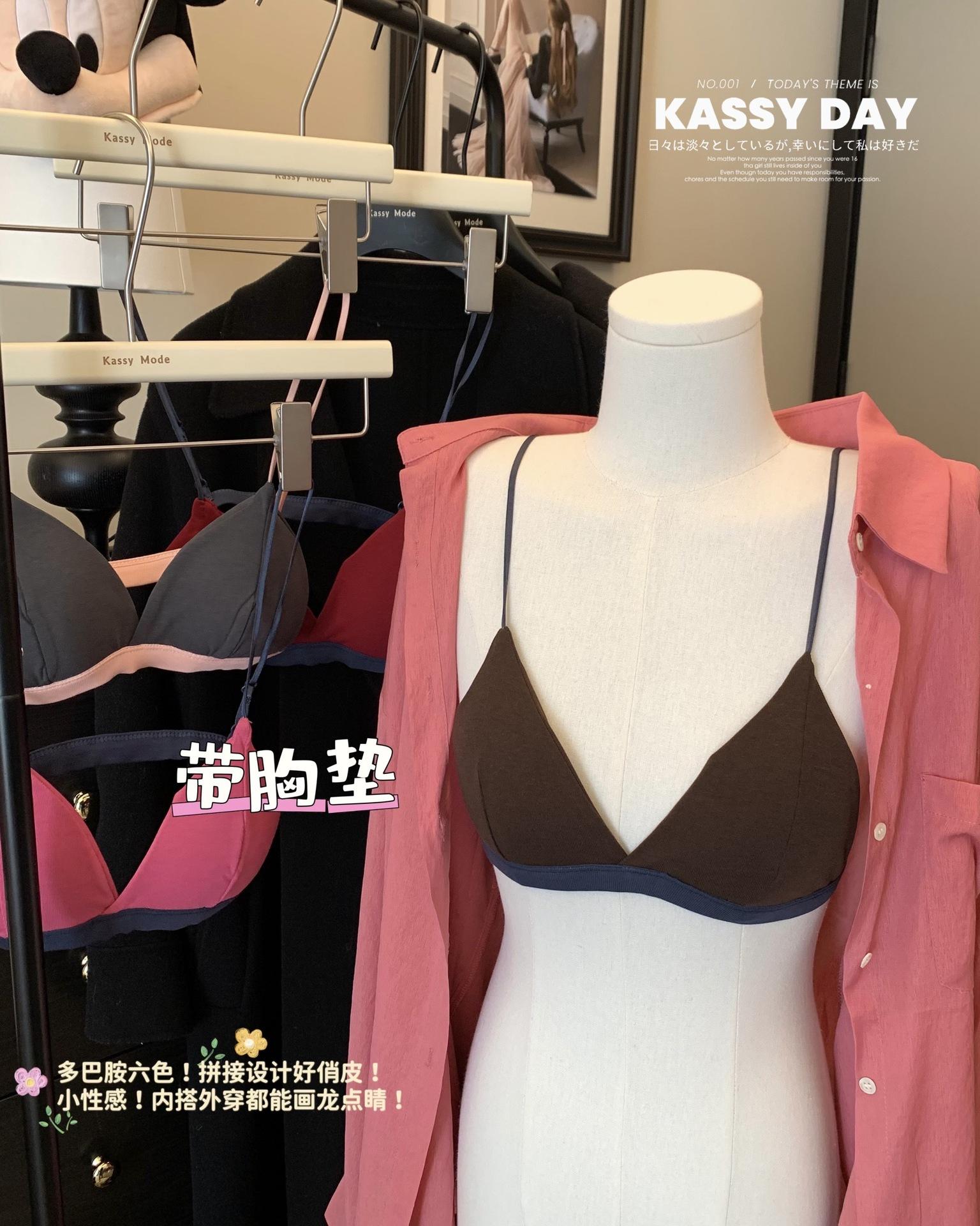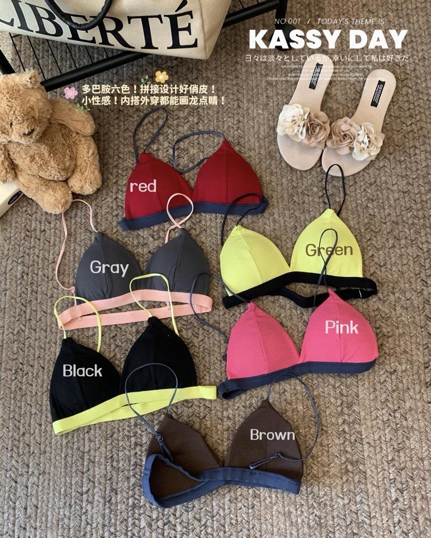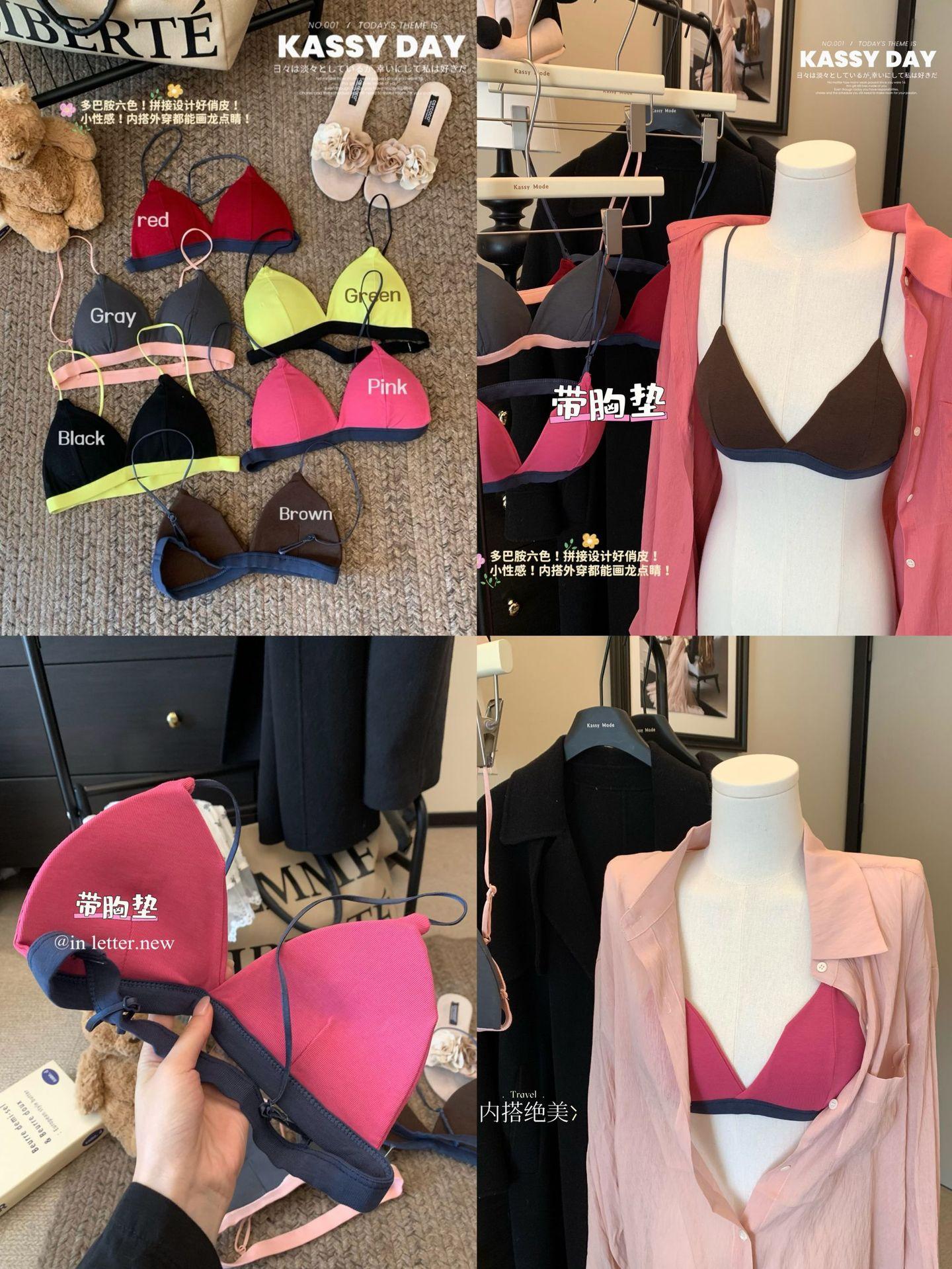 Camisola de Sujetador Envolvente con Copa Triangular Color Block de Dopamina para Mujer Verano Dulce Chica Picante Ropa Interior y Exterior Bikini Trendy