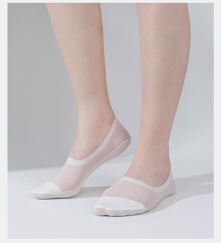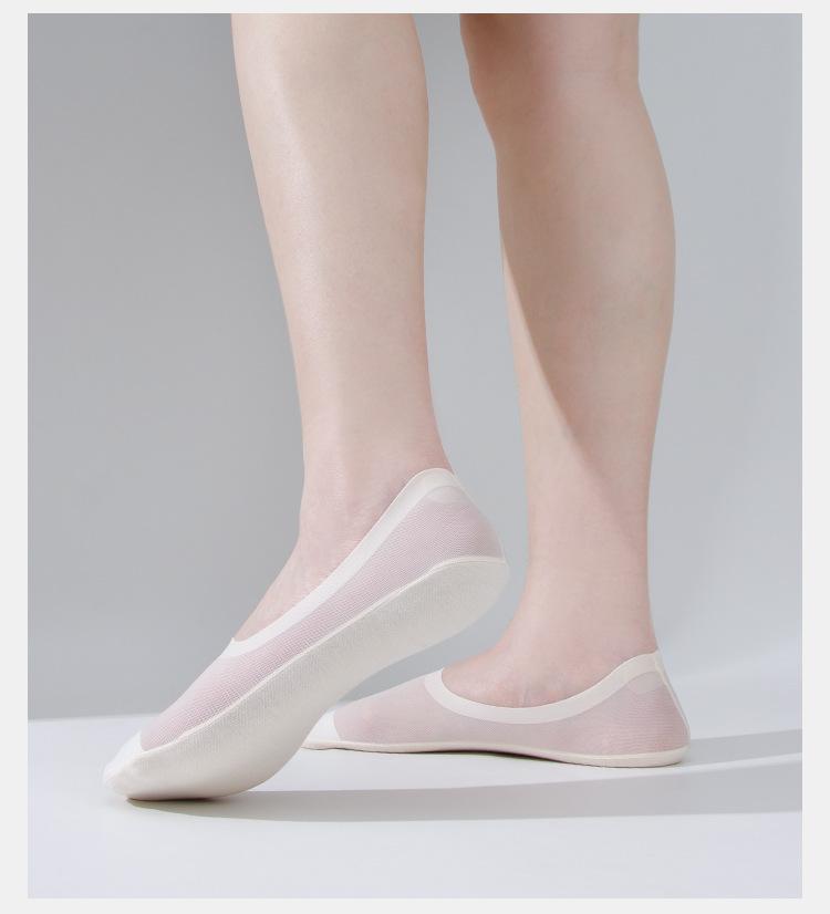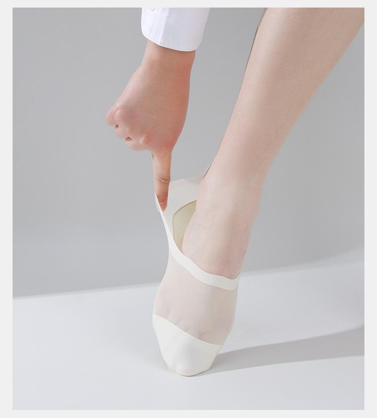 Calcetines Invisibles para Mujer Fondo de Algodón Malla de Seda de Hielo Transpirables Ultradelgados Verano Sin Talón Bajos de Silicona Antideslizantes Calcetines Cortos