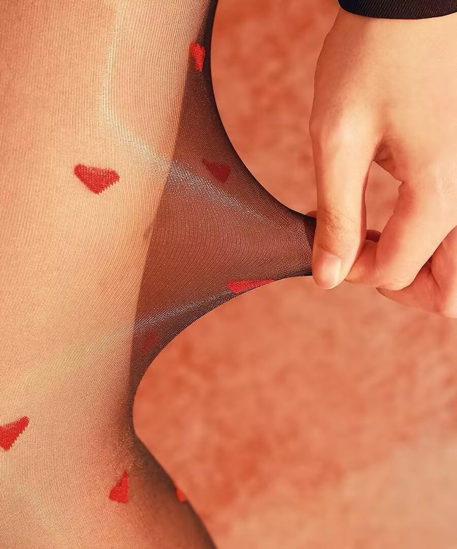 Medias Rojo Deseo Puro Amor Negro Sexy Chica Caliente Seda Negra para Mujer Ultradelgadas Color Carne Transparente Aurora Archivo Abierto Aceite Brillante Estilo Sedoso