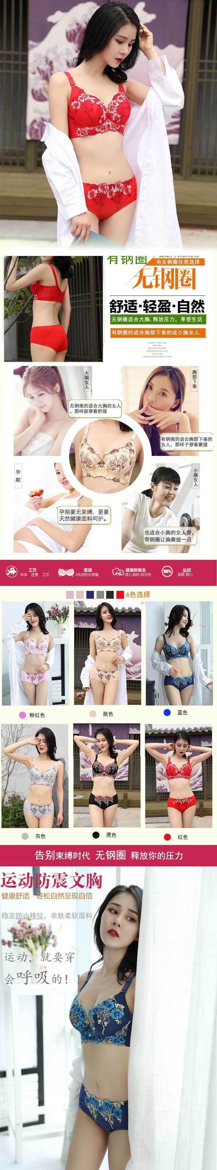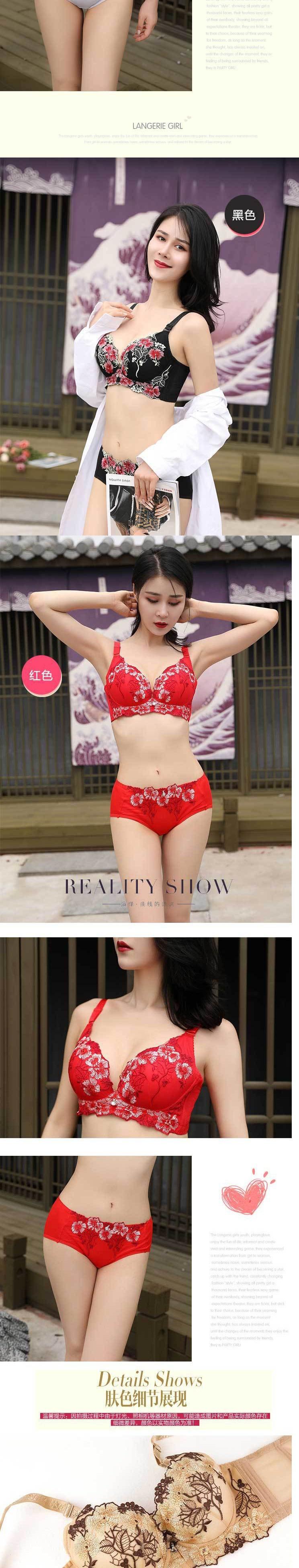 No wire black underwear + panties, No wire red underwear + panties, Wire-free pink underwear + panties, No wir...