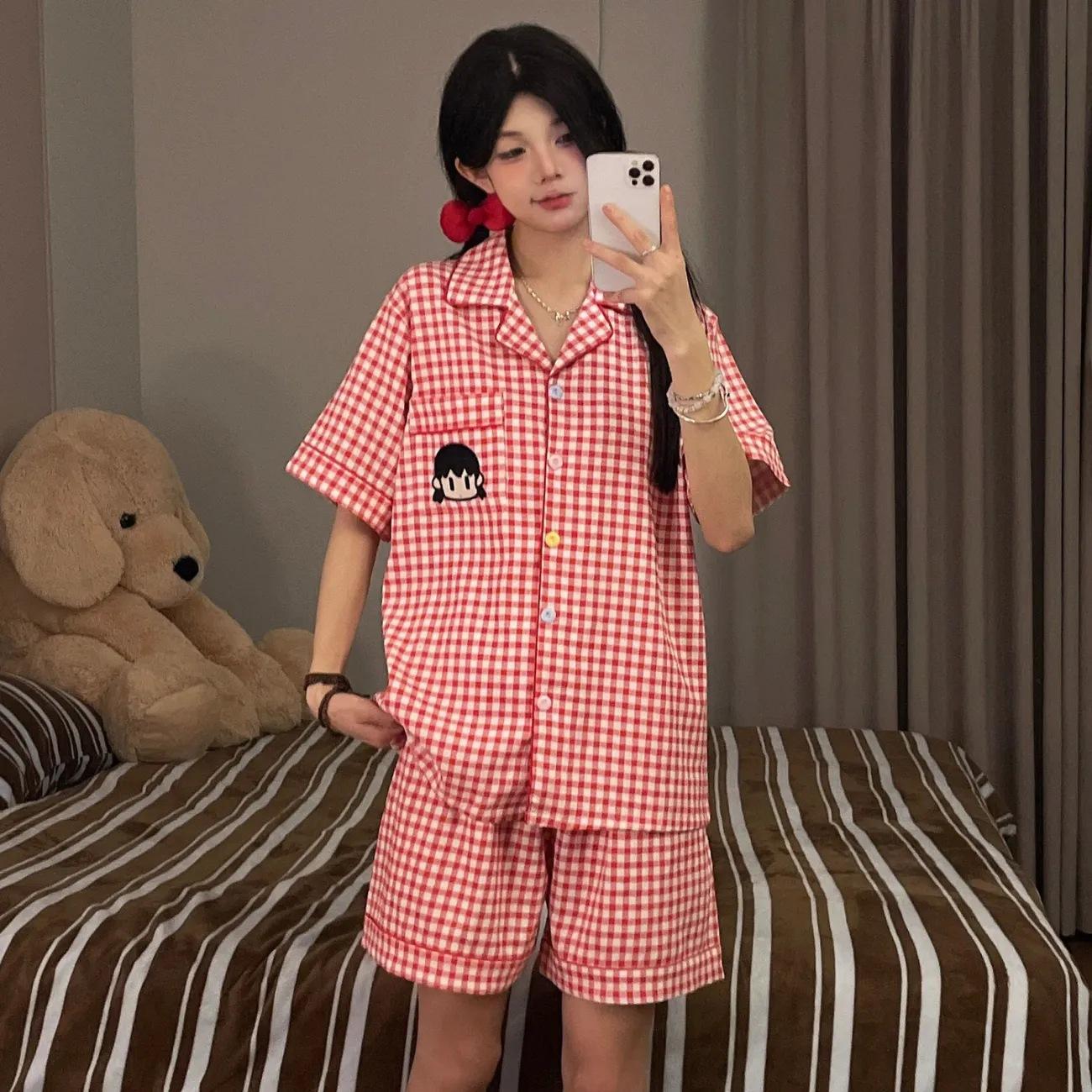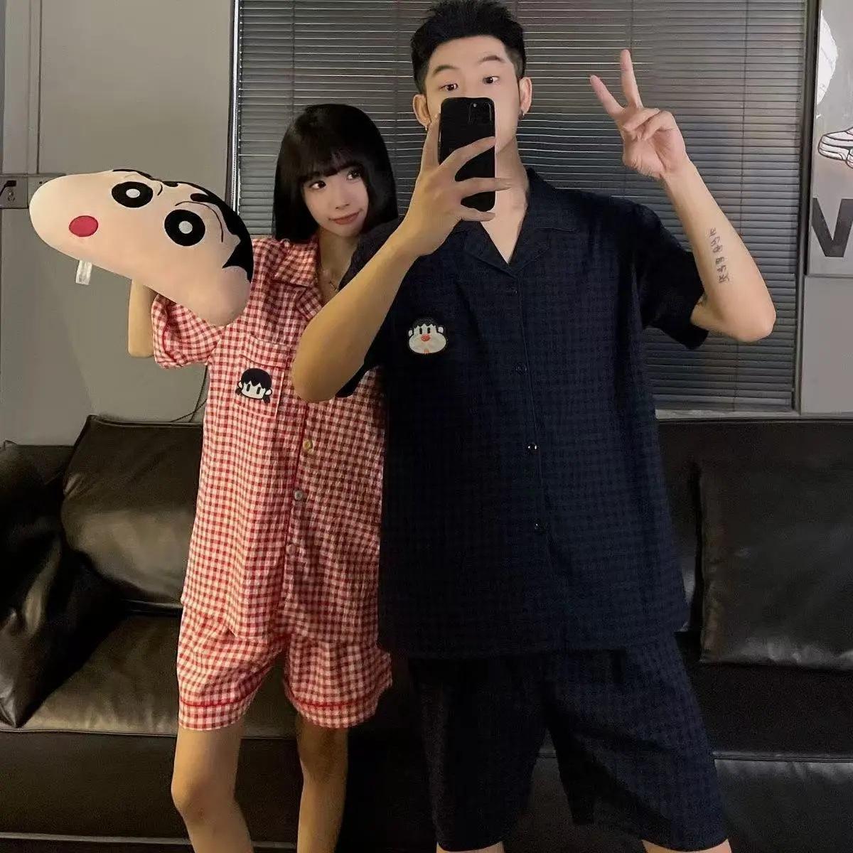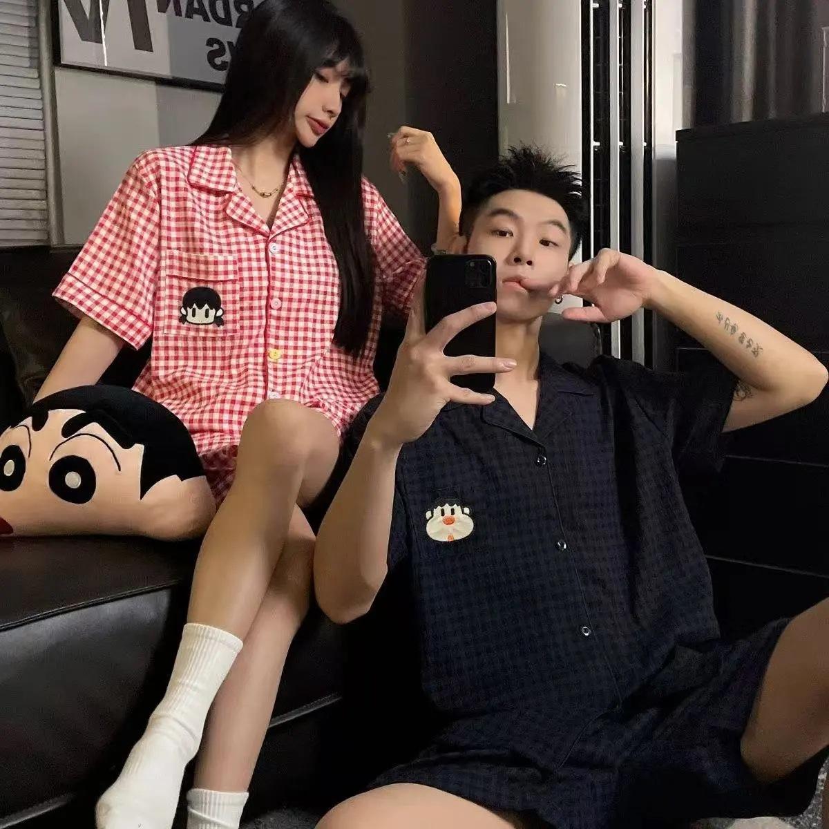 Pijamas de Verano de Talla Grande para Pareja de Dibujos Animados Japoneses para Hombre y Mujer Verano de Manga Corta Pantalones Cortos Se Pueden Usar Fuera Conjuntos de Ropa para el Hogar