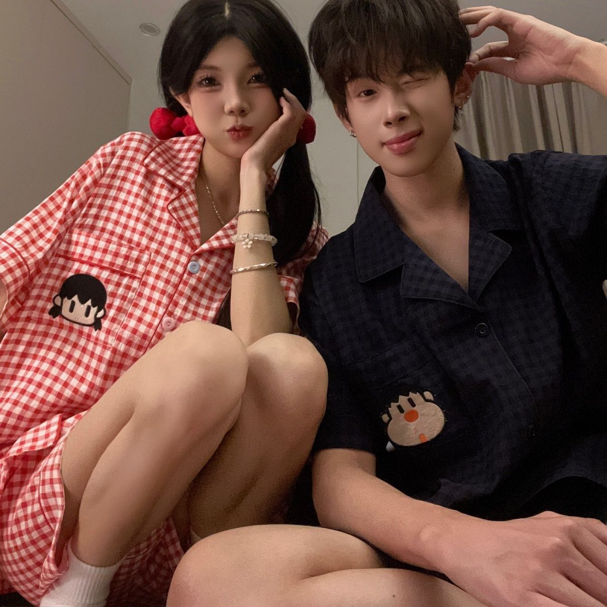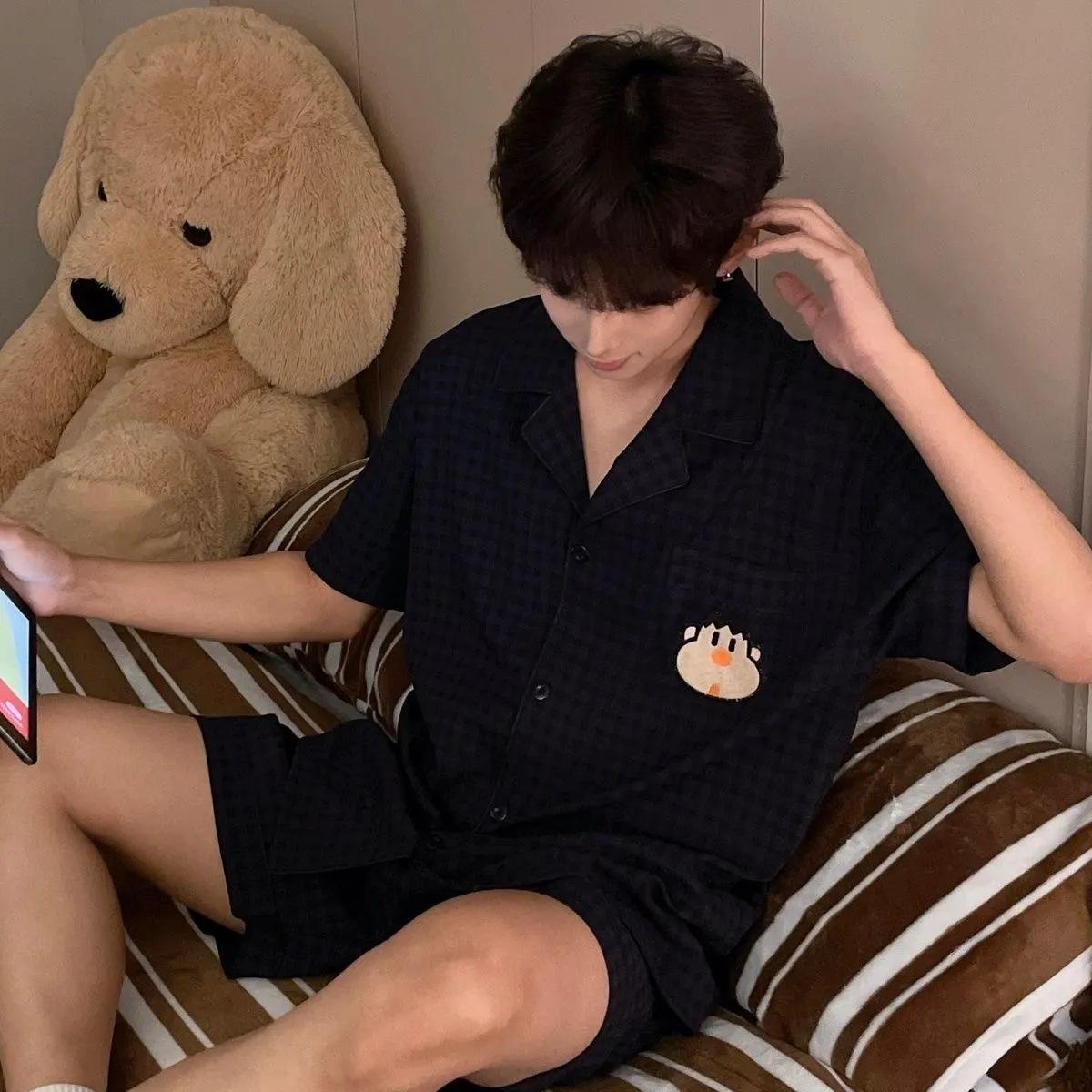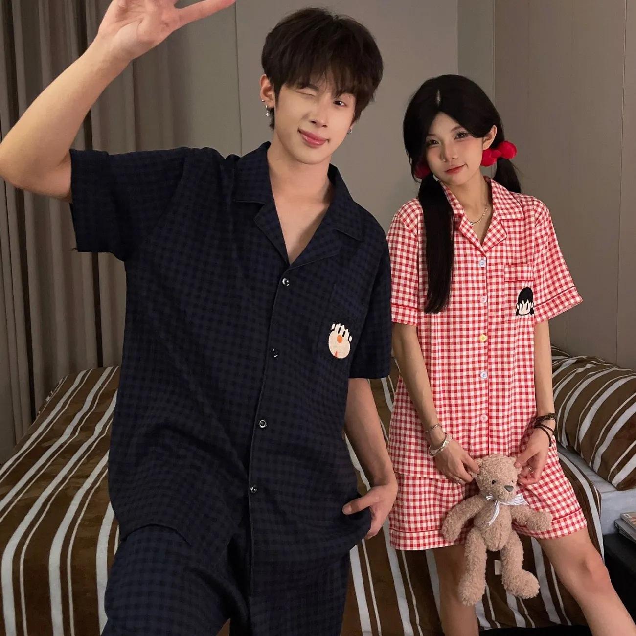 Pijamas de Verano de Talla Grande para Pareja de Dibujos Animados Japoneses para Hombre y Mujer Verano de Manga Corta Pantalones Cortos Se Pueden Usar Fuera Conjuntos de Ropa para el Hogar