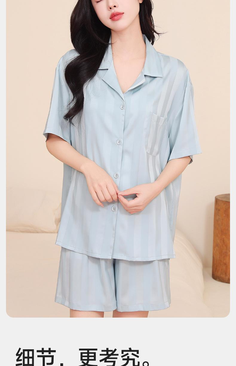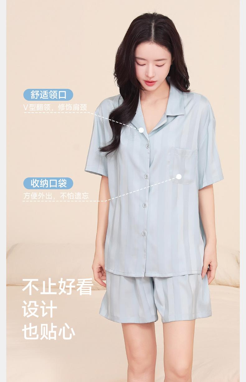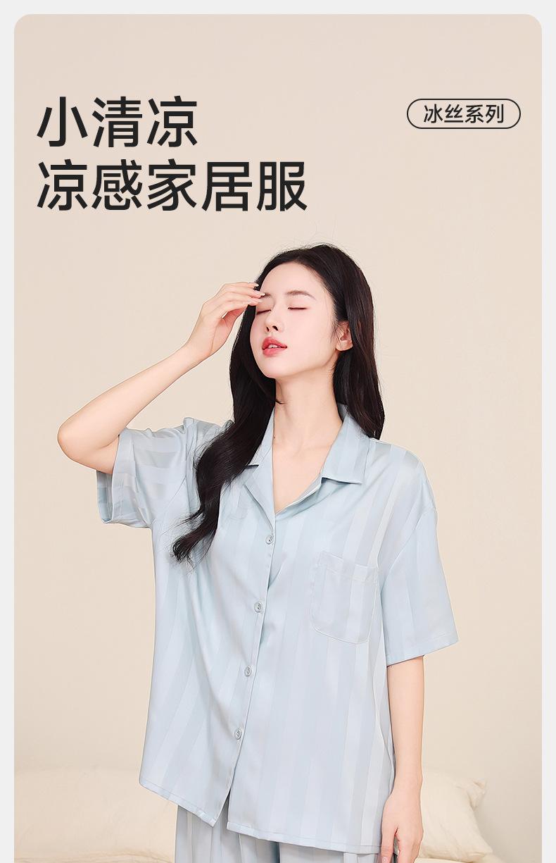 Yu Zhaolin Seda de Hielo Ropa para el Hogar Pijama para Mujer Primavera y Verano Seda de Nieve Suelto Fresco Manga Corta Shorts Conjunto de Ropa para el Hogar